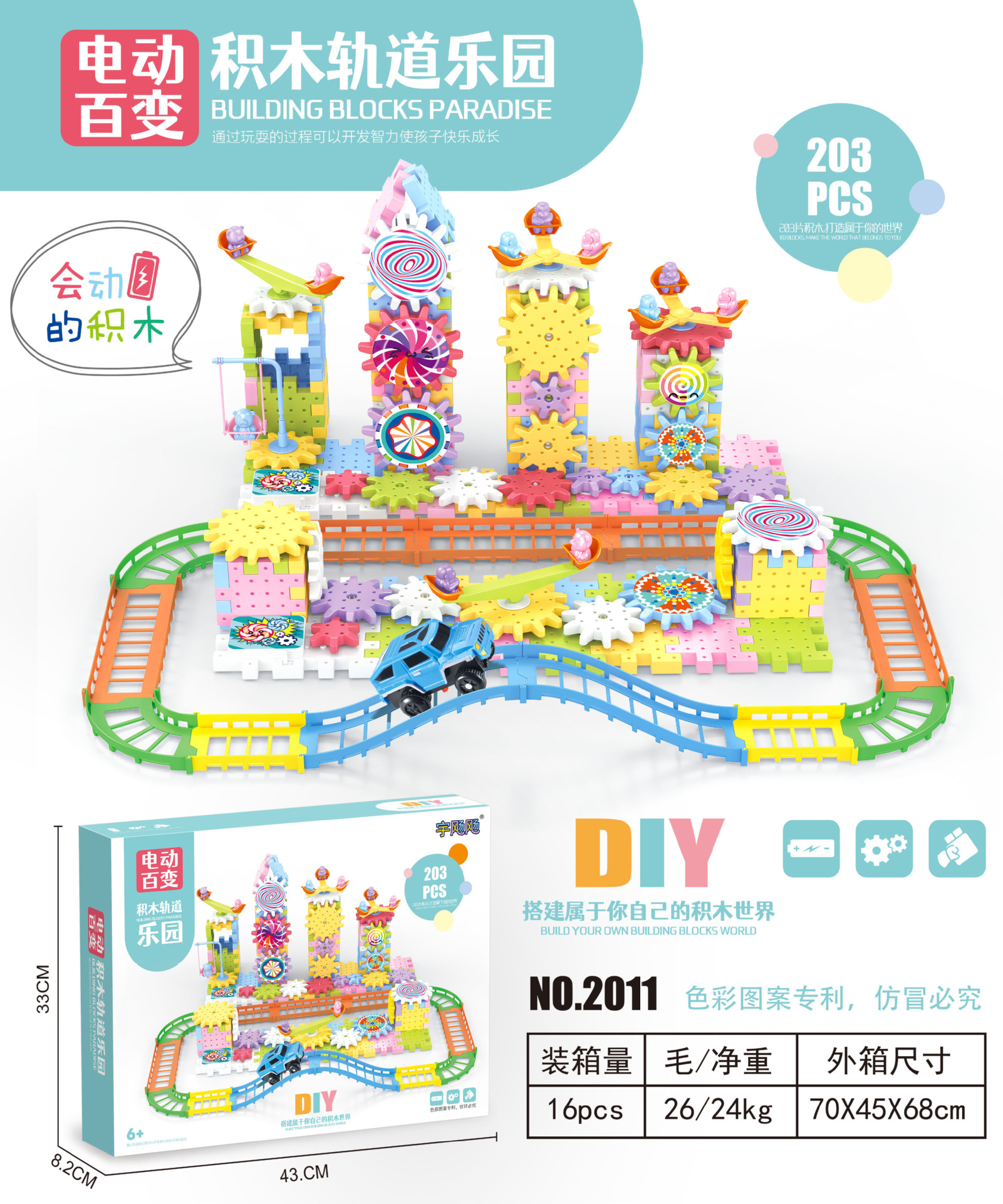 • 전기 기어 빌딩 블록 "203pcs]