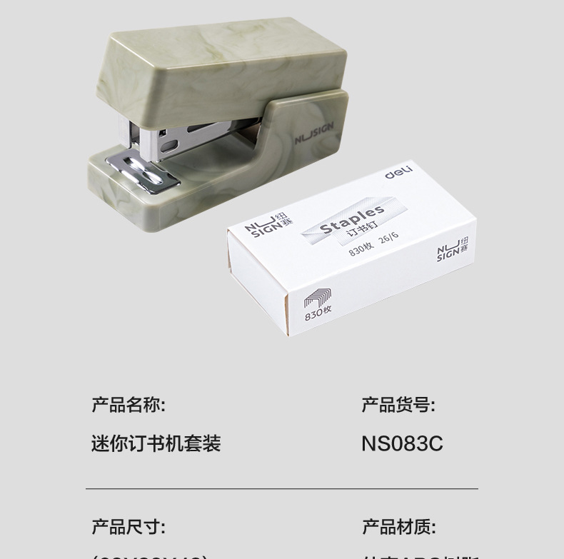 Delinius NS083C 미니 스테이플러 (1 스테이플러 1 박스 네일) TPE 미끄럼 방지 사무실 바인딩 기계스토어 가기