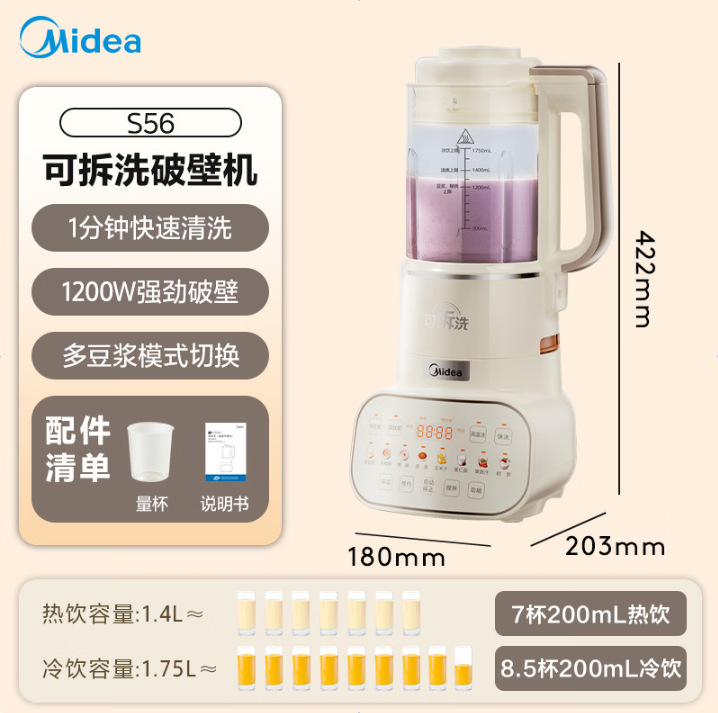 Midea 벽 파괴 기계 가정용 난방 예약 두유 기계 아침 주스 기계 1.75L 용량 MJ-PB10G2-062스토어 가기