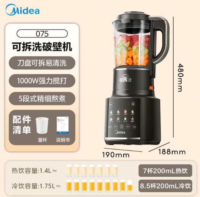 Midea 벽 파괴 기계 가정용 난방 예약 두유 기계 아침 주스 기계 1.75L 용량 MJ-PB10G2-062