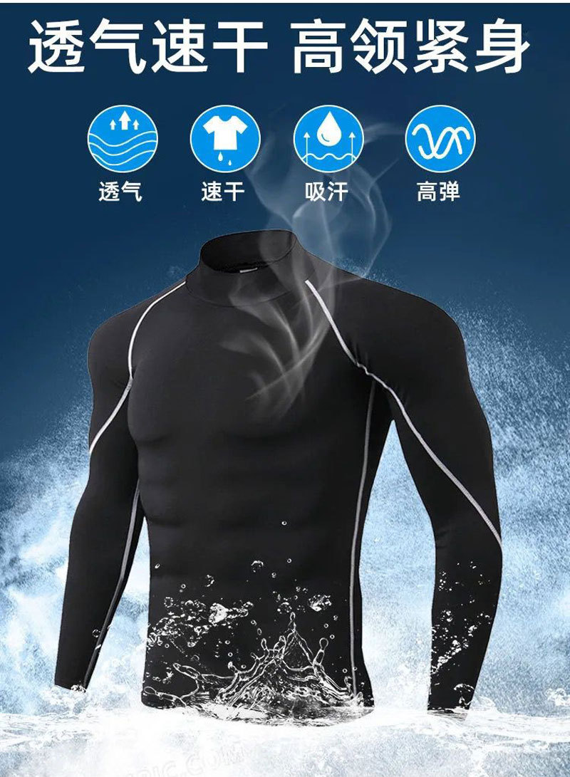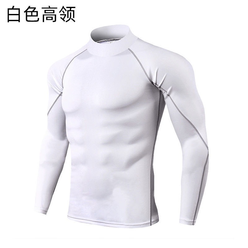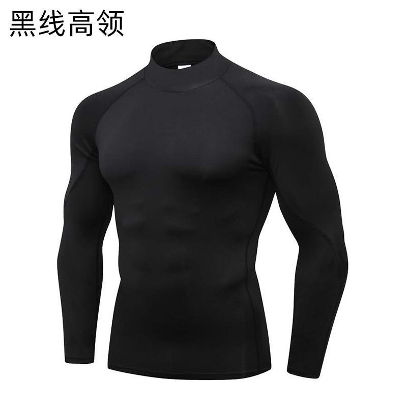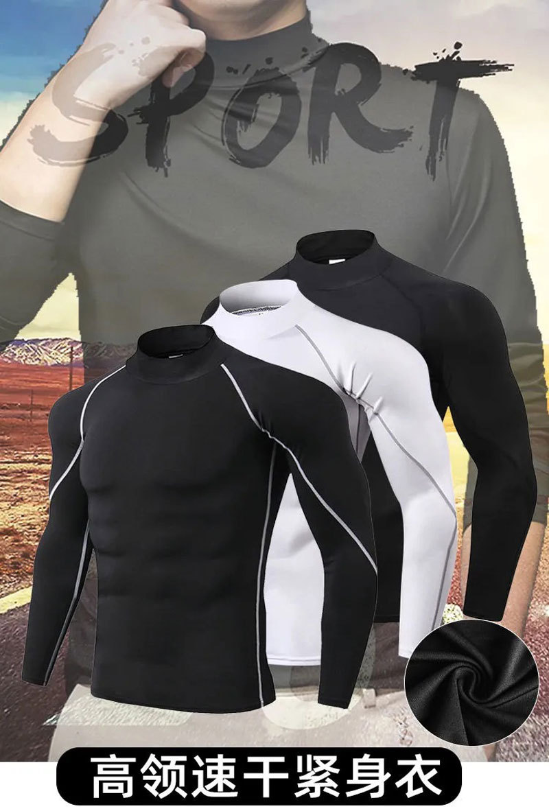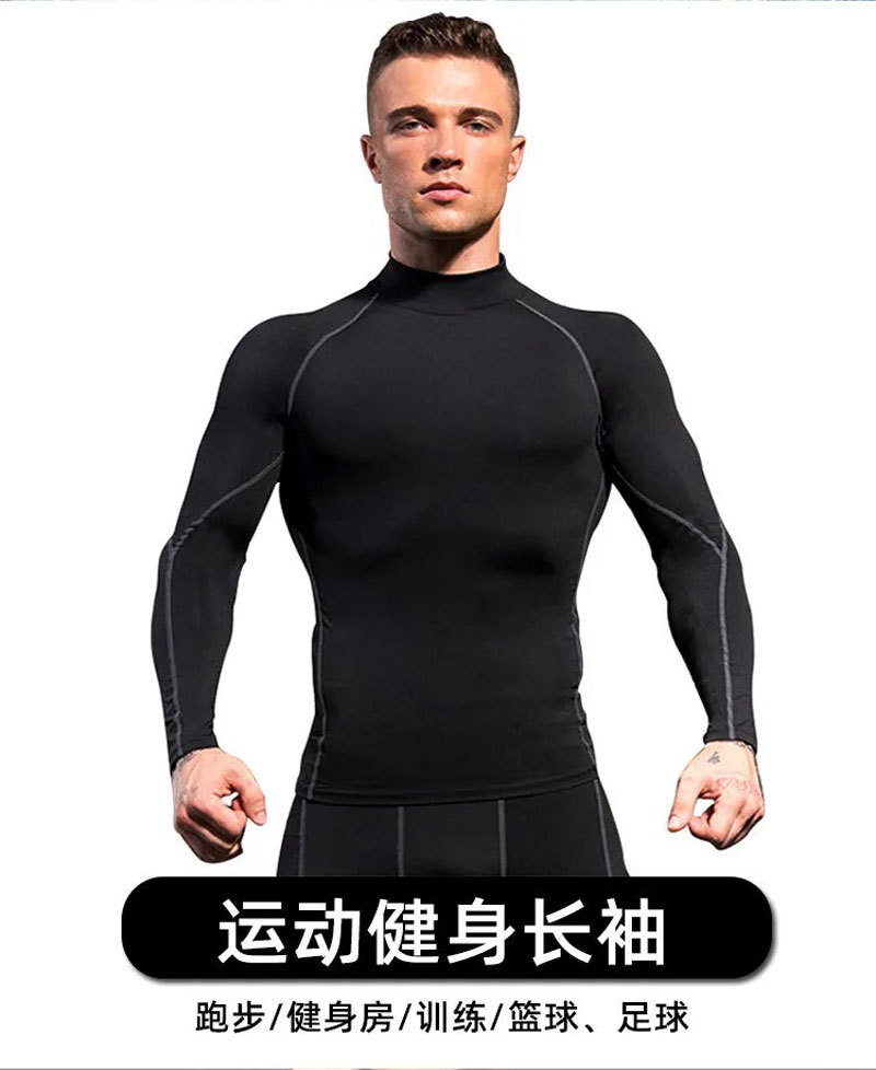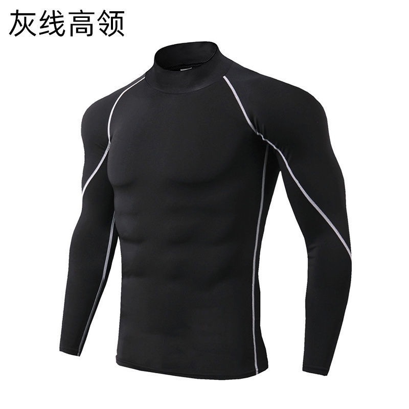 터틀넥 스포츠 스타킹 남자 피트니스 세트 긴팔 하이 바운스 축구 농구 훈련 세트 빠른 건조 코트베이스 코트스토어 가기