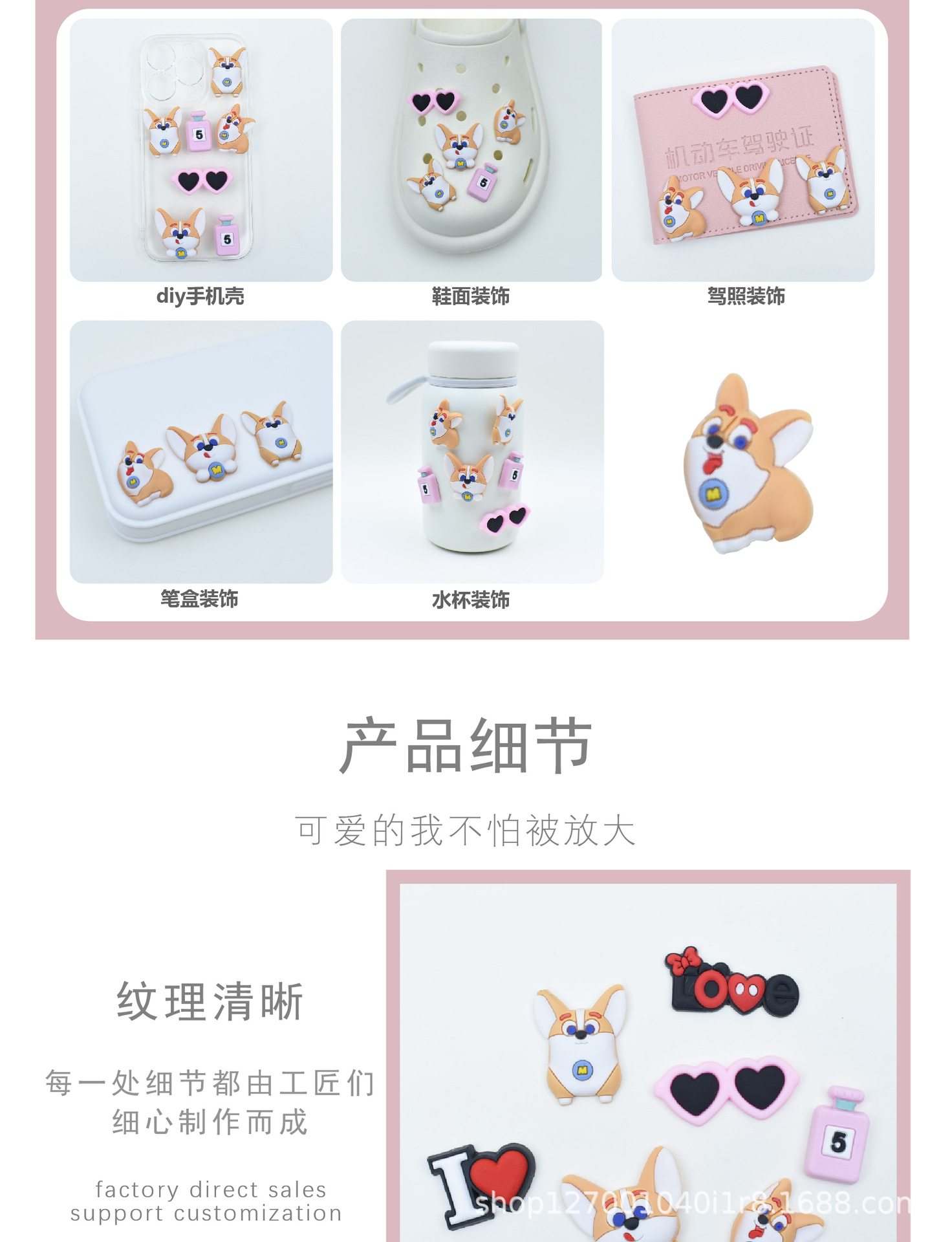 코기 시리즈 소프트 접착 DIY 패치 수지 액세서리 휴대 전화 케이스 홀 신발 버클 워터 컵 3 차원 신발 버클스토어 가기