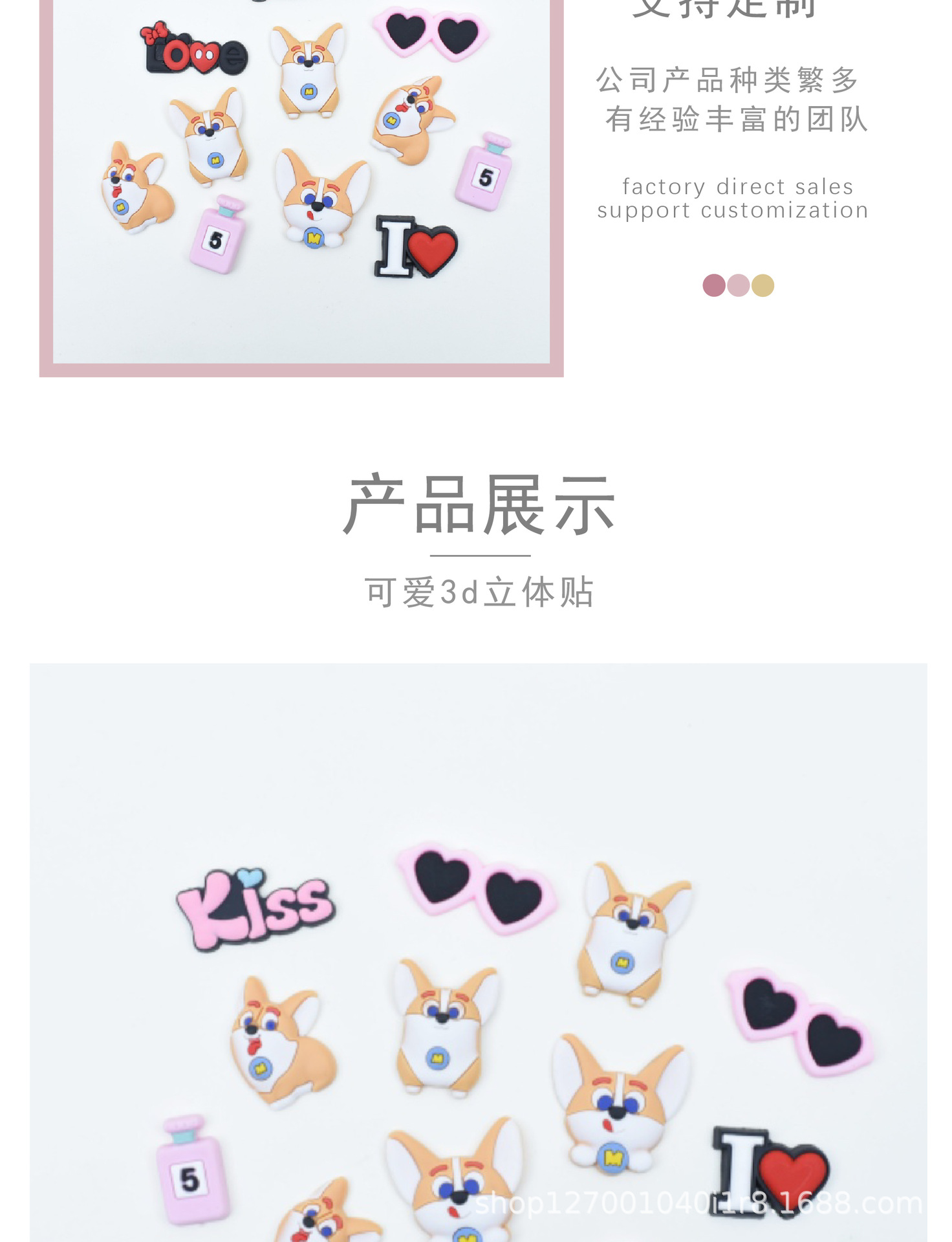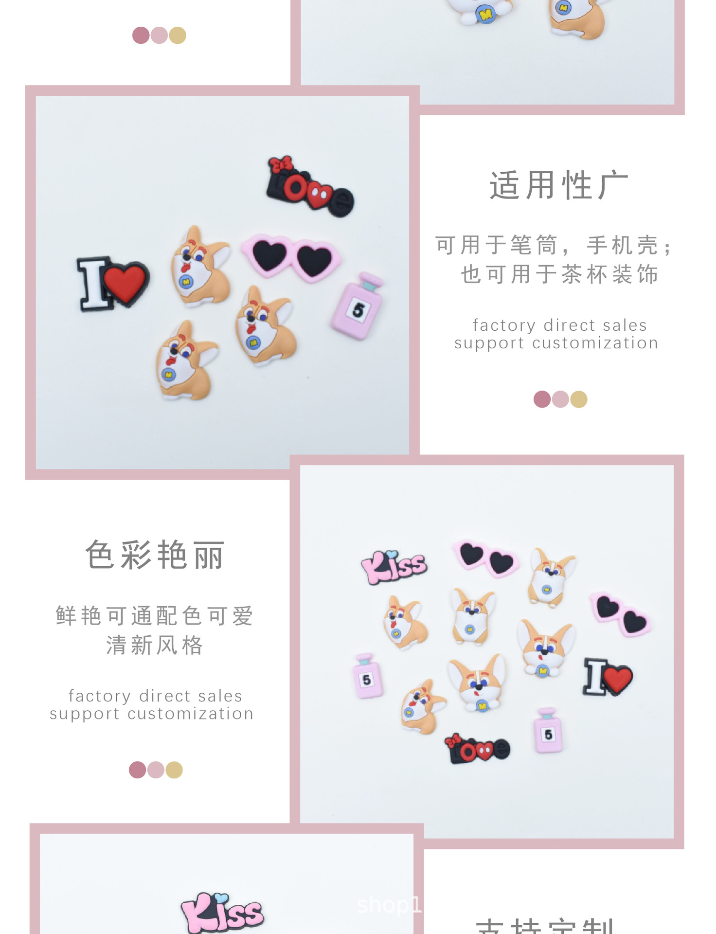 코기 시리즈 소프트 접착 DIY 패치 수지 액세서리 휴대 전화 케이스 홀 신발 버클 워터 컵 3 차원 신발 버클