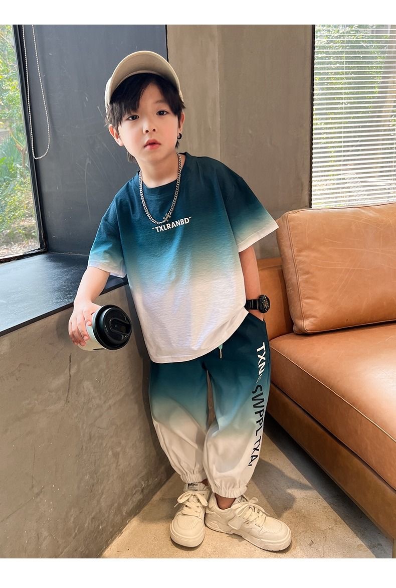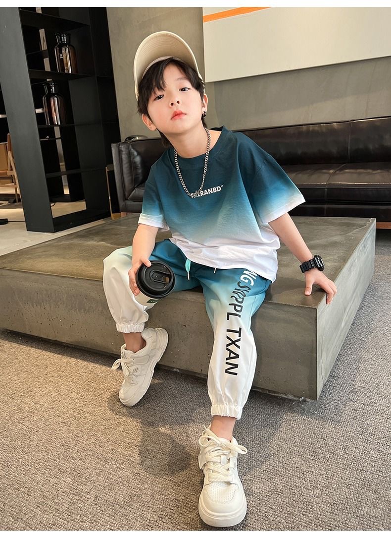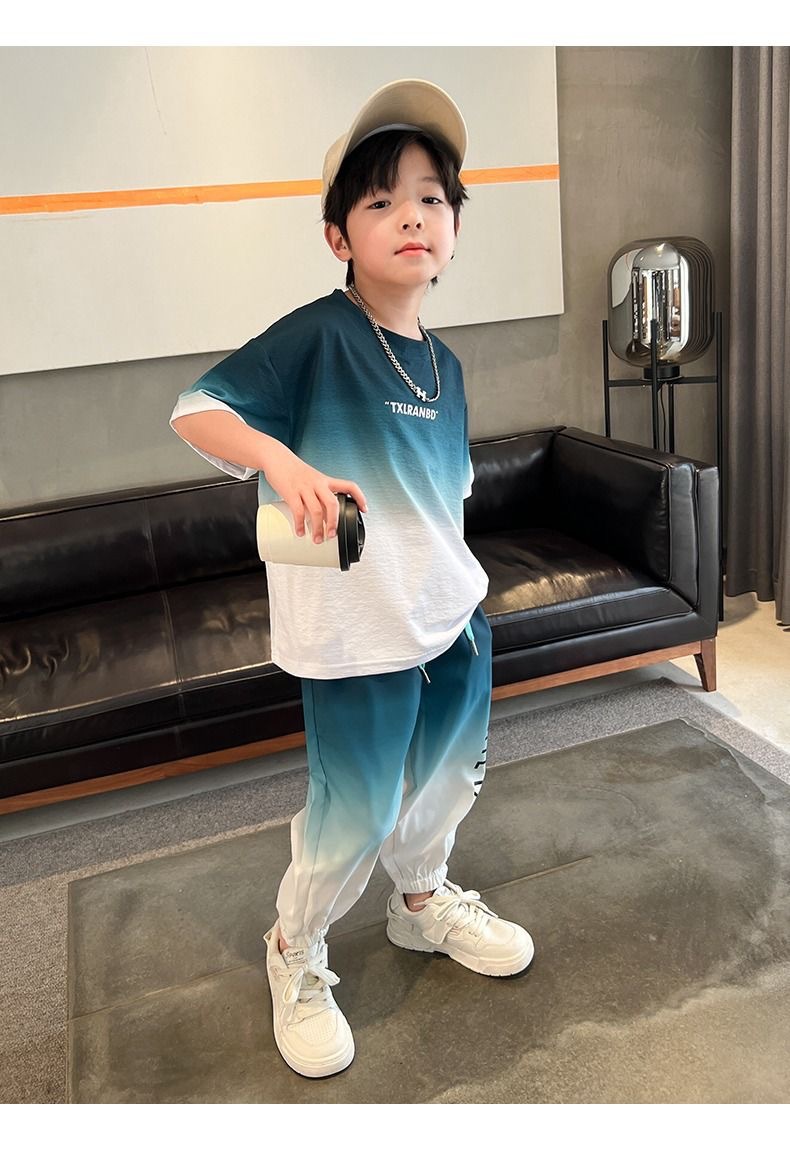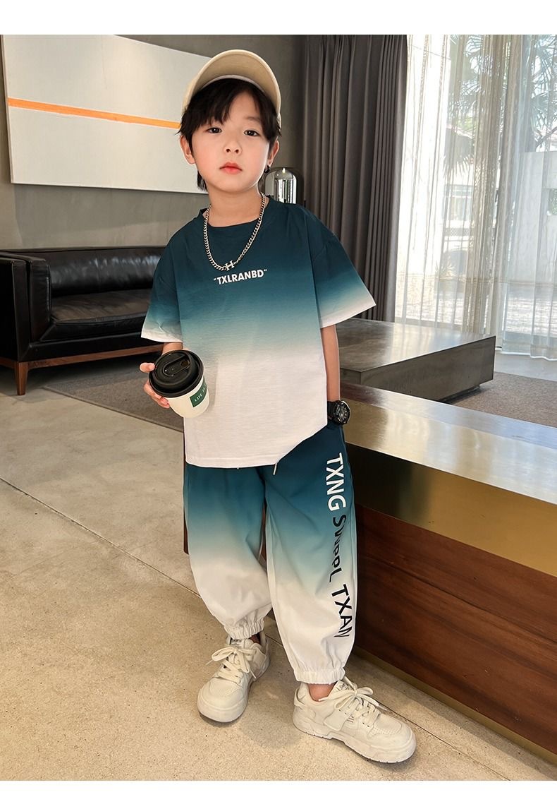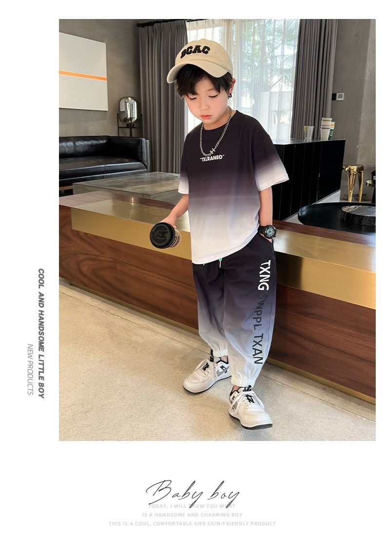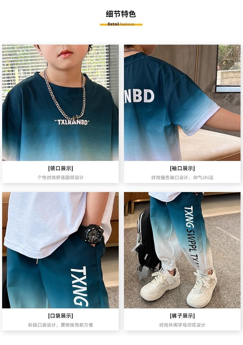 남자들의 여름 2024 새로운 도착 세트 반팔 바지 큰 아이들과 소년 잘 생긴 유행 여름 캐주얼 투피스 세트