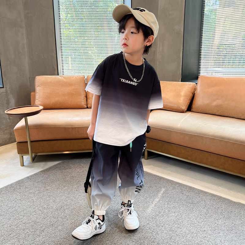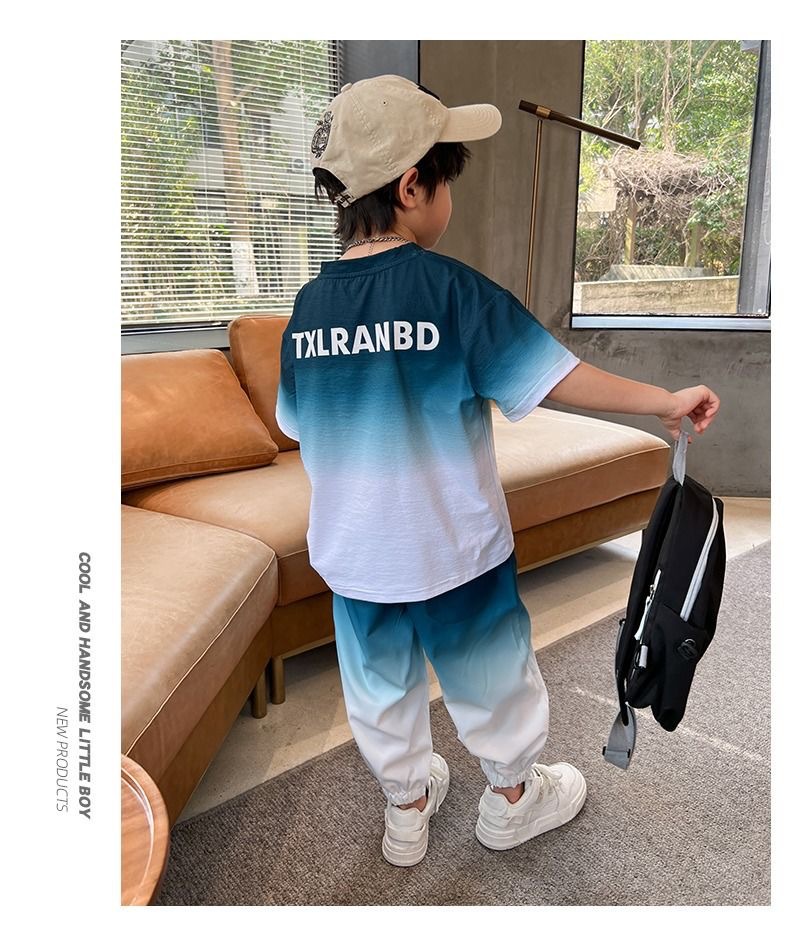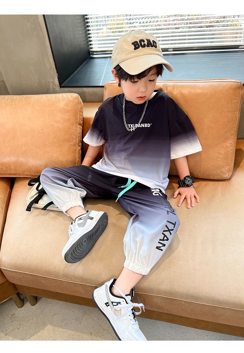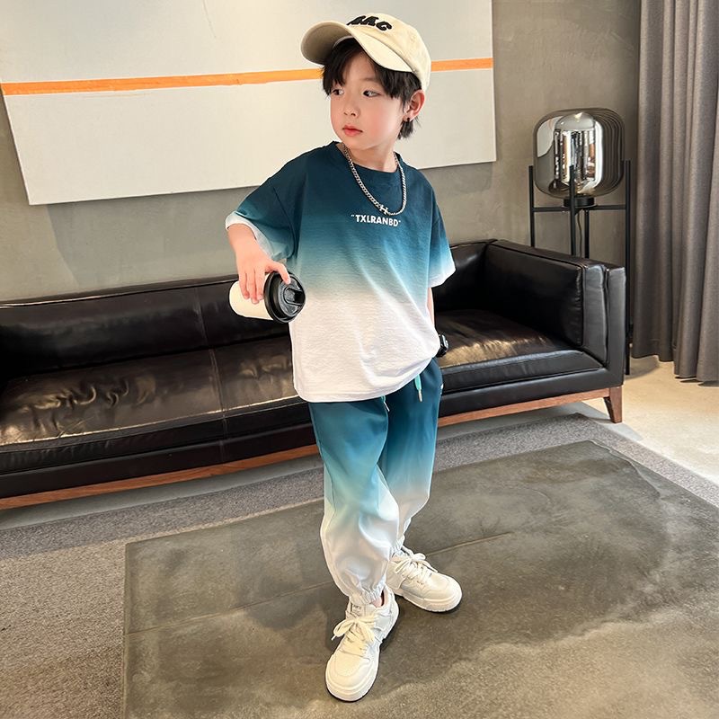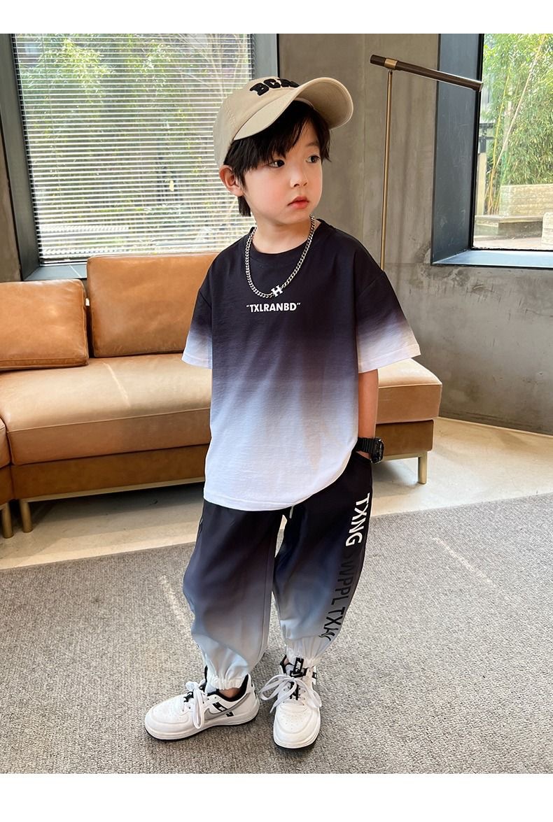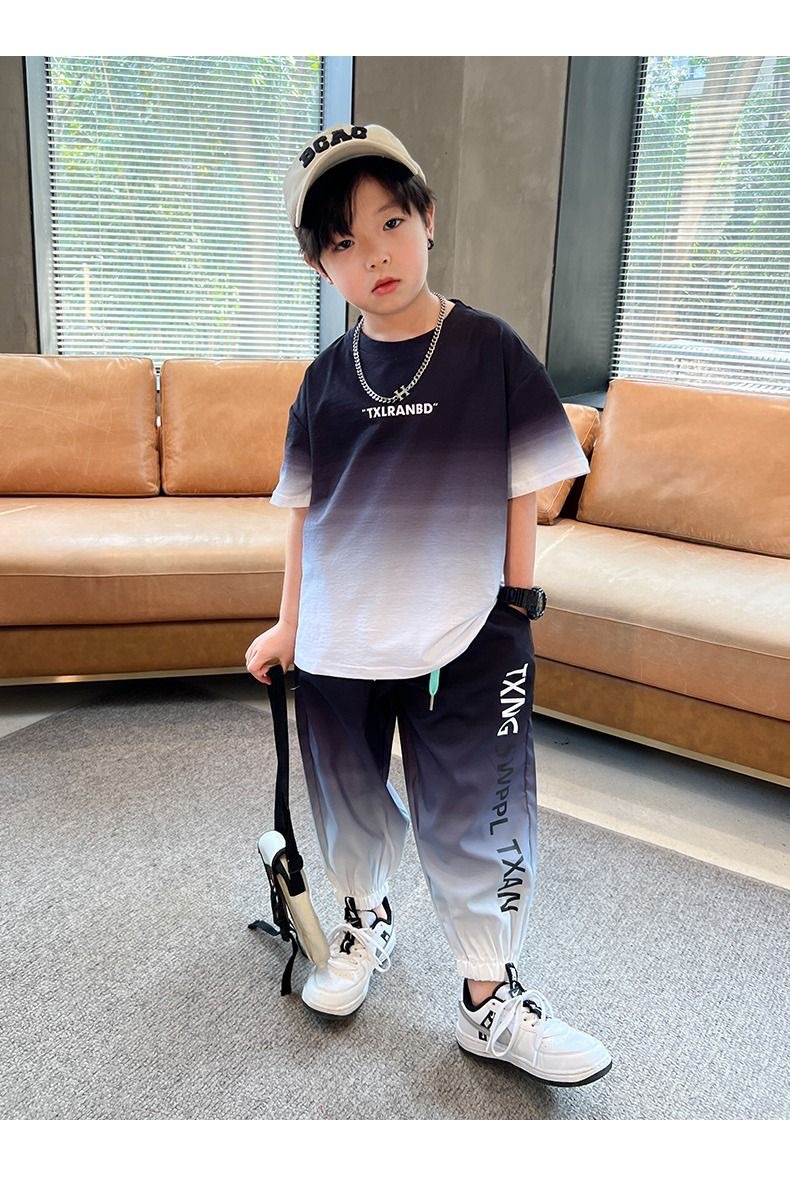 남자들의 여름 2024 새로운 도착 세트 반팔 바지 큰 아이들과 소년 잘 생긴 유행 여름 캐주얼 투피스 세트