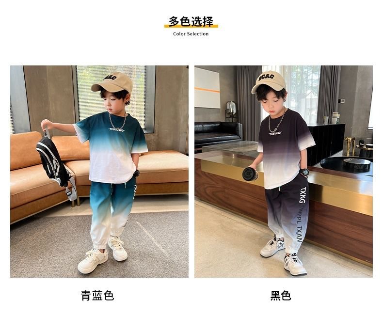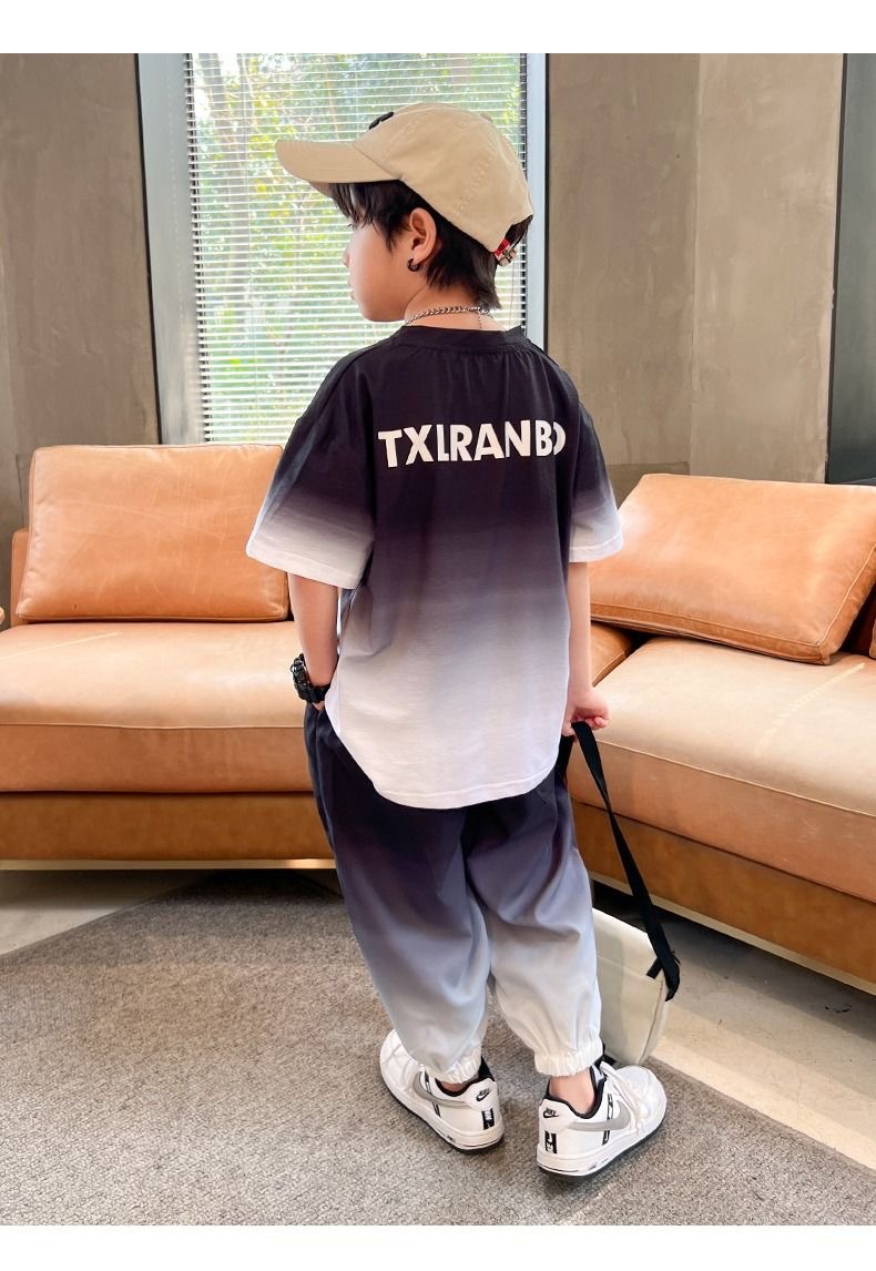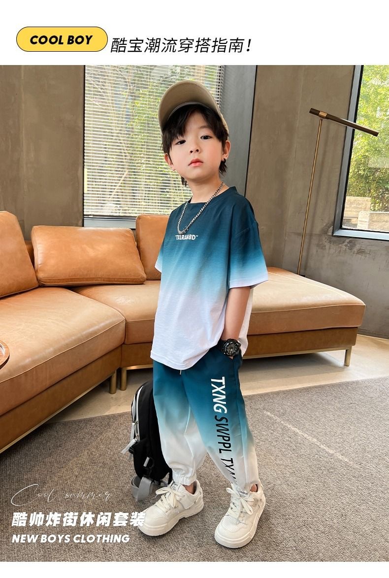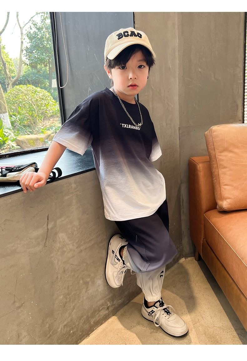 남자들의 여름 2024 새로운 도착 세트 반팔 바지 큰 아이들과 소년 잘 생긴 유행 여름 캐주얼 투피스 세트스토어 가기