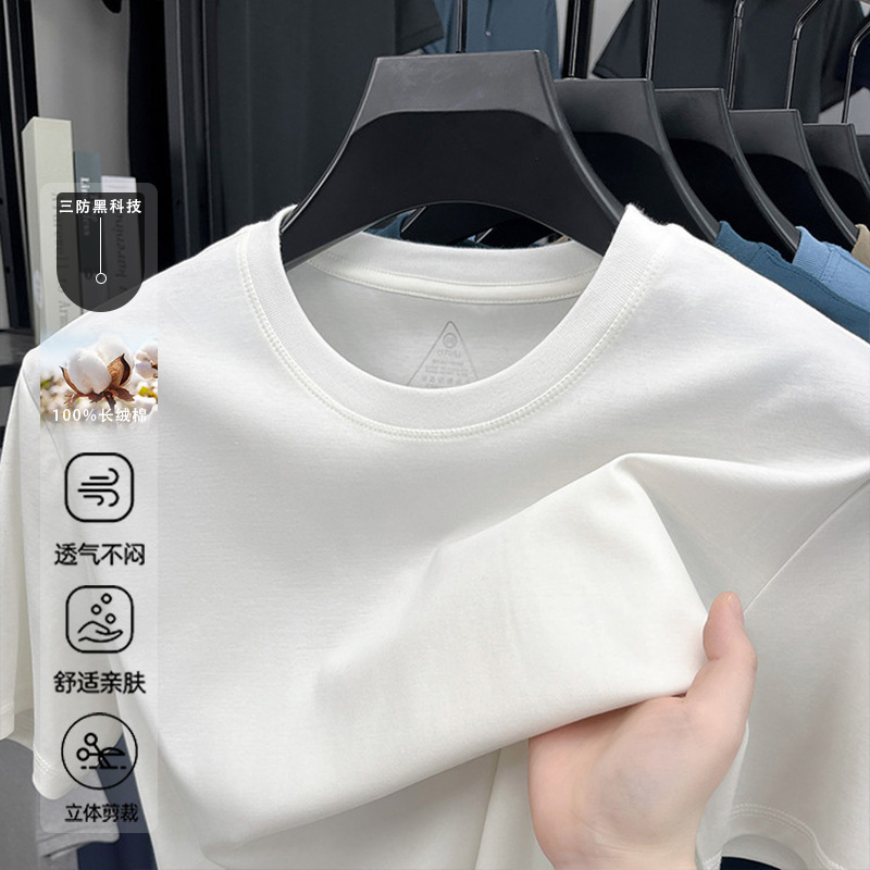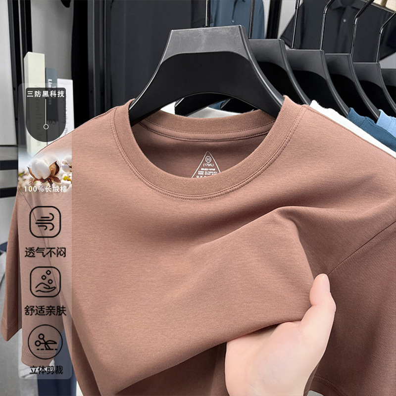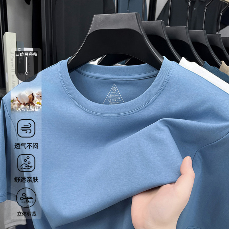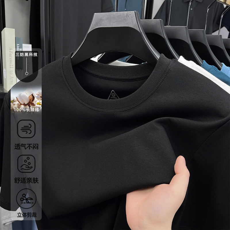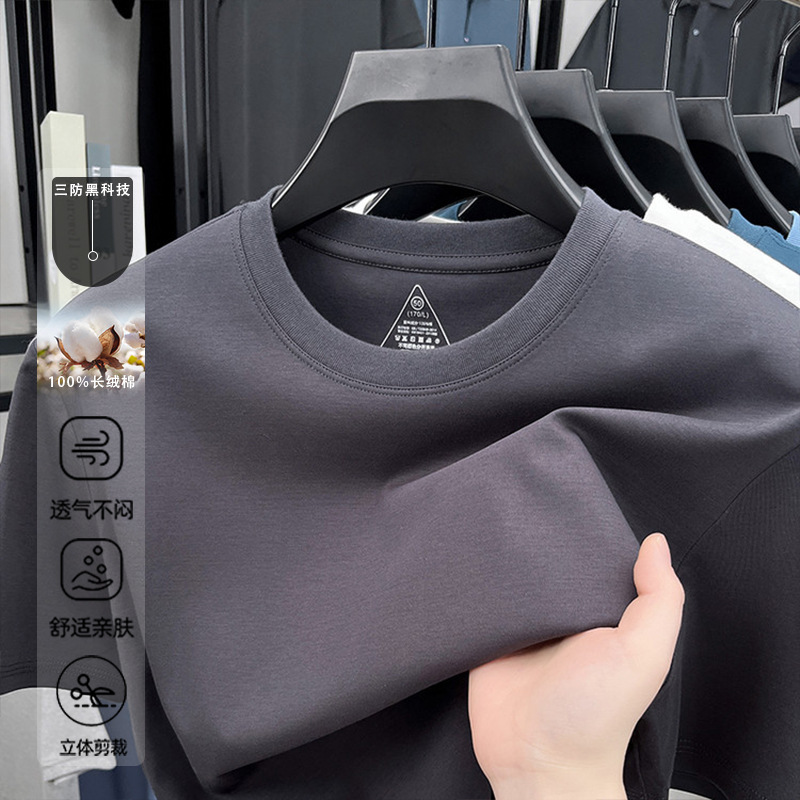 【삼중방수T-신장장섬면】2026년 여름 블랙테크놀로지 삼중방수 반팔 남성 티셔츠 라운드넥 순면 티셔츠 남성용