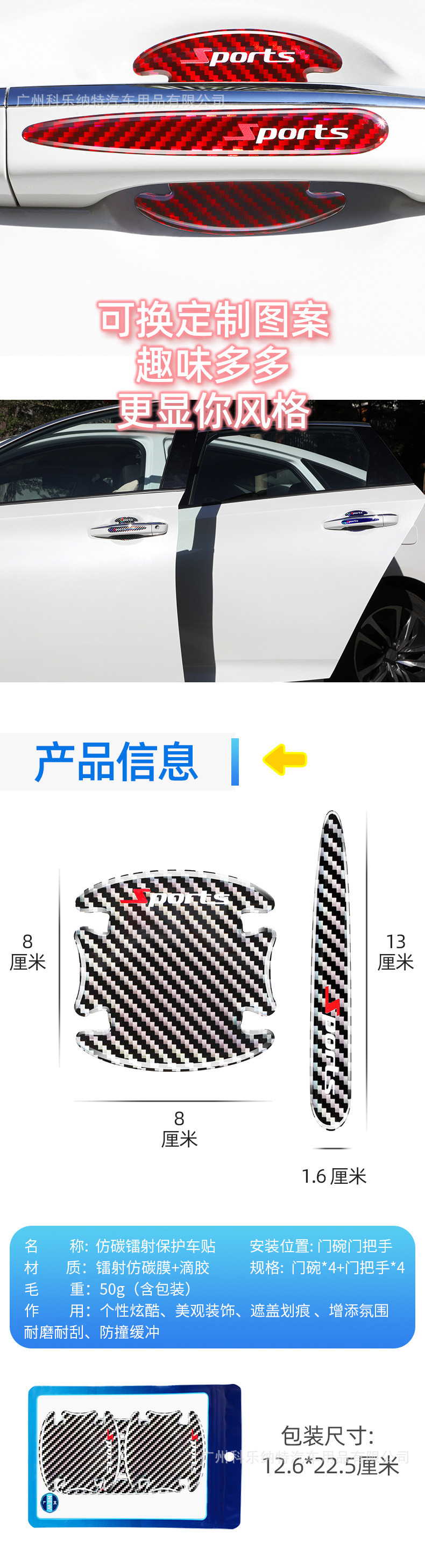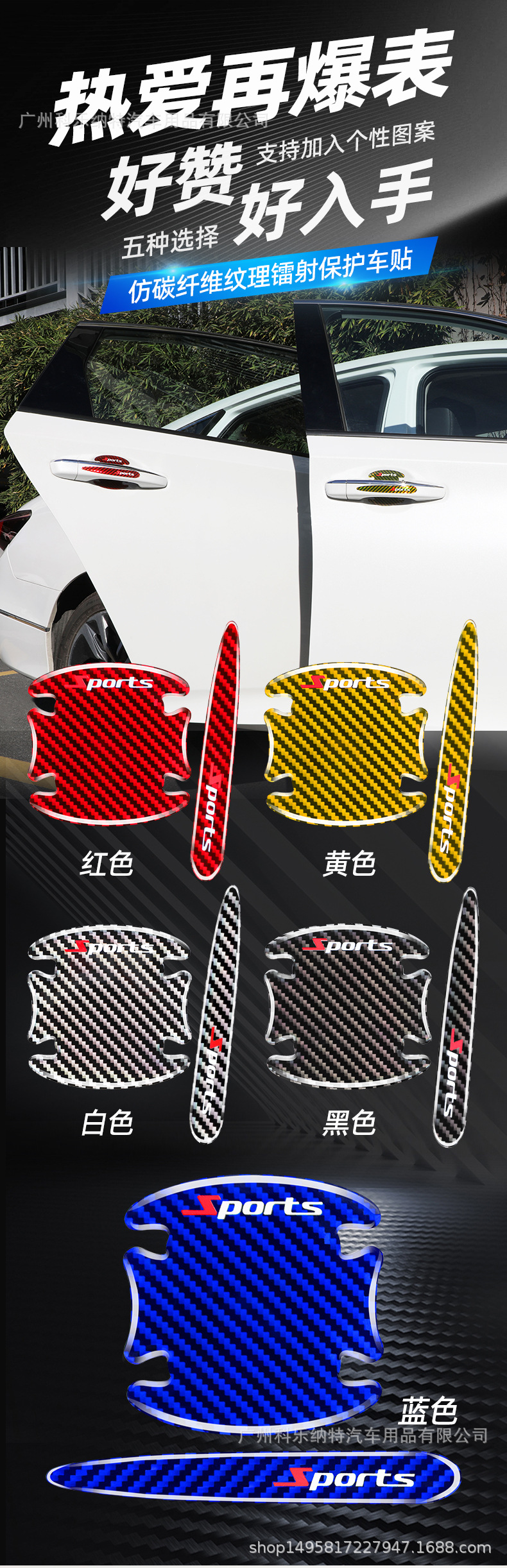 새로운 탄소 섬유 패턴 자동차 도어 그릇 긁힘 방지 스티커 맞춤형 범용 레이저 자동차 도어 핸들 충돌 방지 스트립 맞춤형 로고
