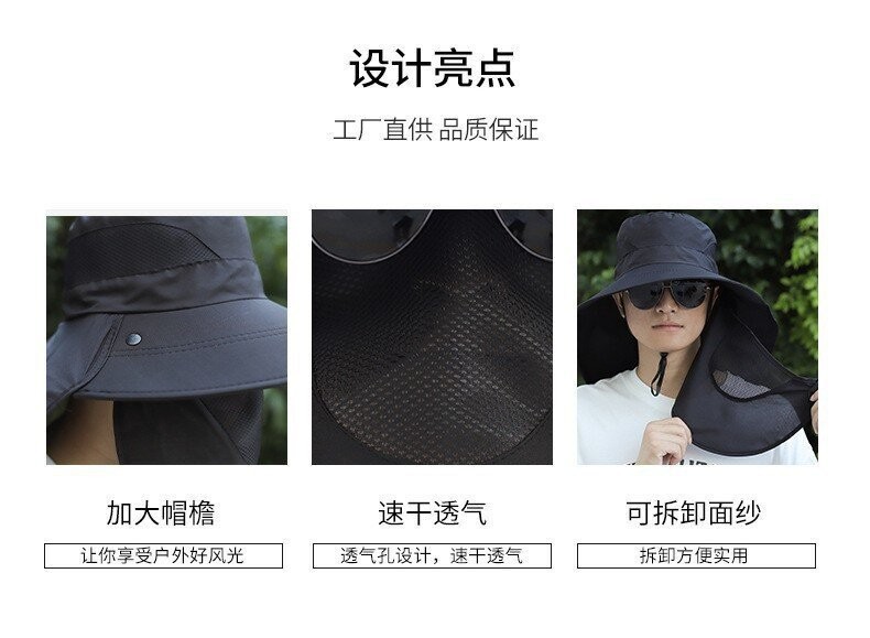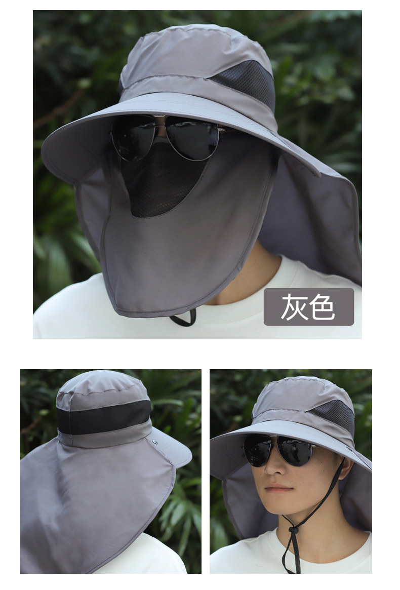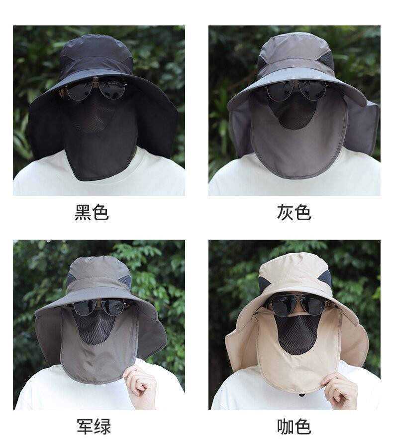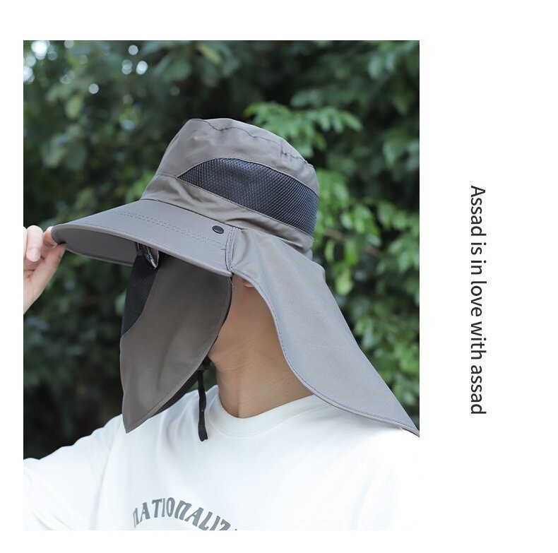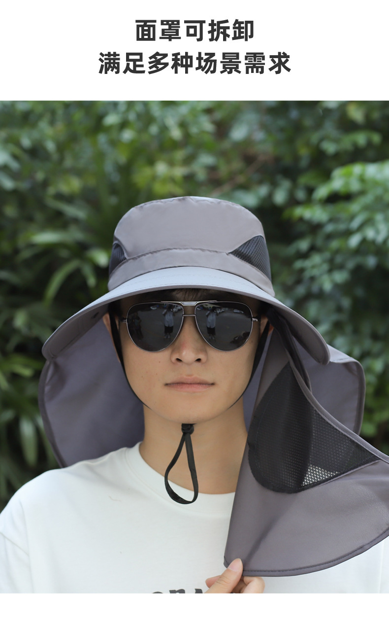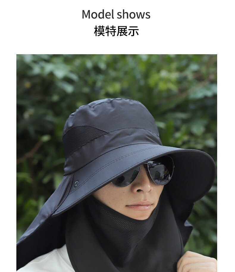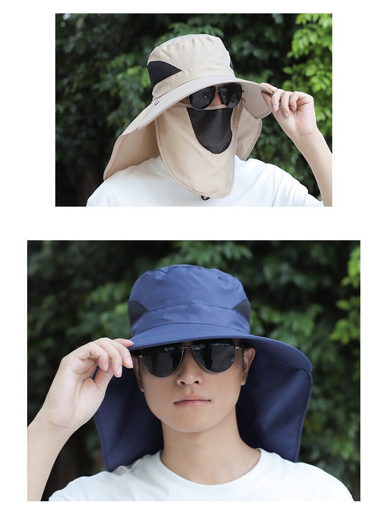 얼굴을 덮는 남성용 여름 등산 야외 자외선 차단 모자, 방수 속건 숄 모자, 챙이 큰 자외선 차단 낚시 모자