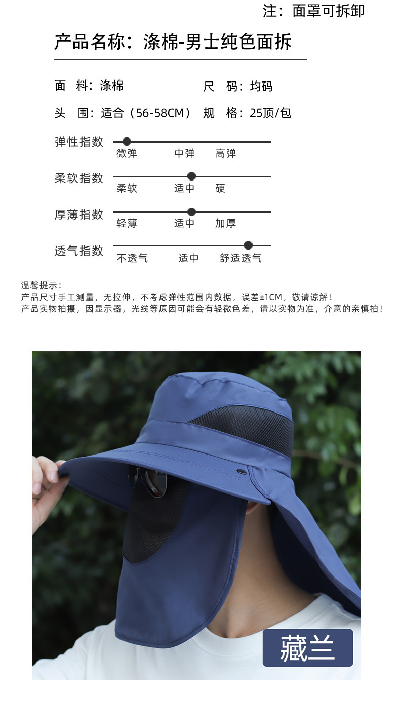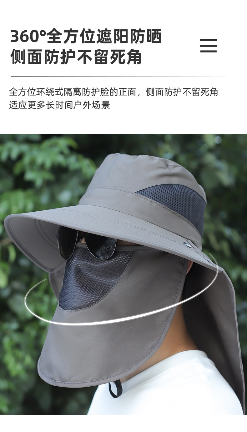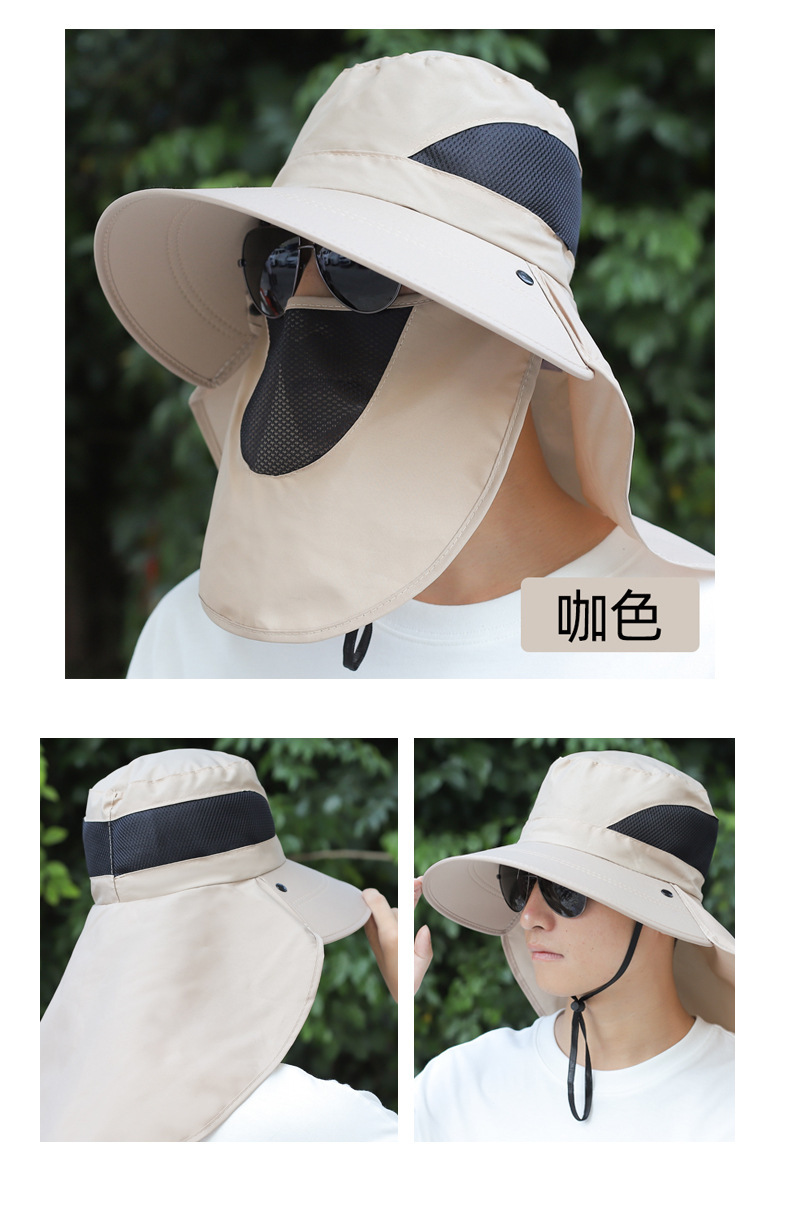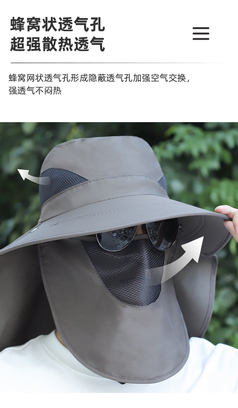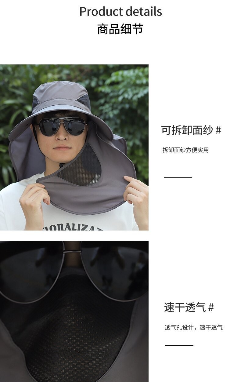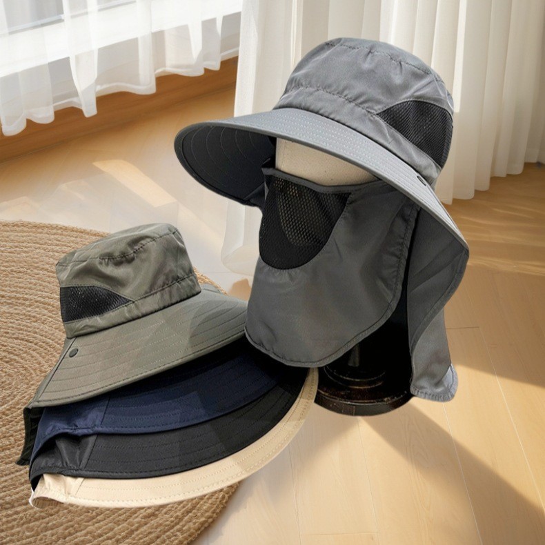 얼굴을 덮는 남성용 여름 등산 야외 자외선 차단 모자, 방수 속건 숄 모자, 챙이 큰 자외선 차단 낚시 모자