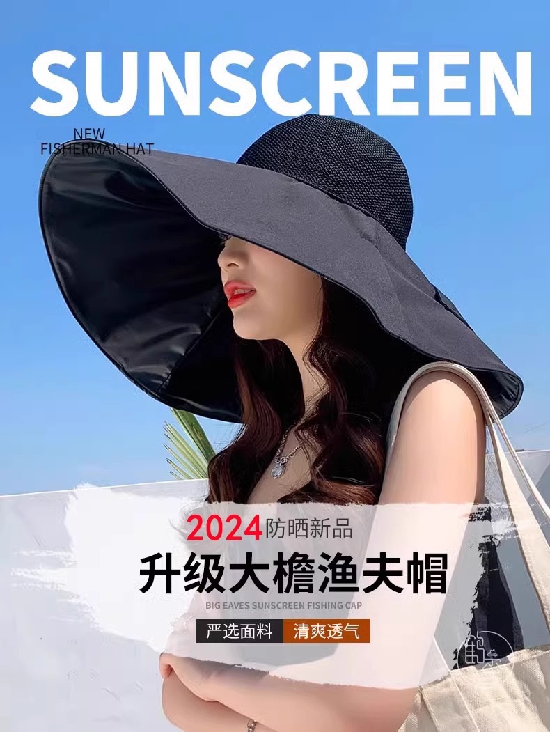 2026년 신형 여성용 챙넓은 어부 모자, 여름 야외용 자외선 차단 모자, UV 차단 블랙 글로시 챙넓은 메쉬 모자스토어 가기
