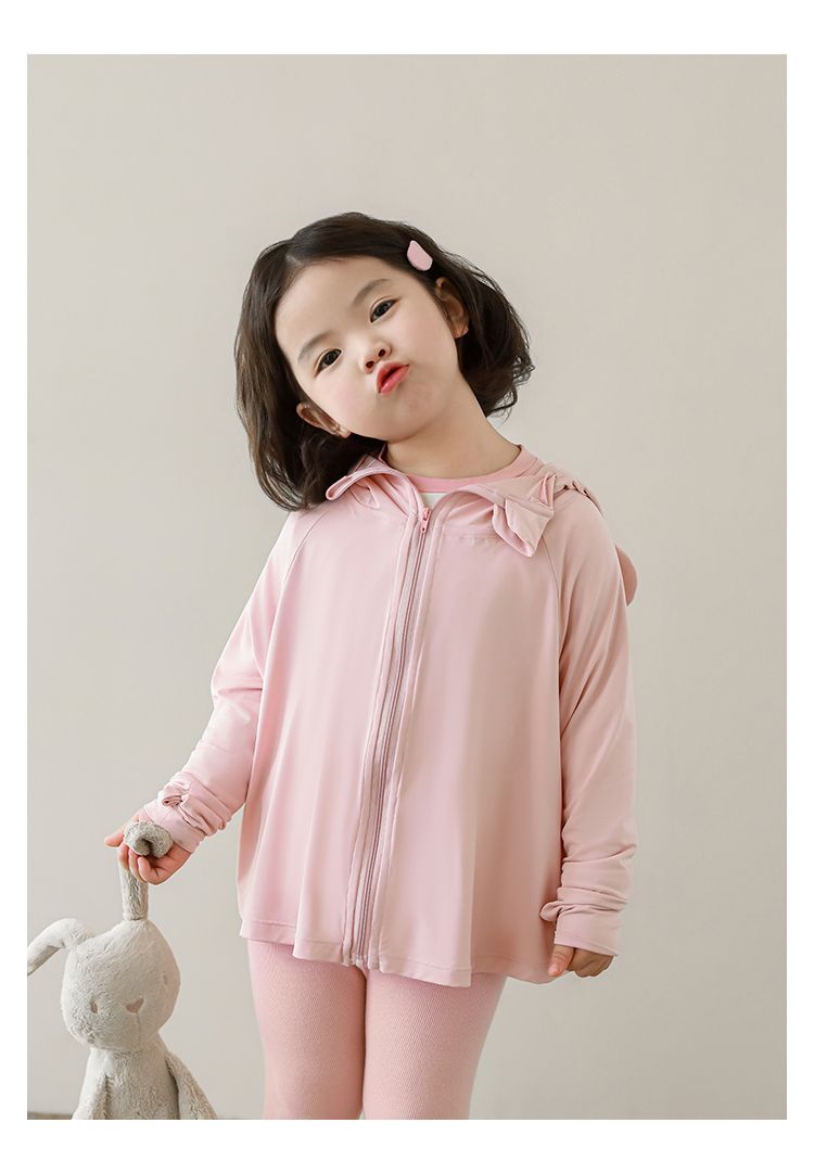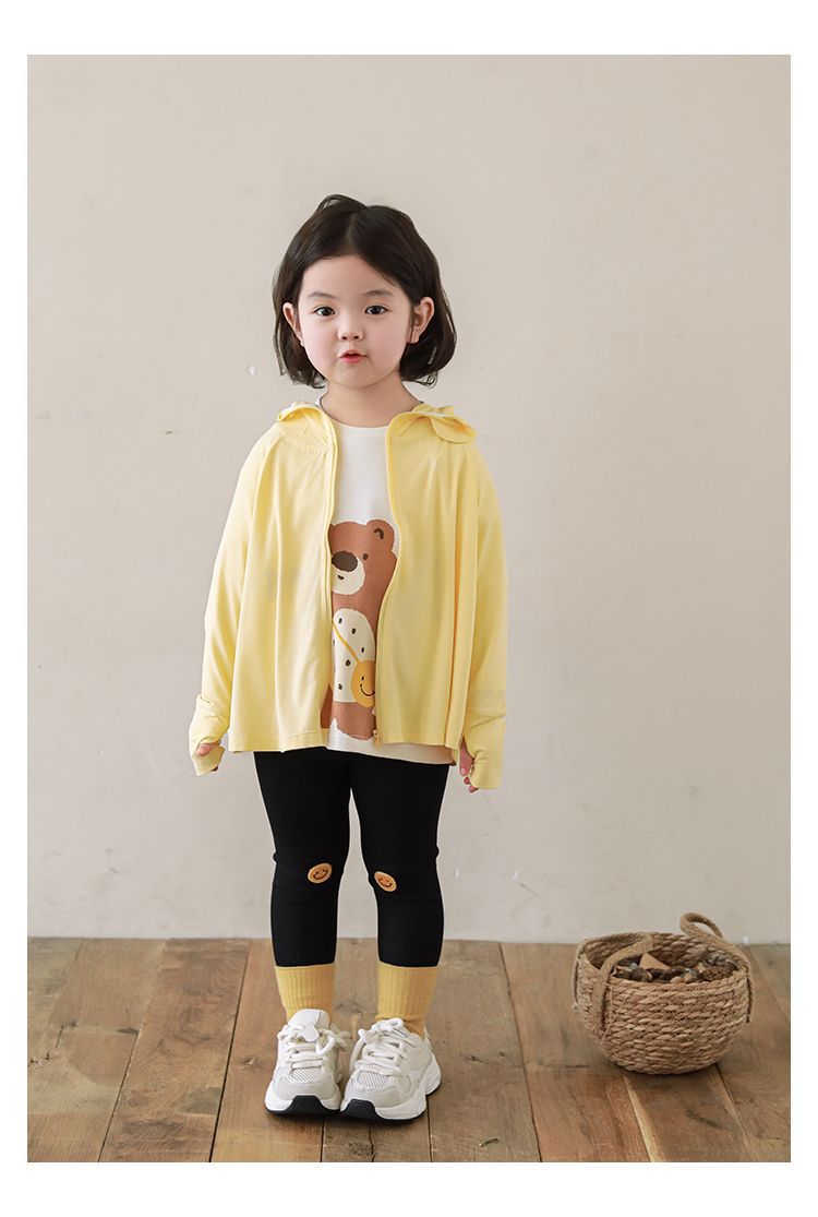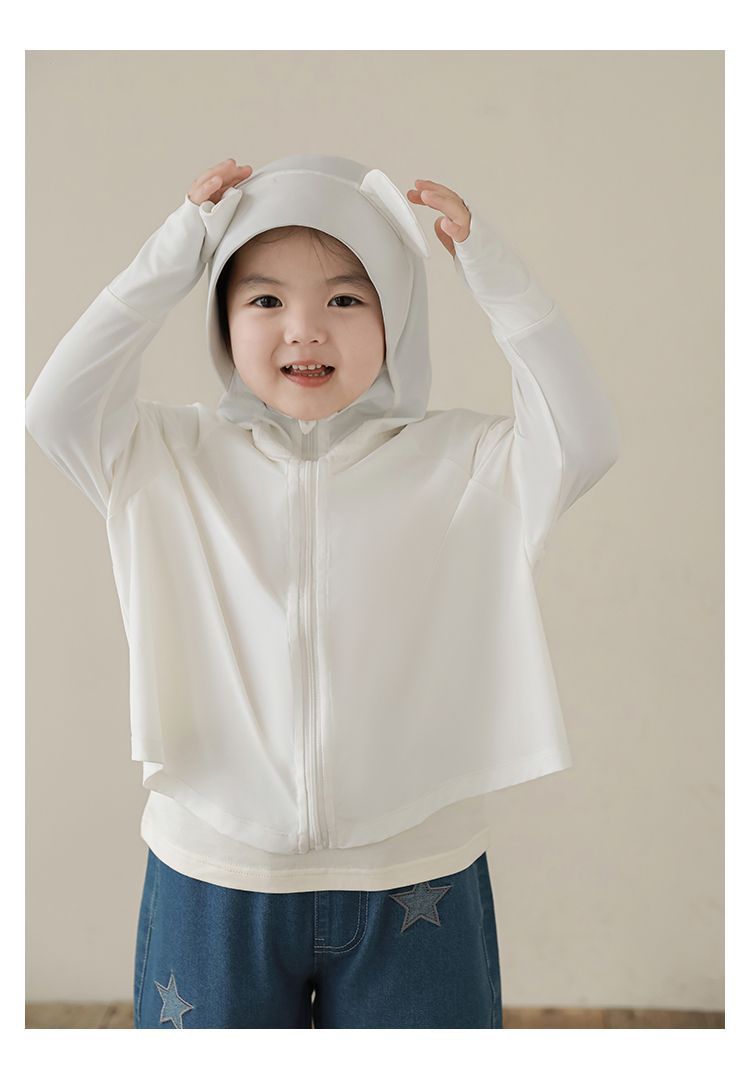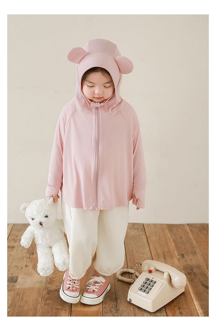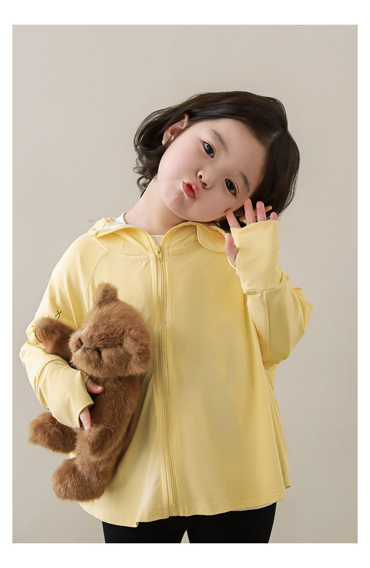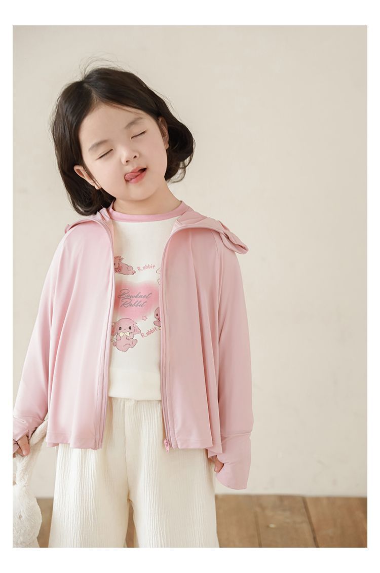 Wuri Boo Girl의 단색 후드 그늘 탑 여름 어린이 귀여운 경량 통기성 느슨한 캐주얼 자켓