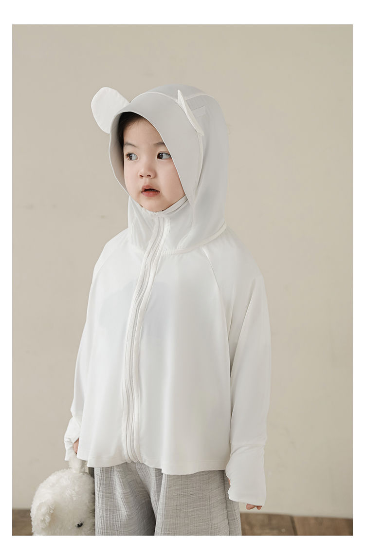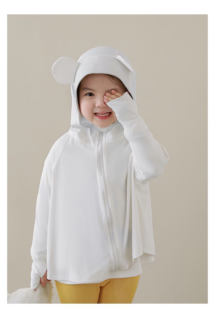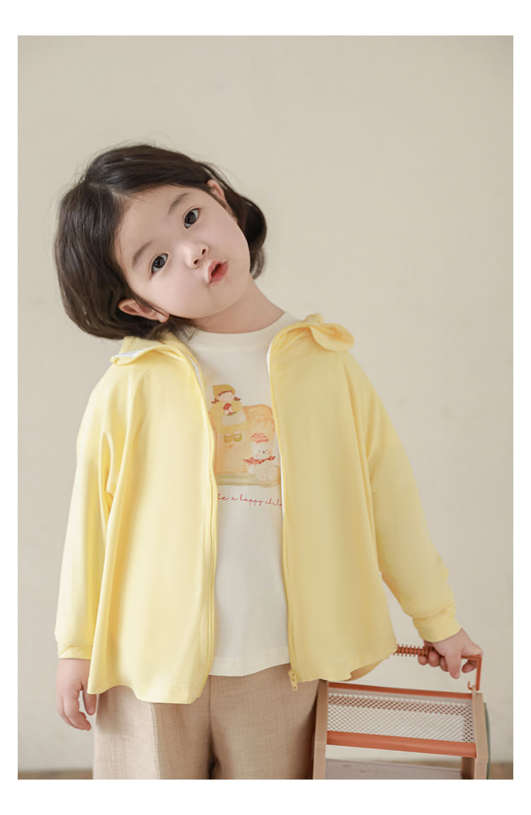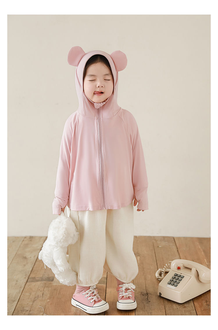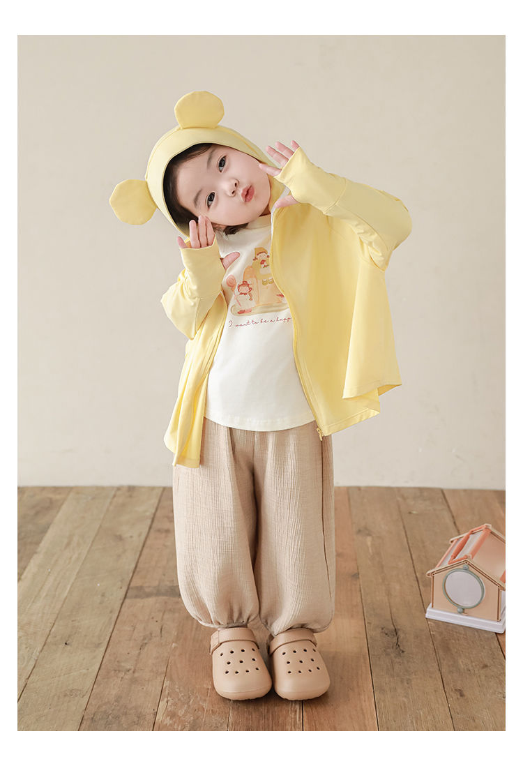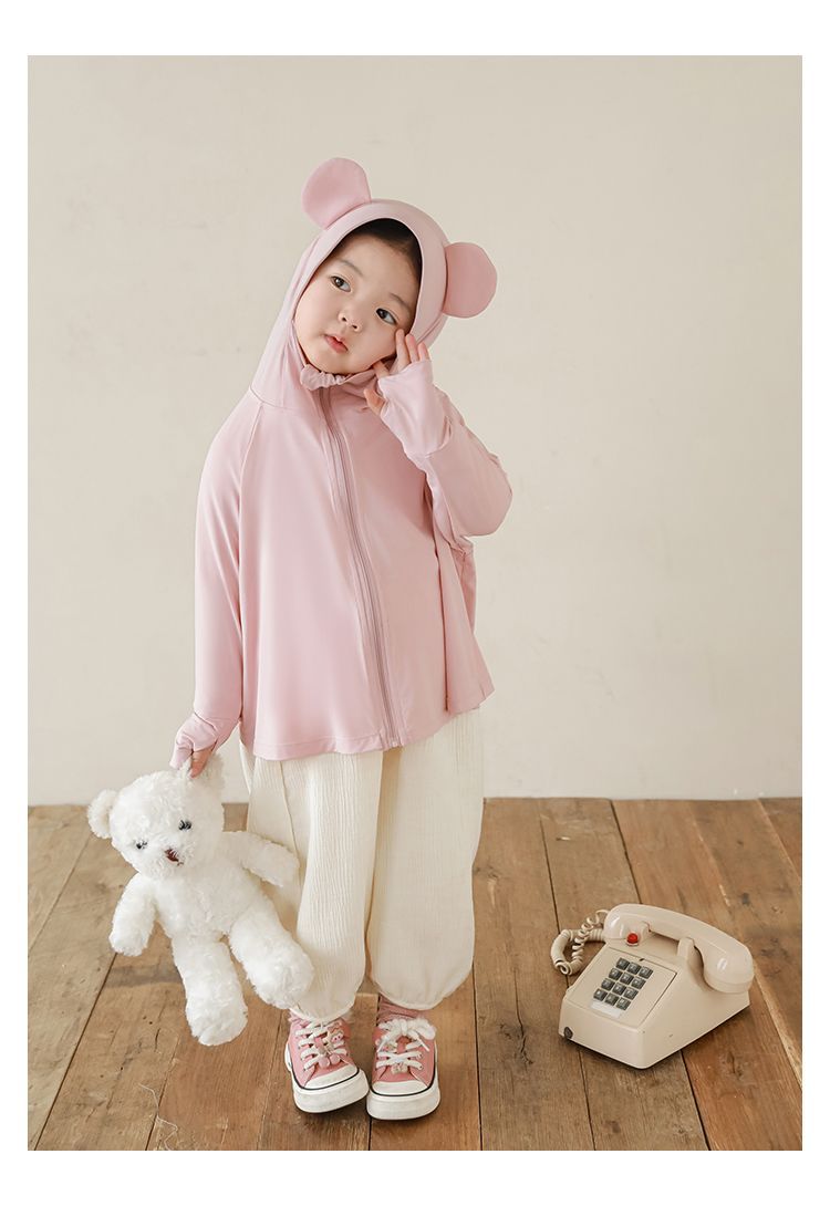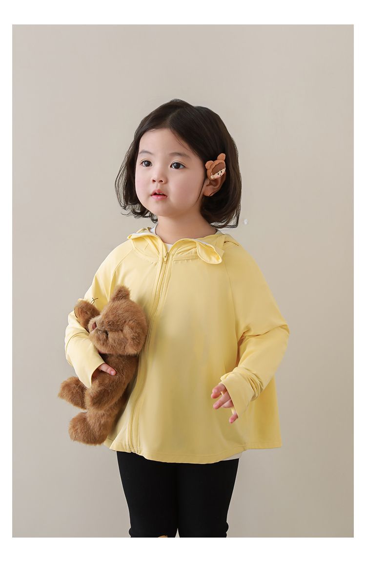 Wuri Boo Girl의 단색 후드 그늘 탑 여름 어린이 귀여운 경량 통기성 느슨한 캐주얼 자켓