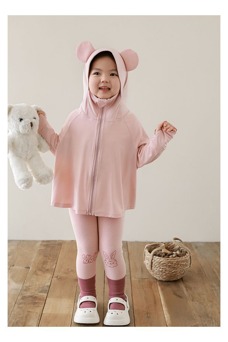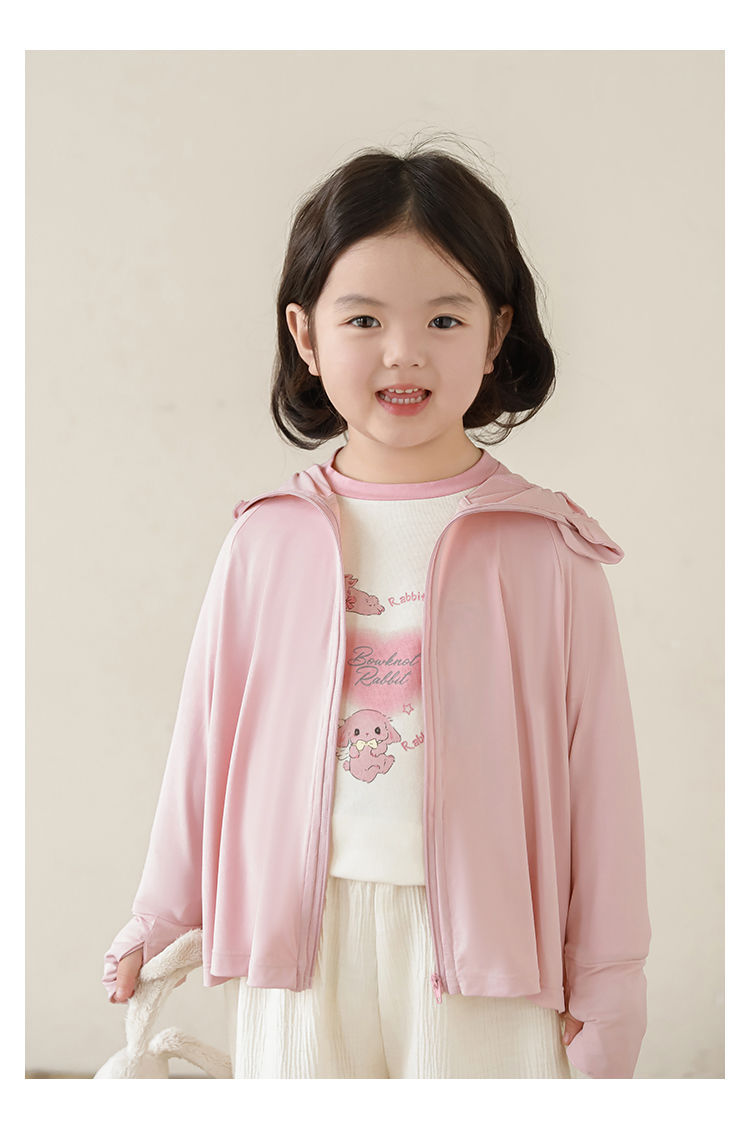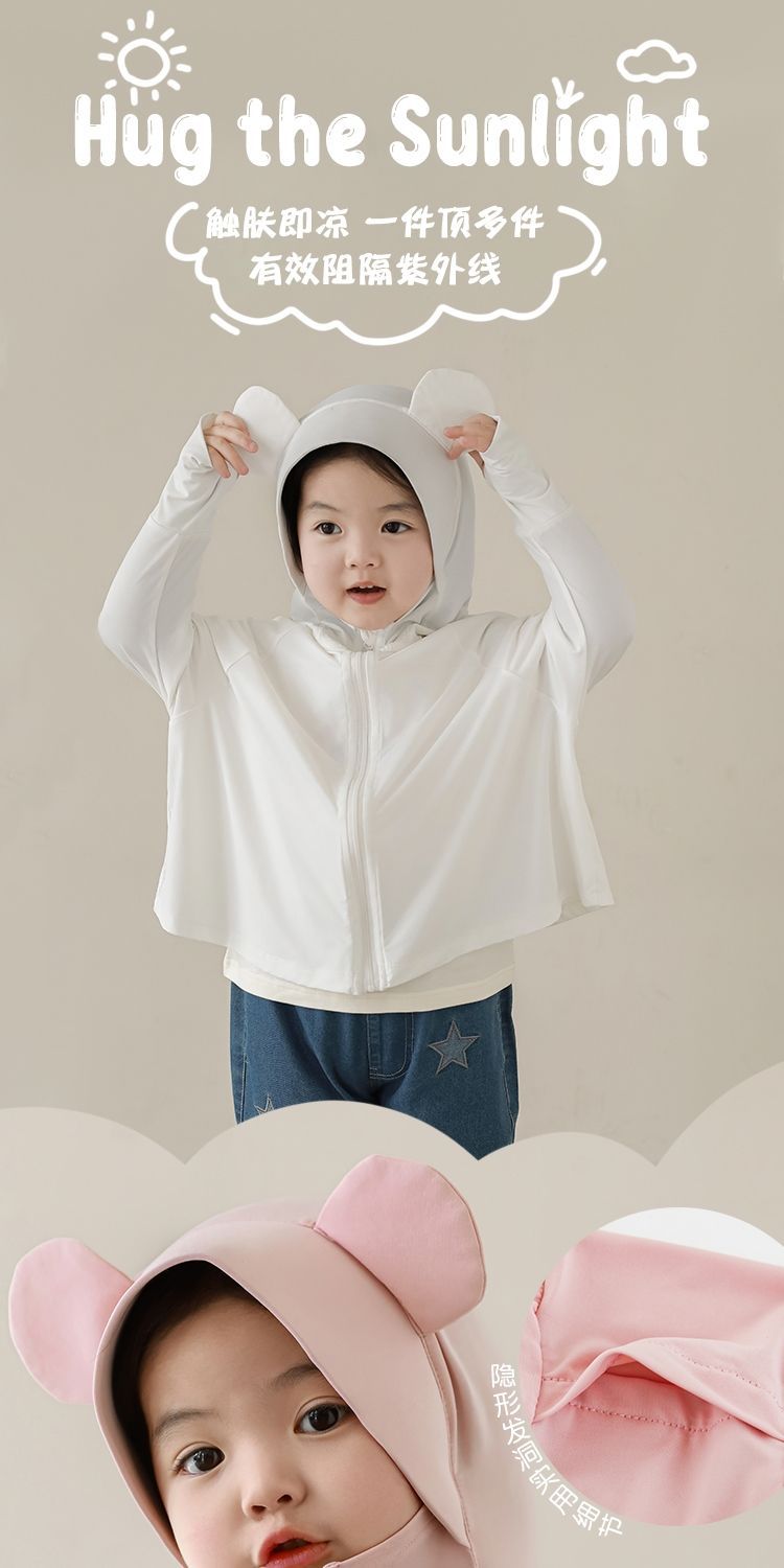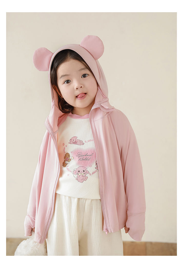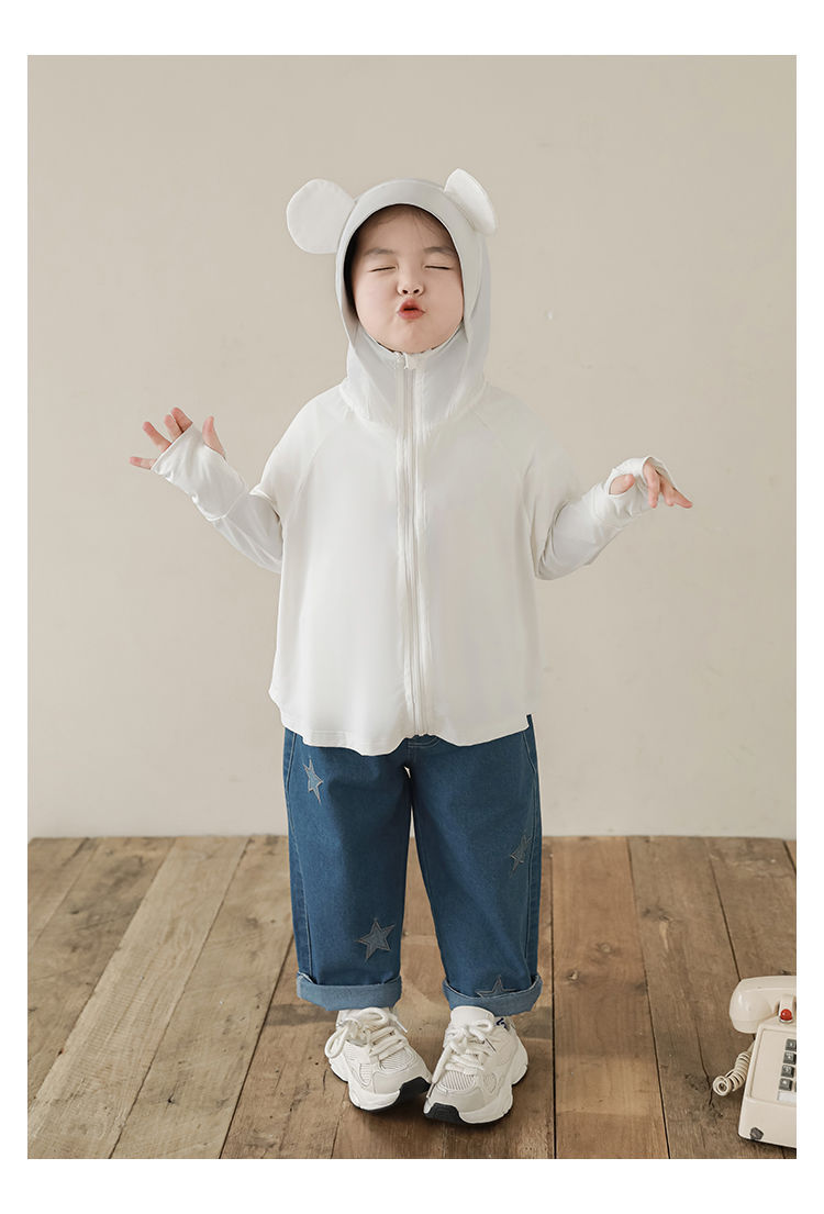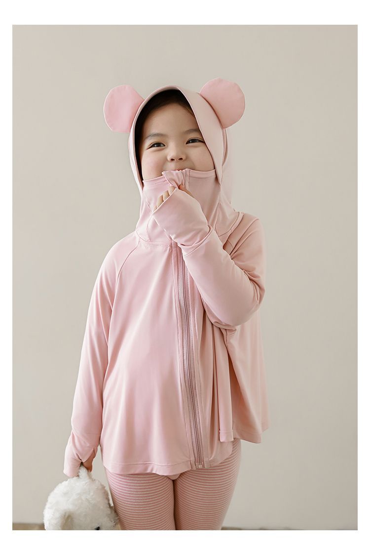 Wuri Boo Girl의 단색 후드 그늘 탑 여름 어린이 귀여운 경량 통기성 느슨한 캐주얼 자켓
