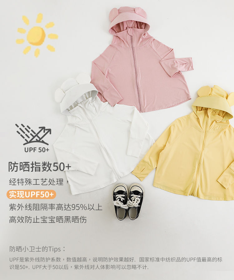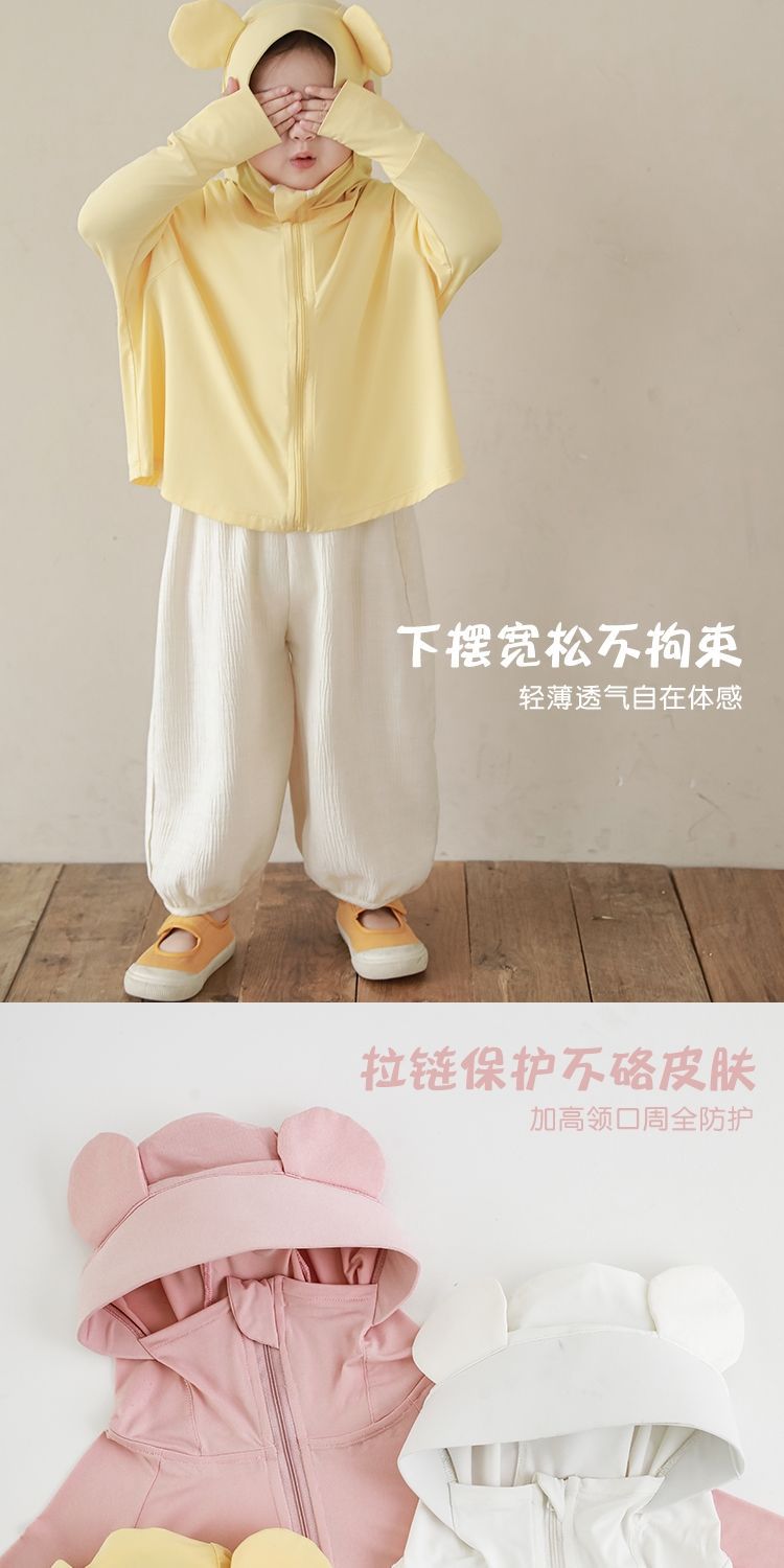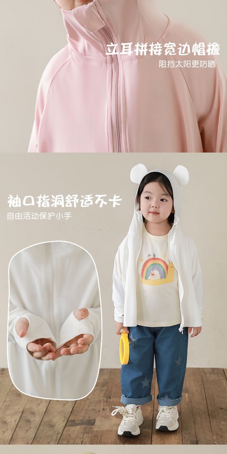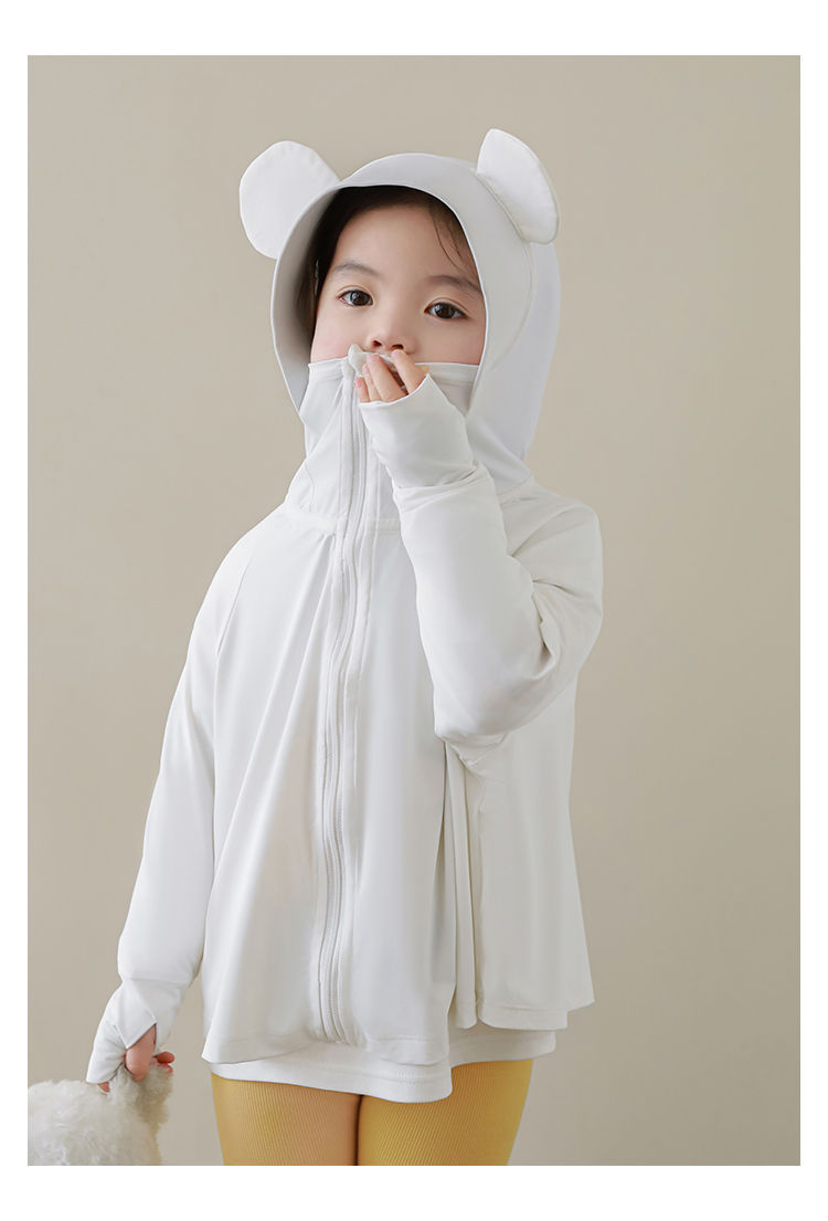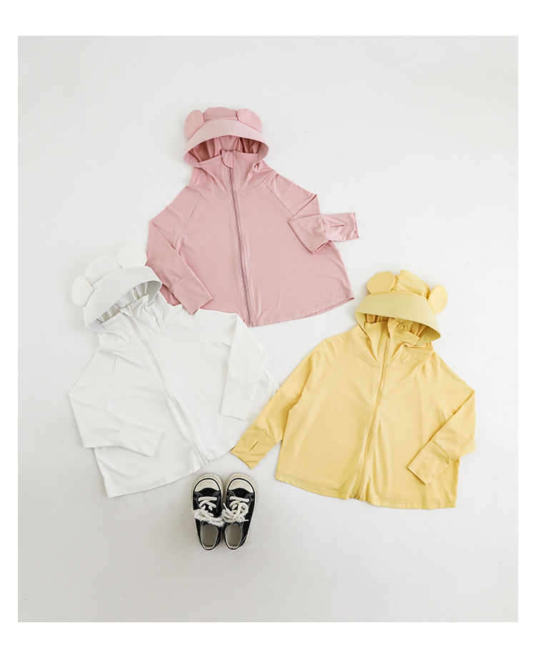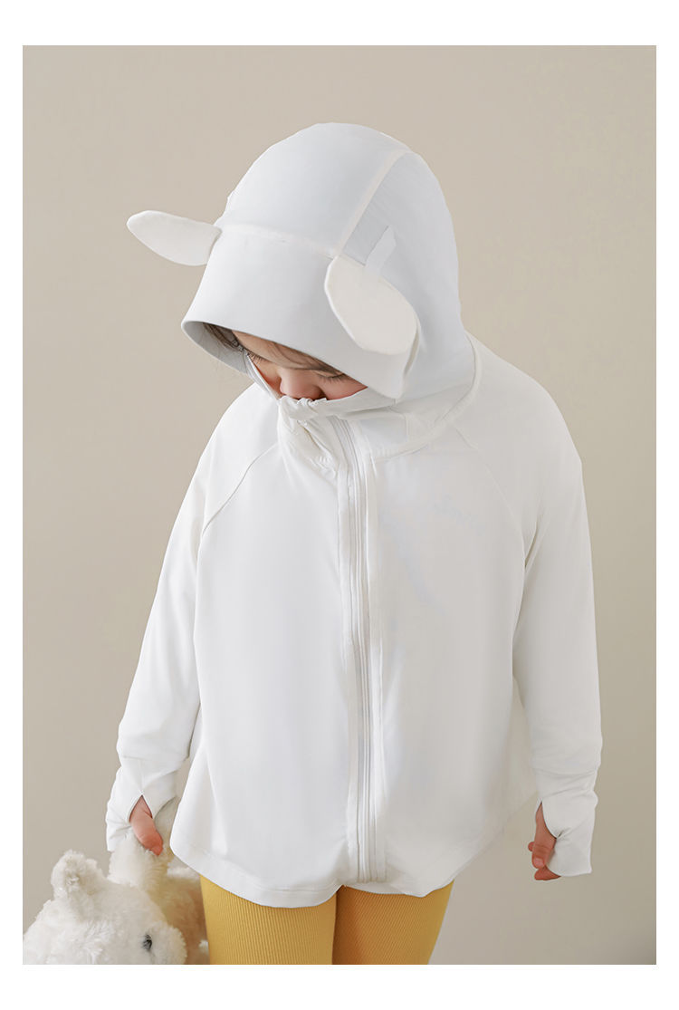 Wuri Boo Girl의 단색 후드 그늘 탑 여름 어린이 귀여운 경량 통기성 느슨한 캐주얼 자켓