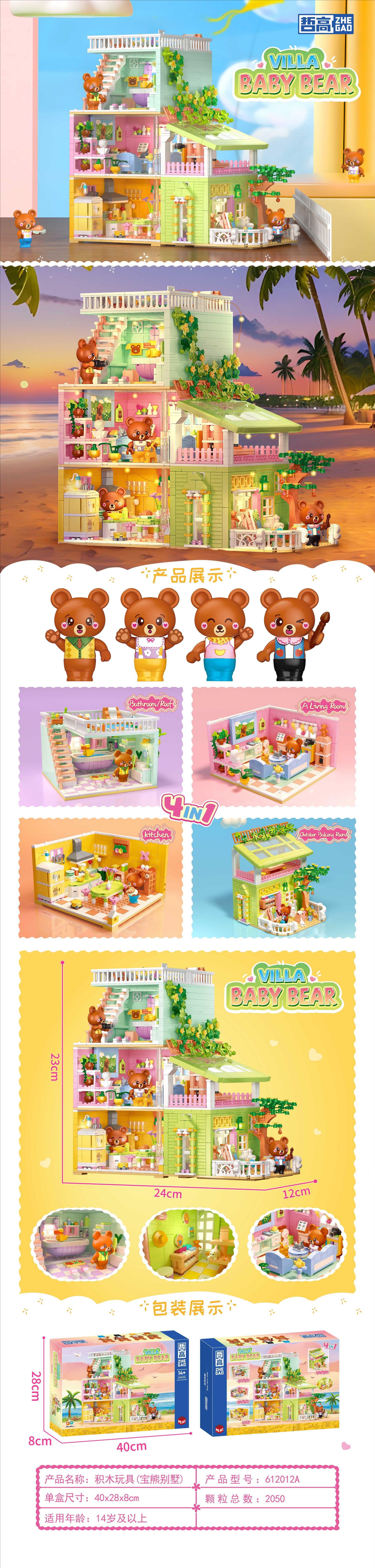 Zhe Gao 612012A 여름 사랑 보물 베어 빌라 창조적 인 4 대 1 모델 장식품 퍼즐 조립 된 빌딩 블록스토어 가기