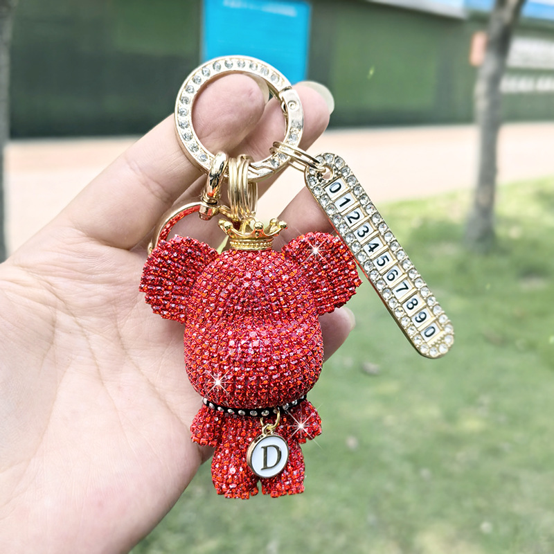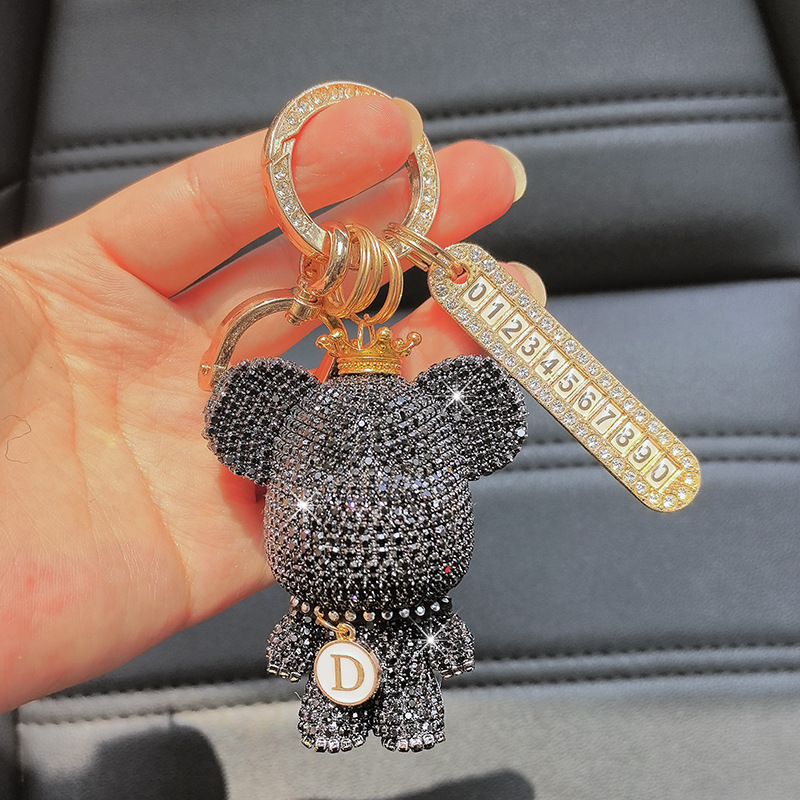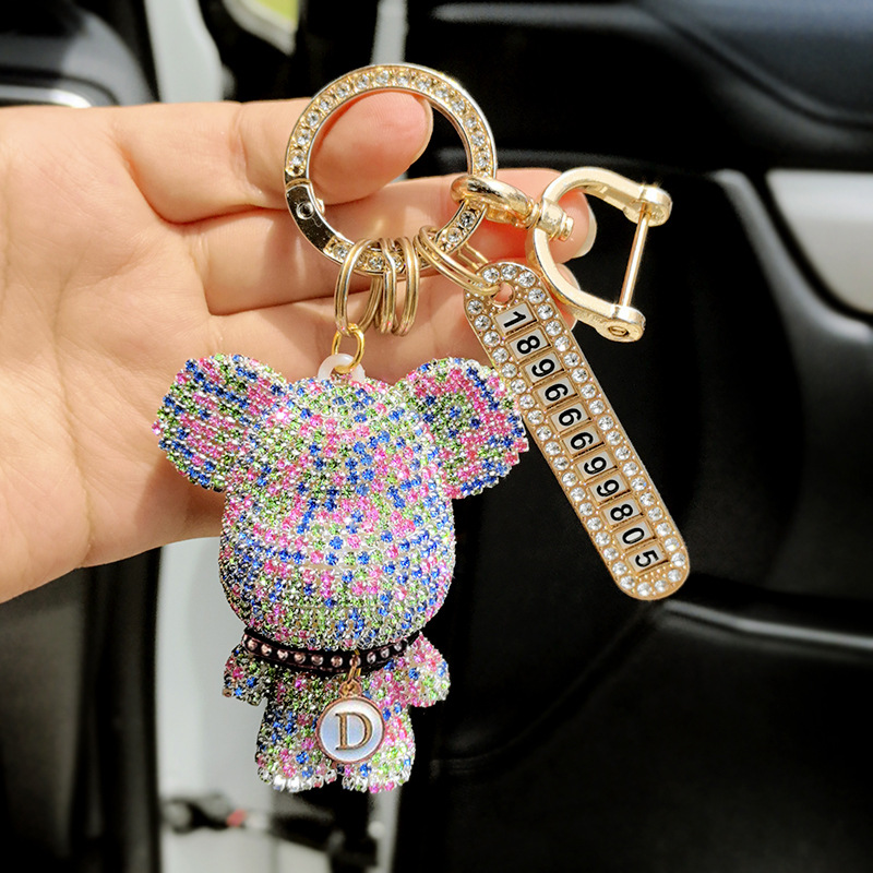 자동차 키 체인 전체 다이아몬드 만화 큰 머리 곰 키 체인 편지 만화 절묘한 소녀 키 펜던트 선물