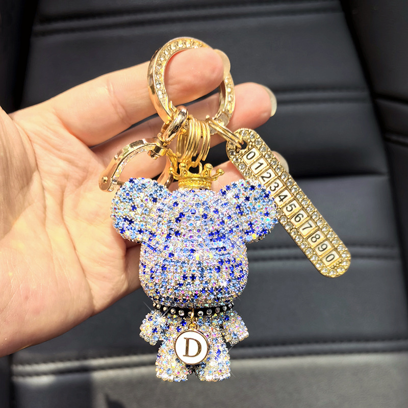 자동차 키 체인 전체 다이아몬드 만화 큰 머리 곰 키 체인 편지 만화 절묘한 소녀 키 펜던트 선물스토어 가기