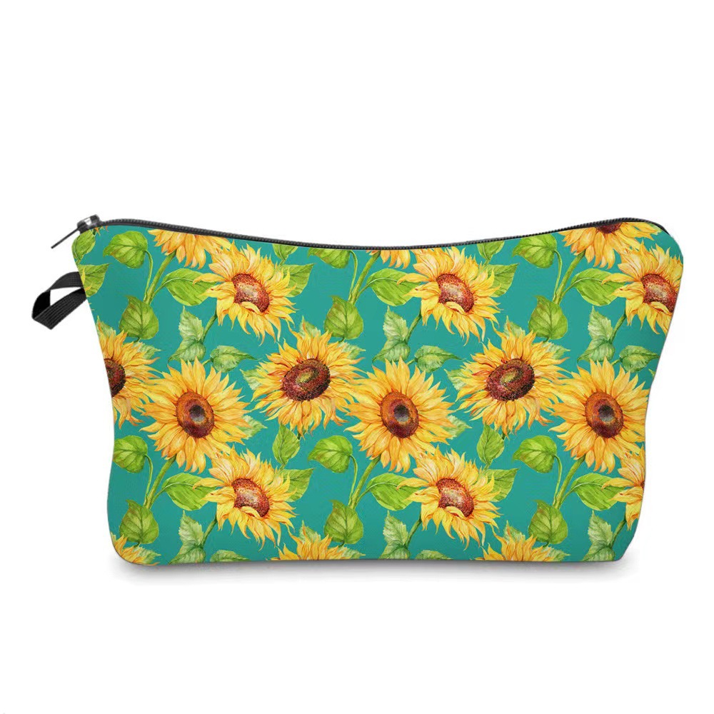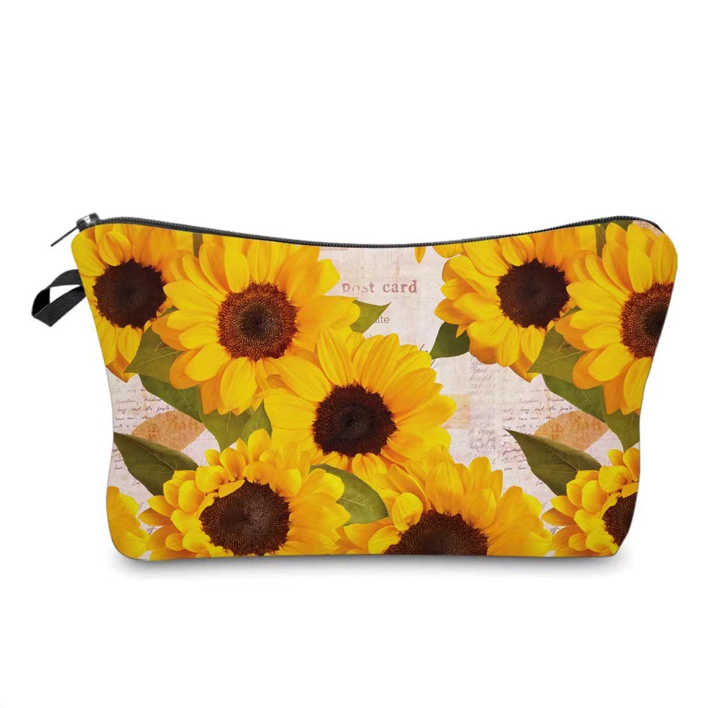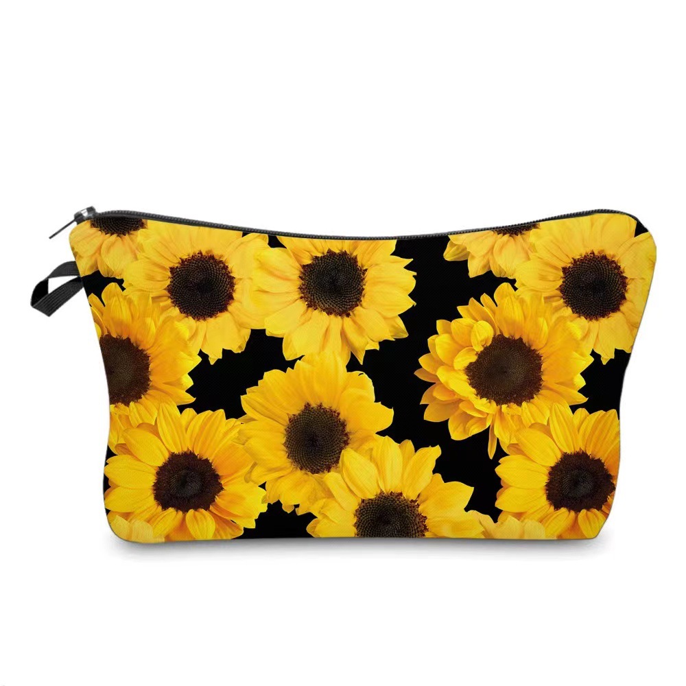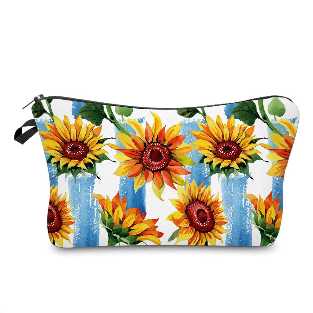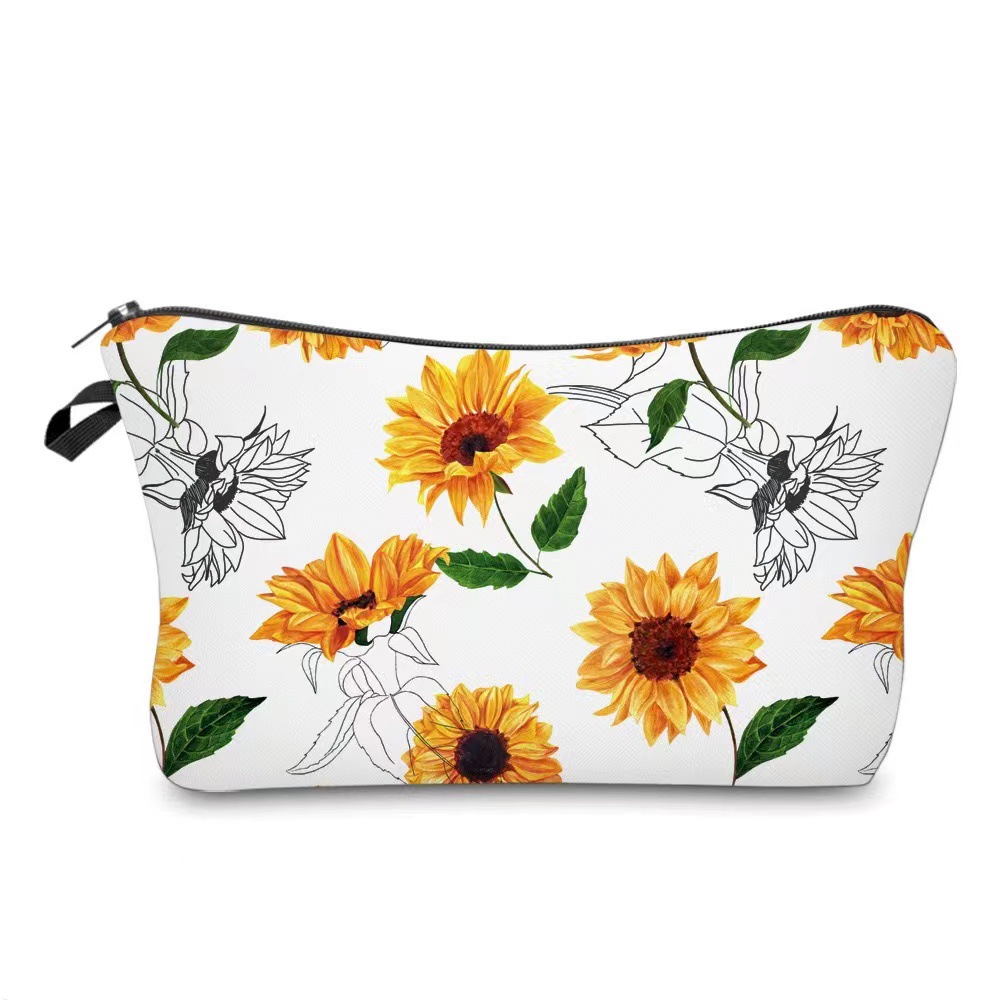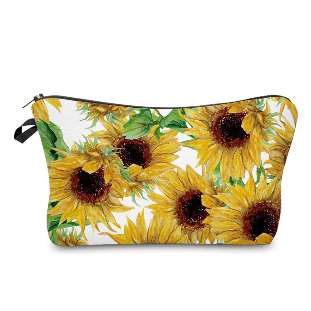 국경 아마존 새로운 인쇄 해바라기 꽃 화장품 가방 여성 휴대용 화장품 가방 저장 가방
