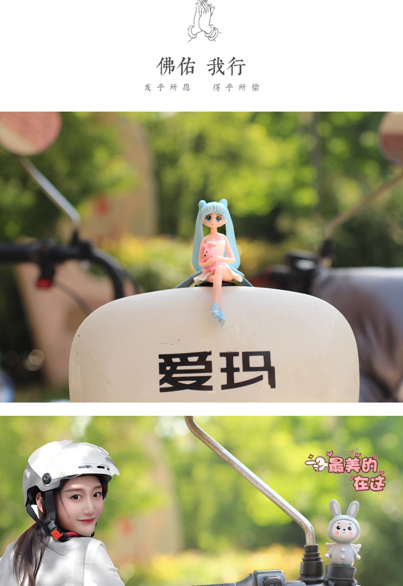 폭발성 귀여운 풍차 자전거 전기 자동차 오토바이 장식 새로운 자동차 장식품 인터넷 유명 인사 만화 동물스토어 가기