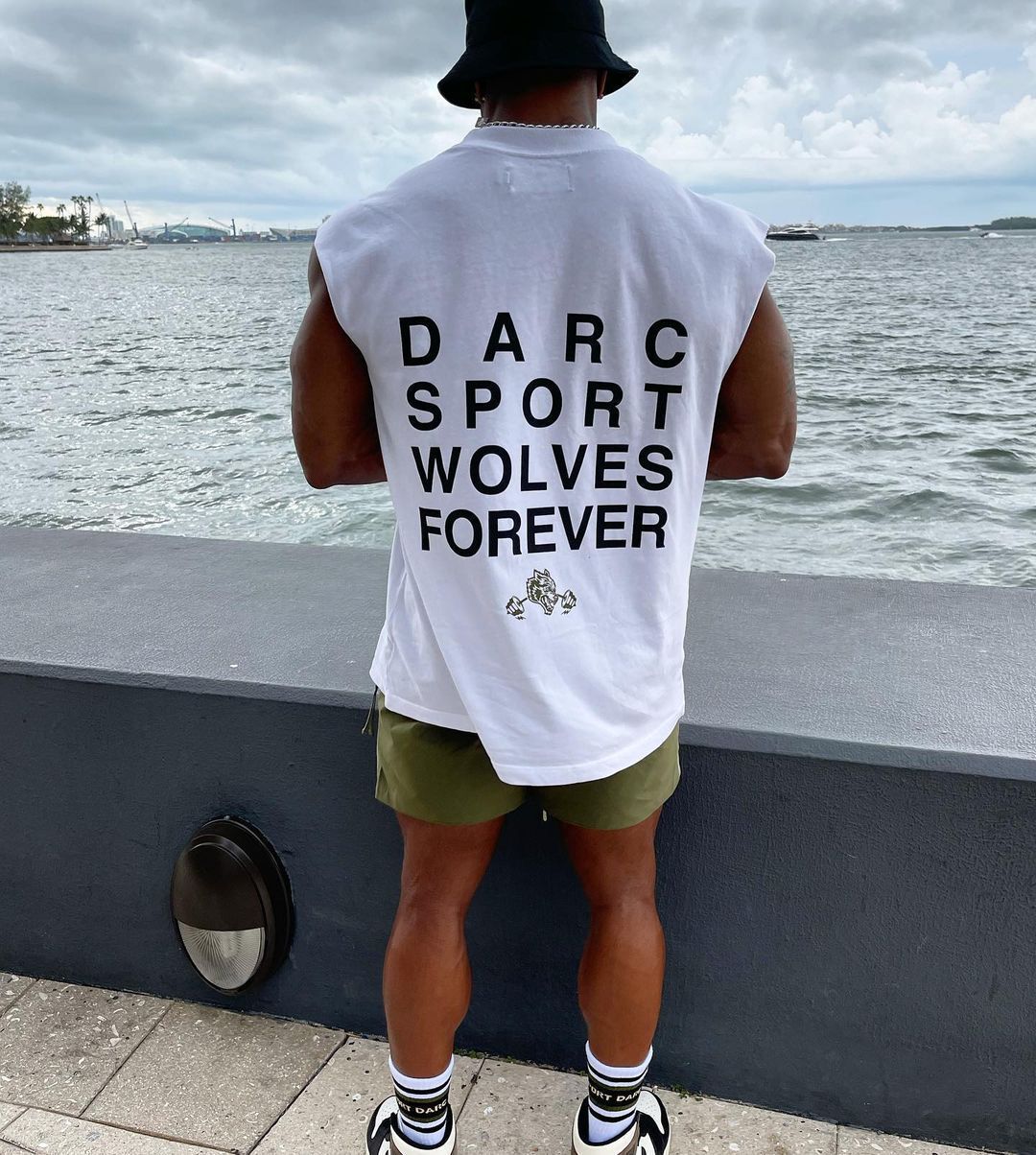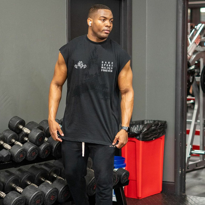 근육 늑대 머리 봄과 여름 형제 피트니스 남자 훈련 롤링 아이언 탑 느슨한 통기성 플러스 사이즈 달리기 민소매 조끼스토어 가기