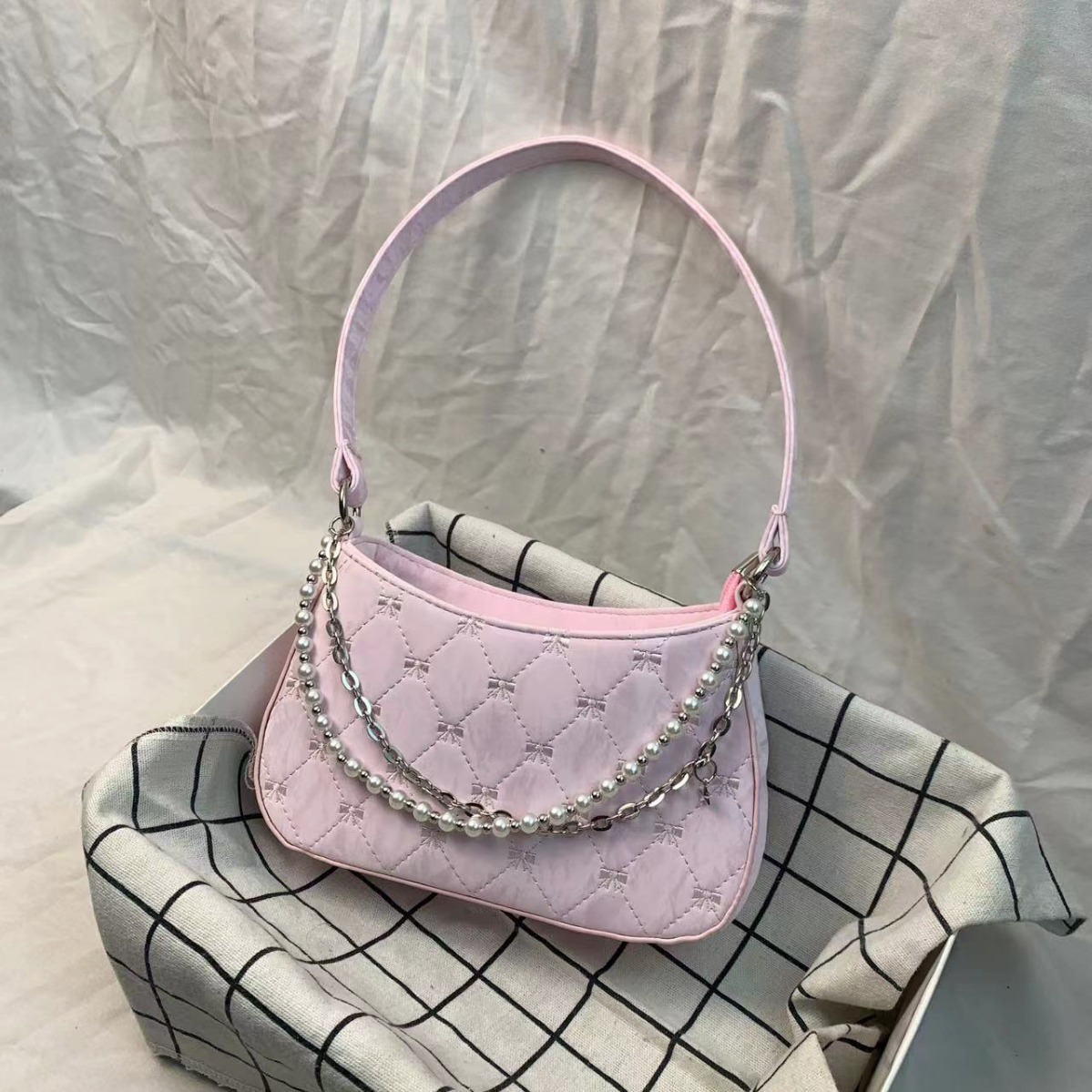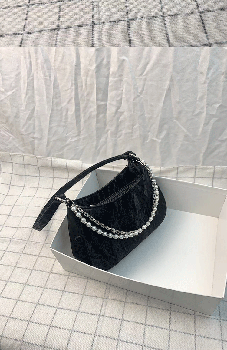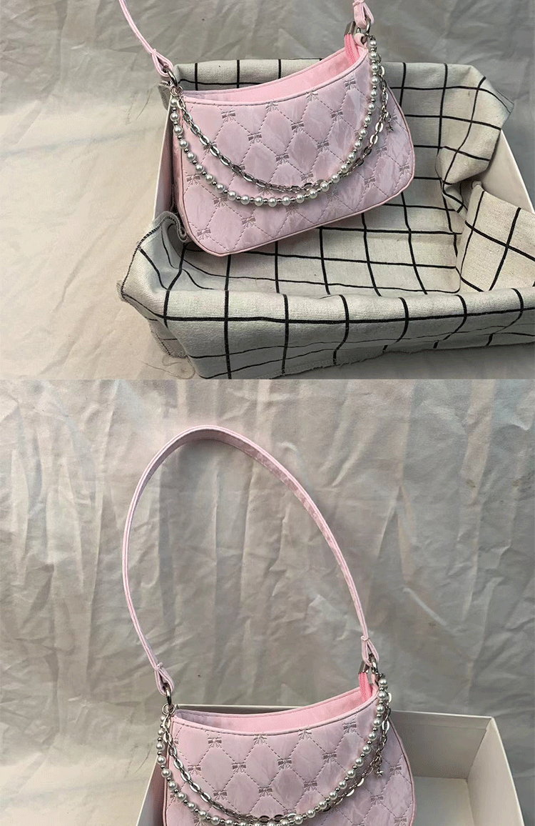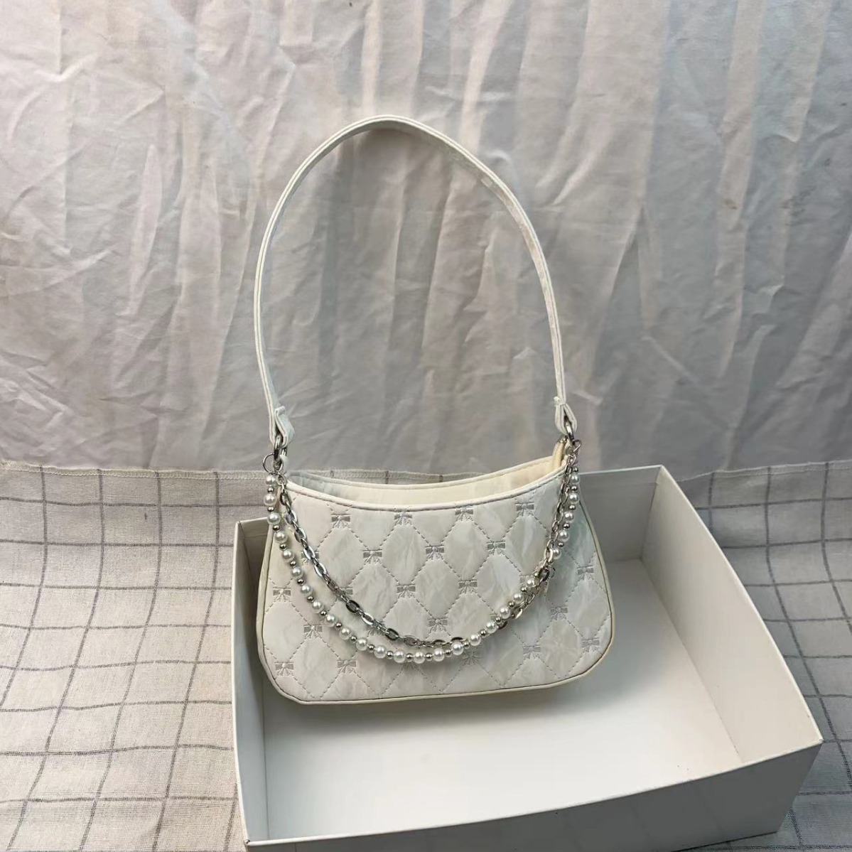 국경 간 폭발성 가방 여성 가방 순수 한국 진주 금속 더블 체인 언더암 가방 통근 여성 가방 숄더 백