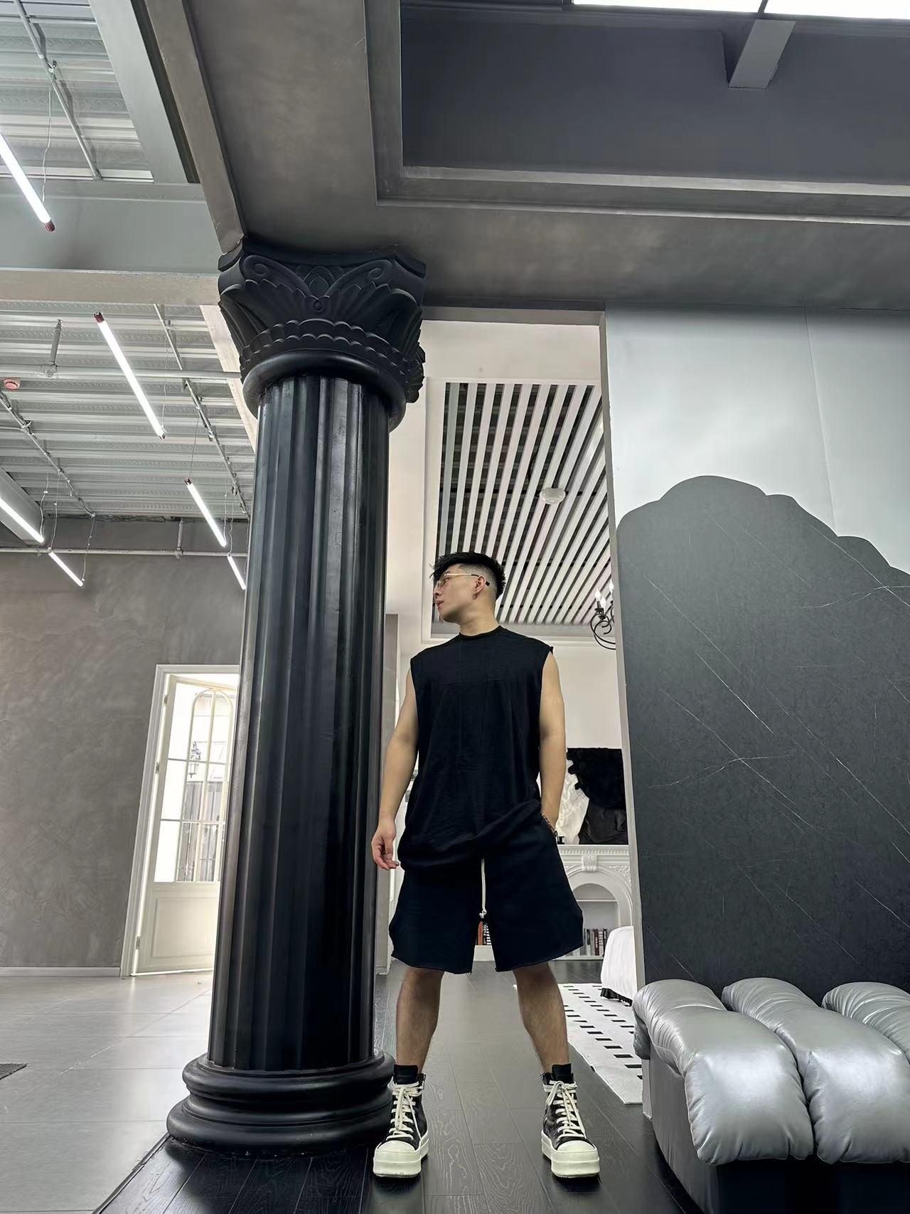SUBHUMAN 남자 2024 여름 통기성 느슨한 재단 다크 스트레이트 반바지 캐주얼 바지 흑백스토어 가기