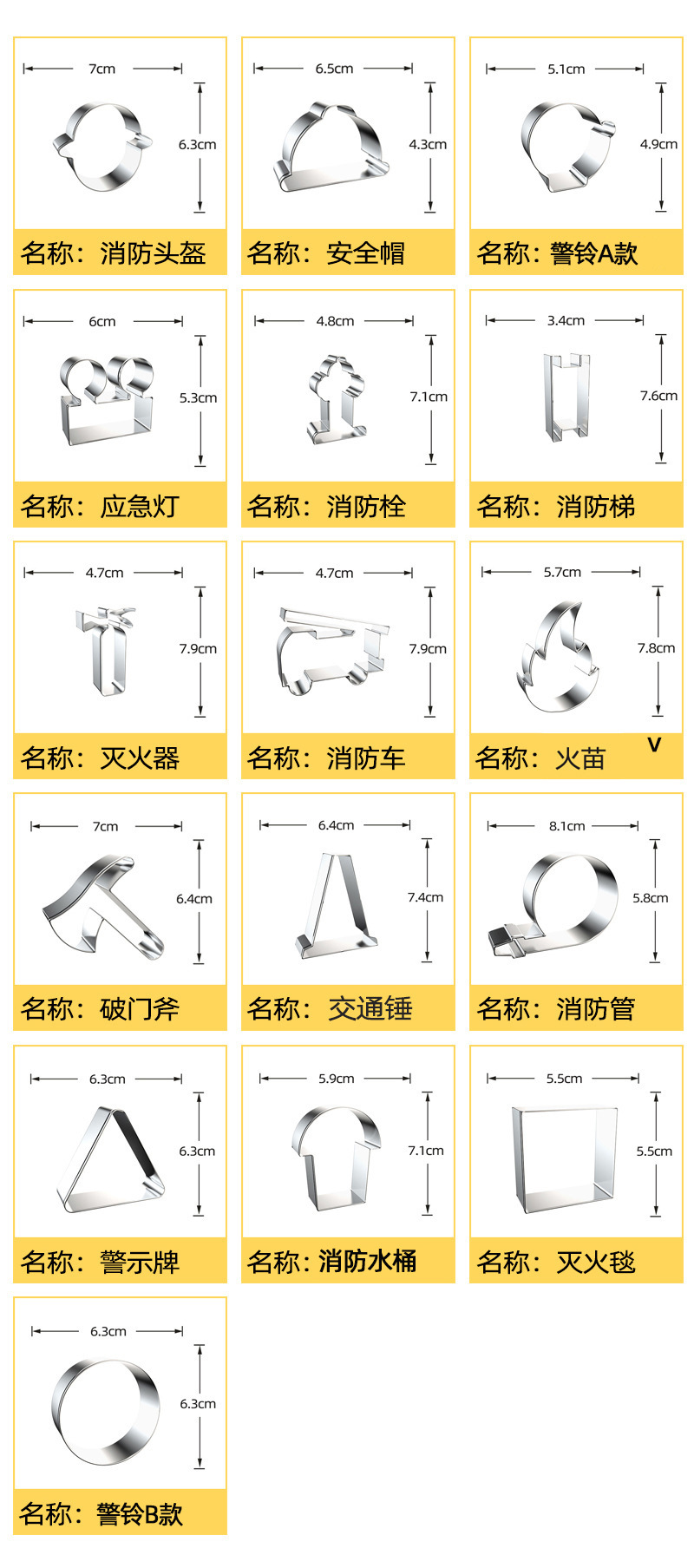국경 간 화재 안전 기기 소방차 스테인레스 스틸 비스킷 금형 세트 설탕 쿠키 금형 diy스토어 가기