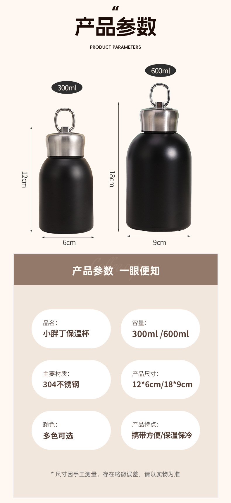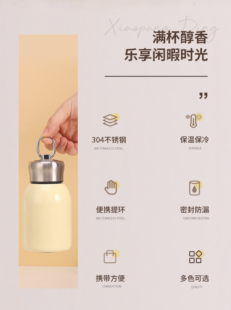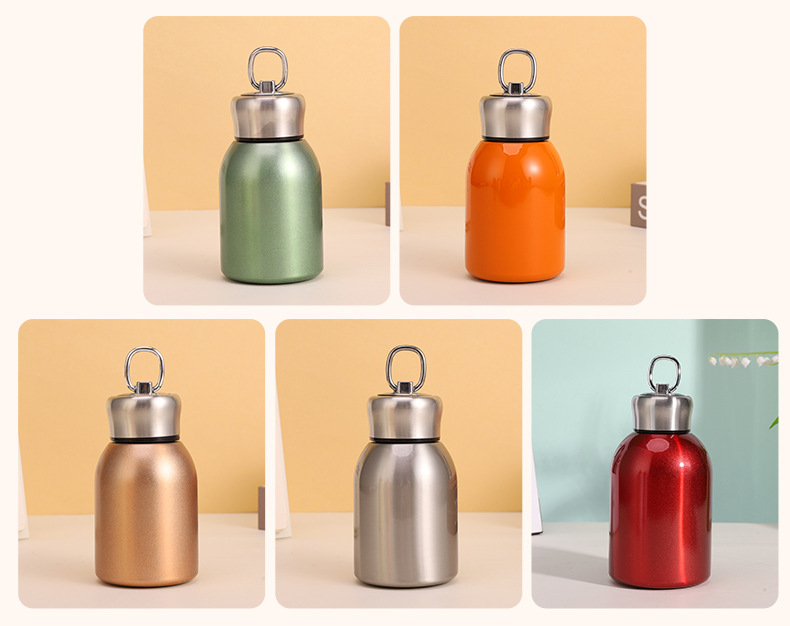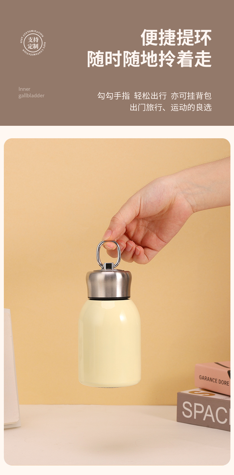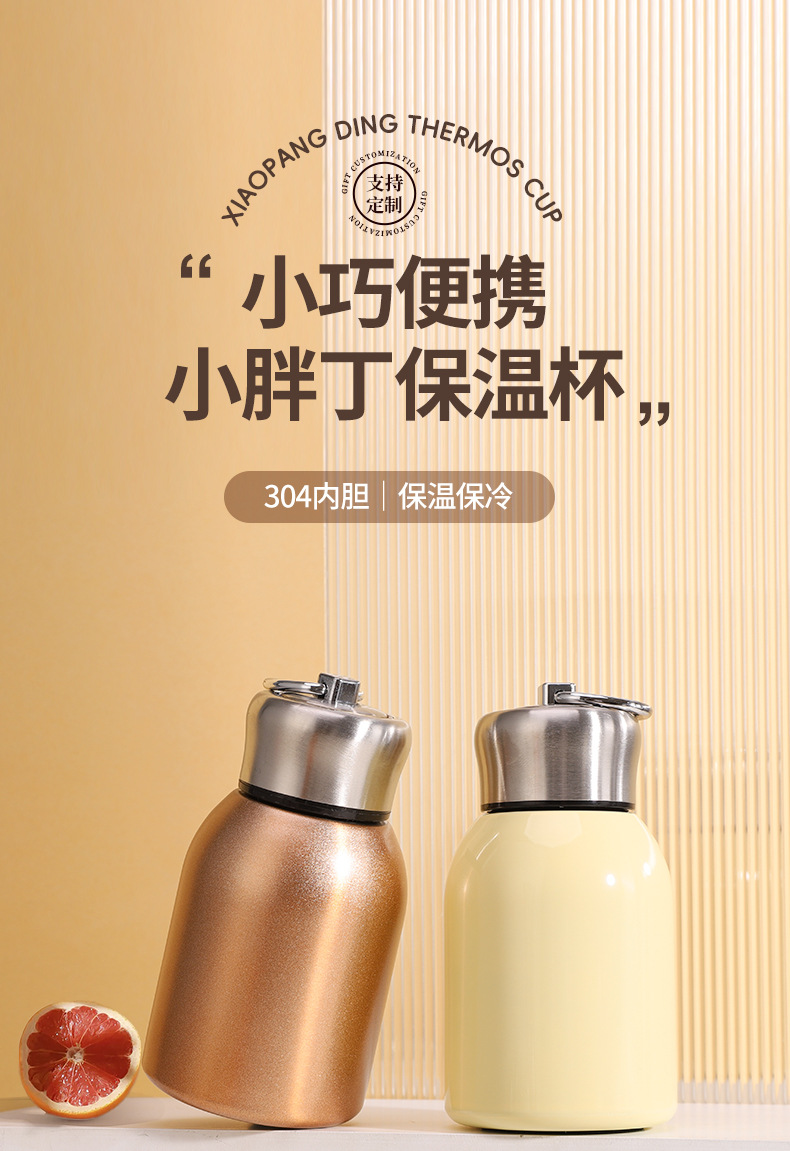 패션 316 스테인레스 스틸 작은 통통한 딩 워터 컵 더블 레이어 진공 스테인레스 스틸 보온병 컵 리프팅 링 포켓 컵 휴대용스토어 가기