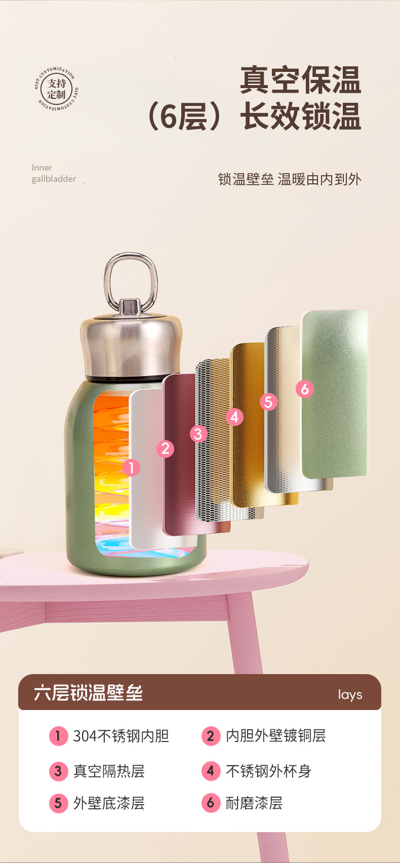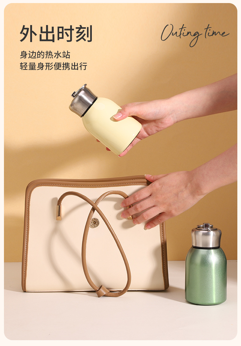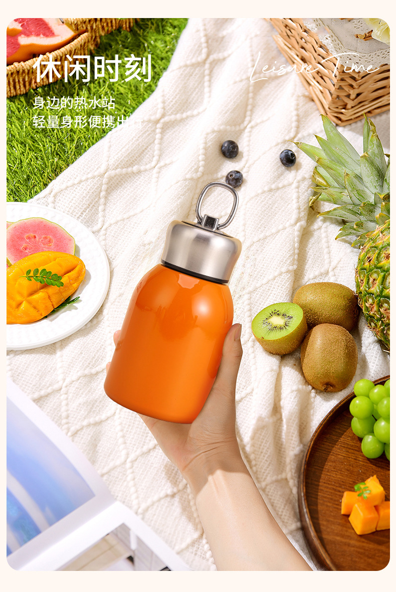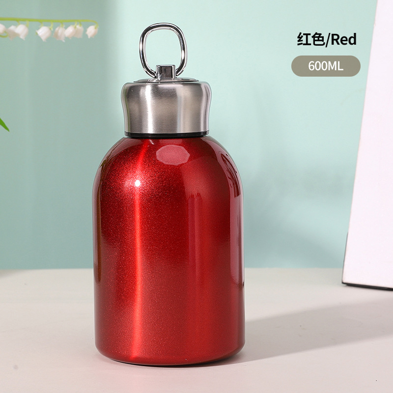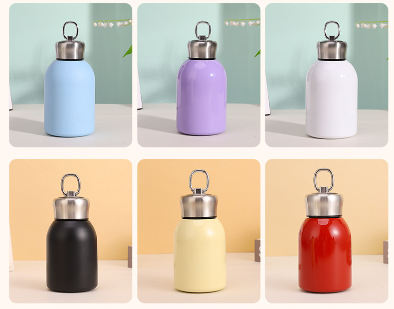 패션 316 스테인레스 스틸 작은 통통한 딩 워터 컵 더블 레이어 진공 스테인레스 스틸 보온병 컵 리프팅 링 포켓 컵 휴대용스토어 가기