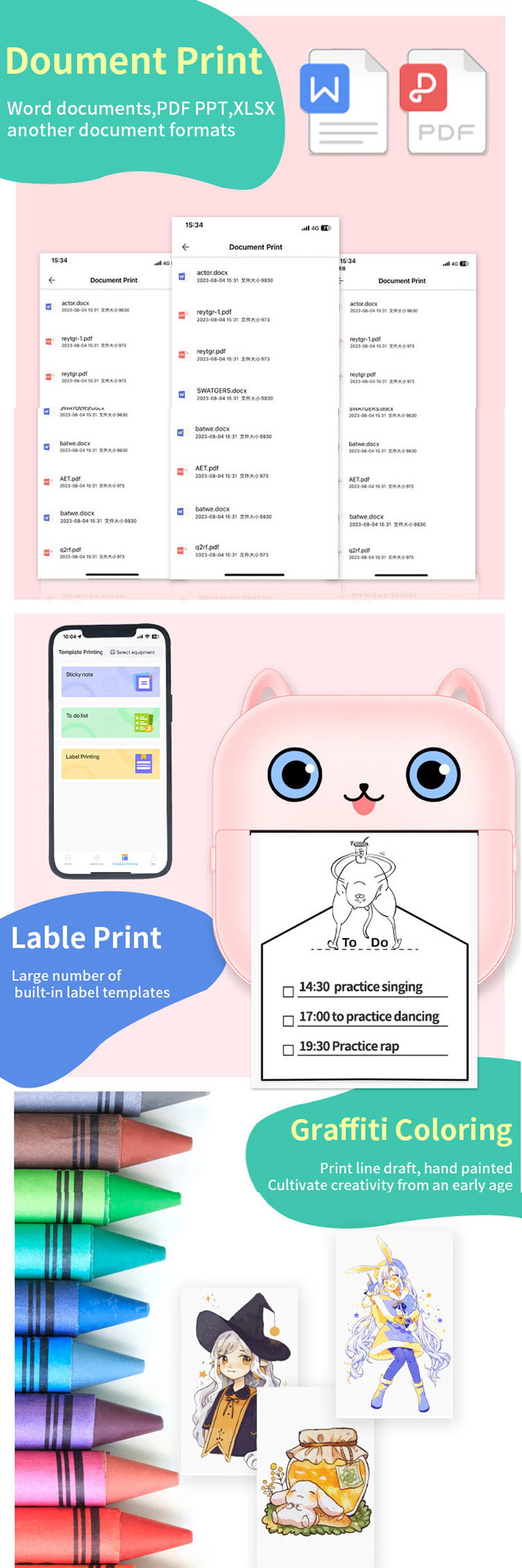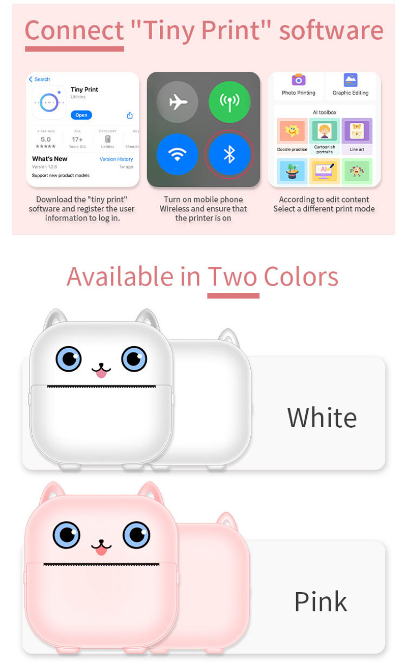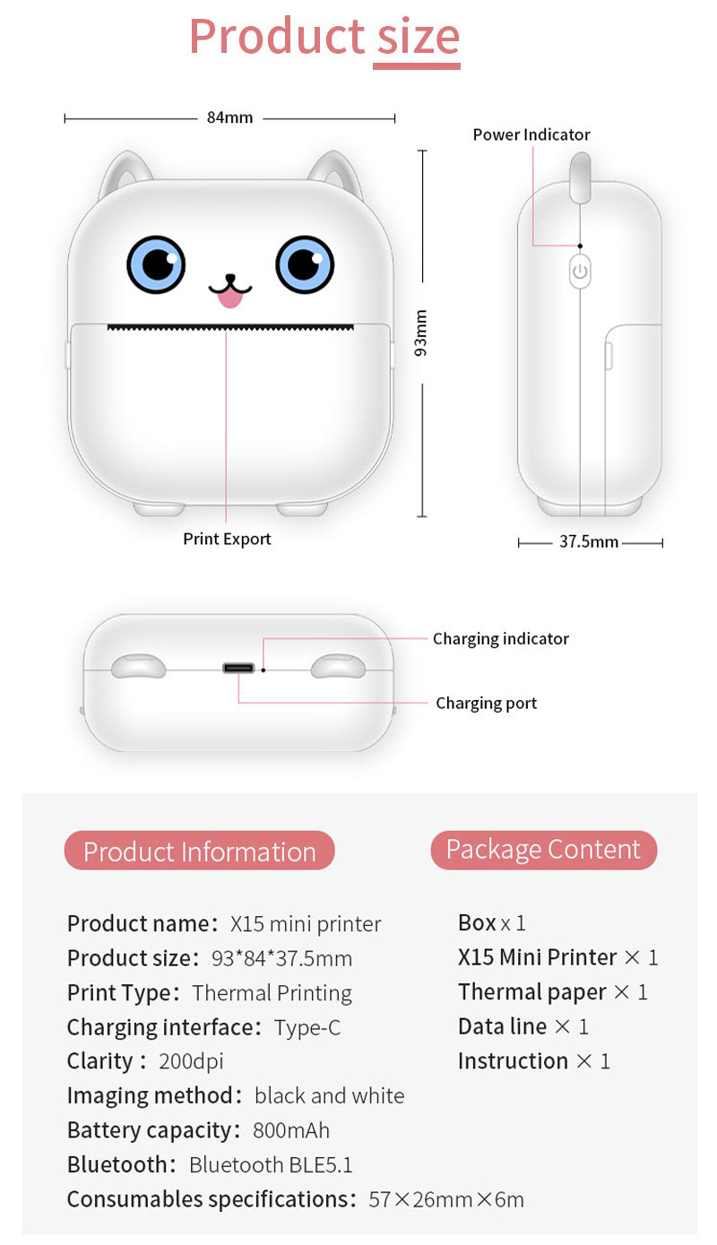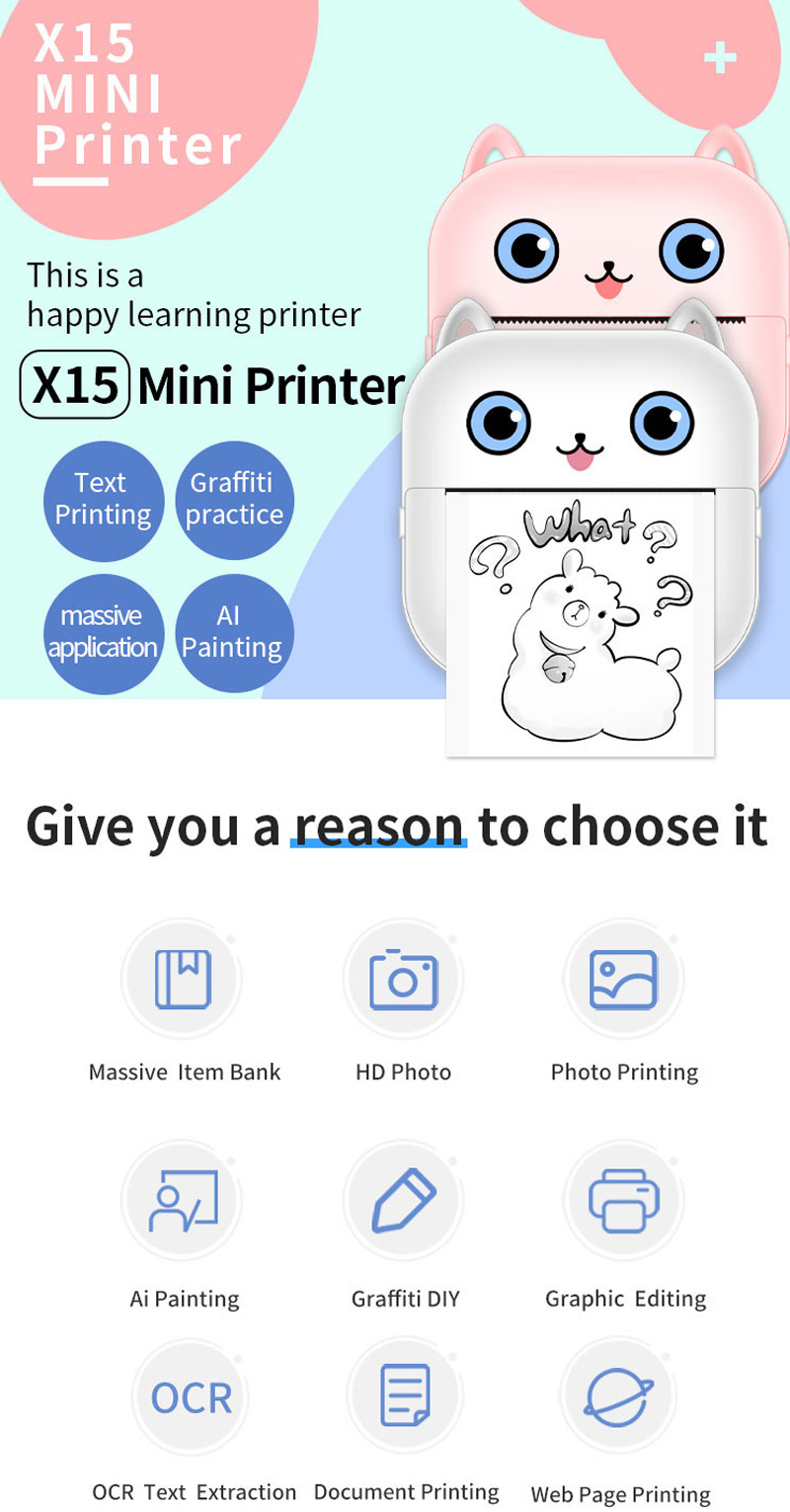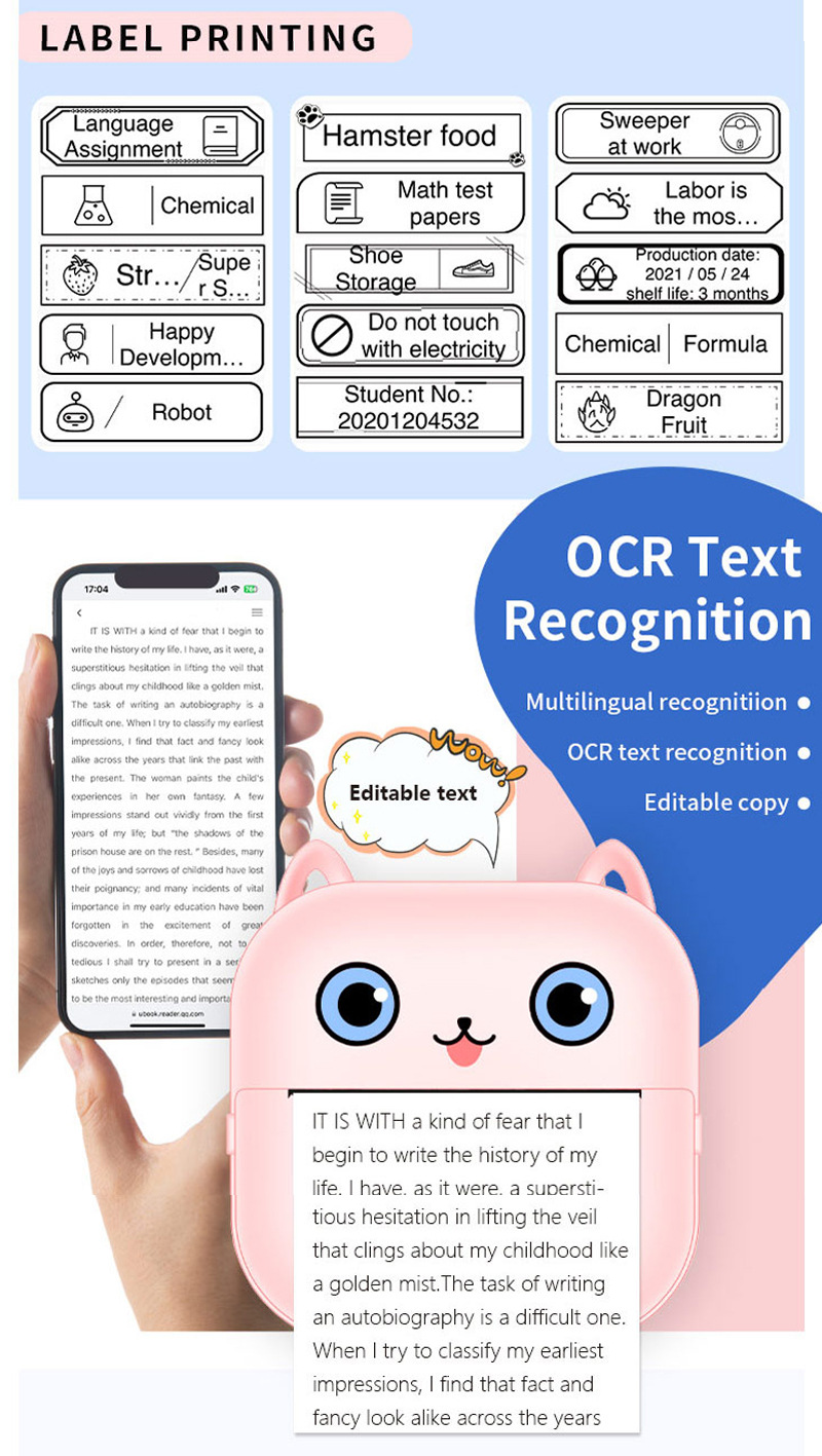크로스 국경 새로운 미니 편리한 포켓 소형 프린터 블루투스 무선 사진 라벨 열 프린터