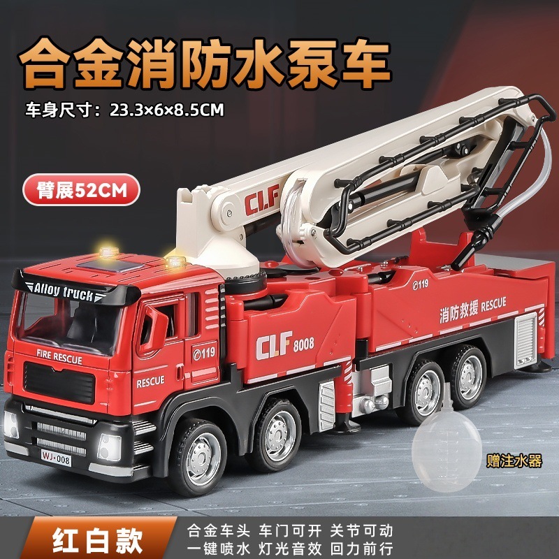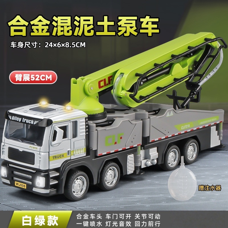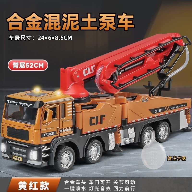 자동차 입방 콘크리트 시멘트 펌프 트럭 소방수 펌프 트럭 합금 엔지니어링 자동차 모델 물 스프레이 장난감 자동차스토어 가기
