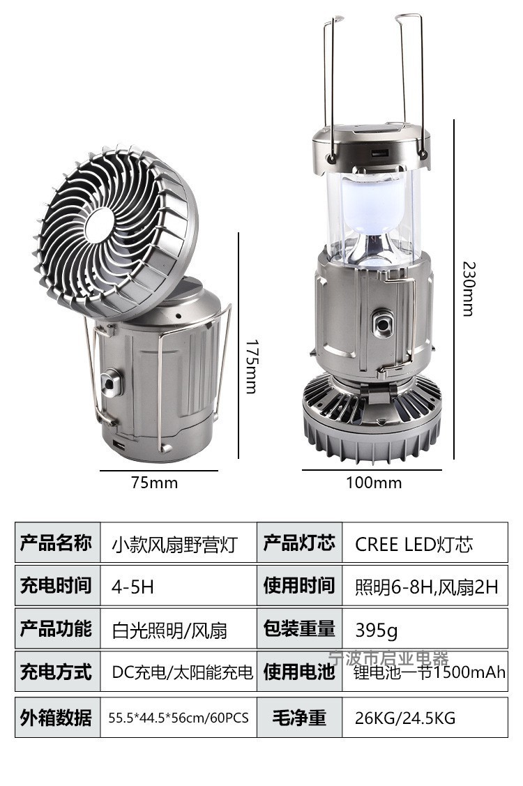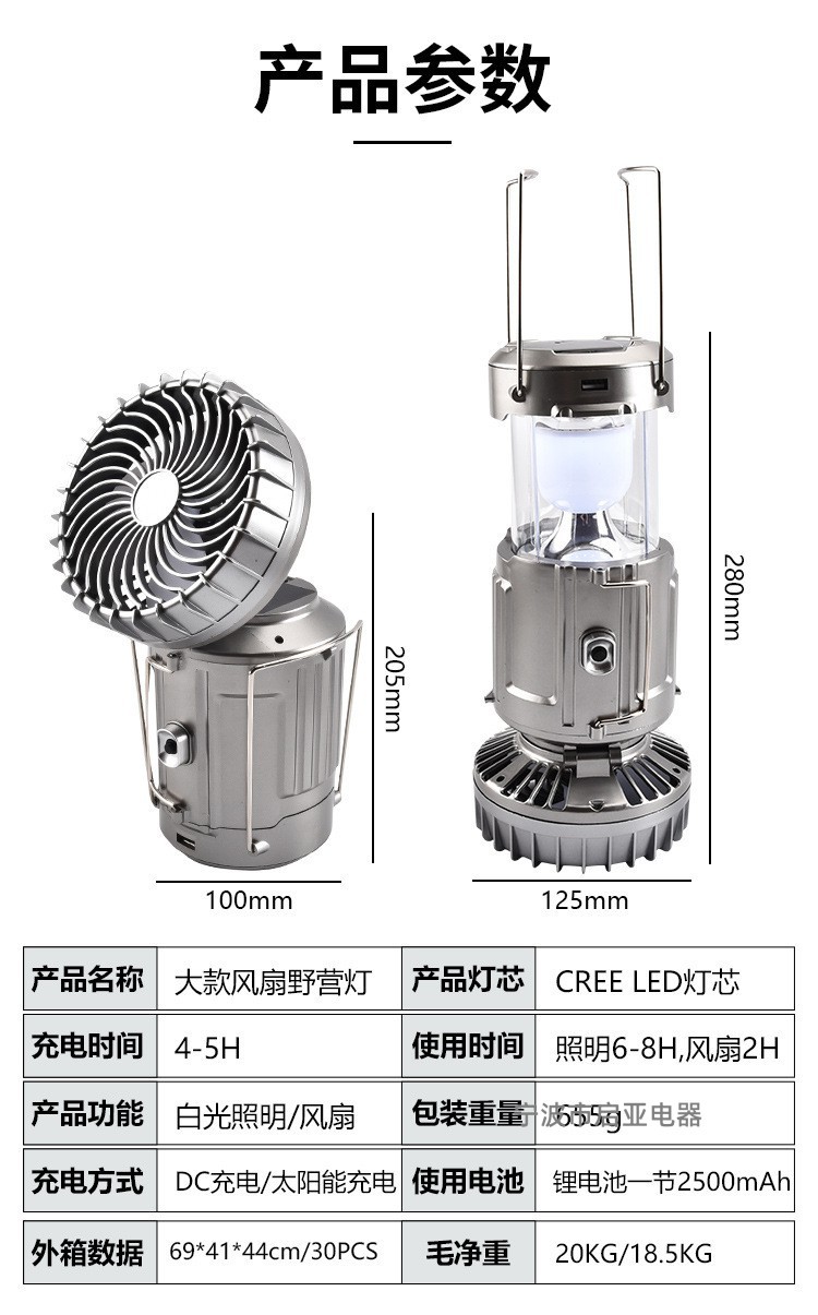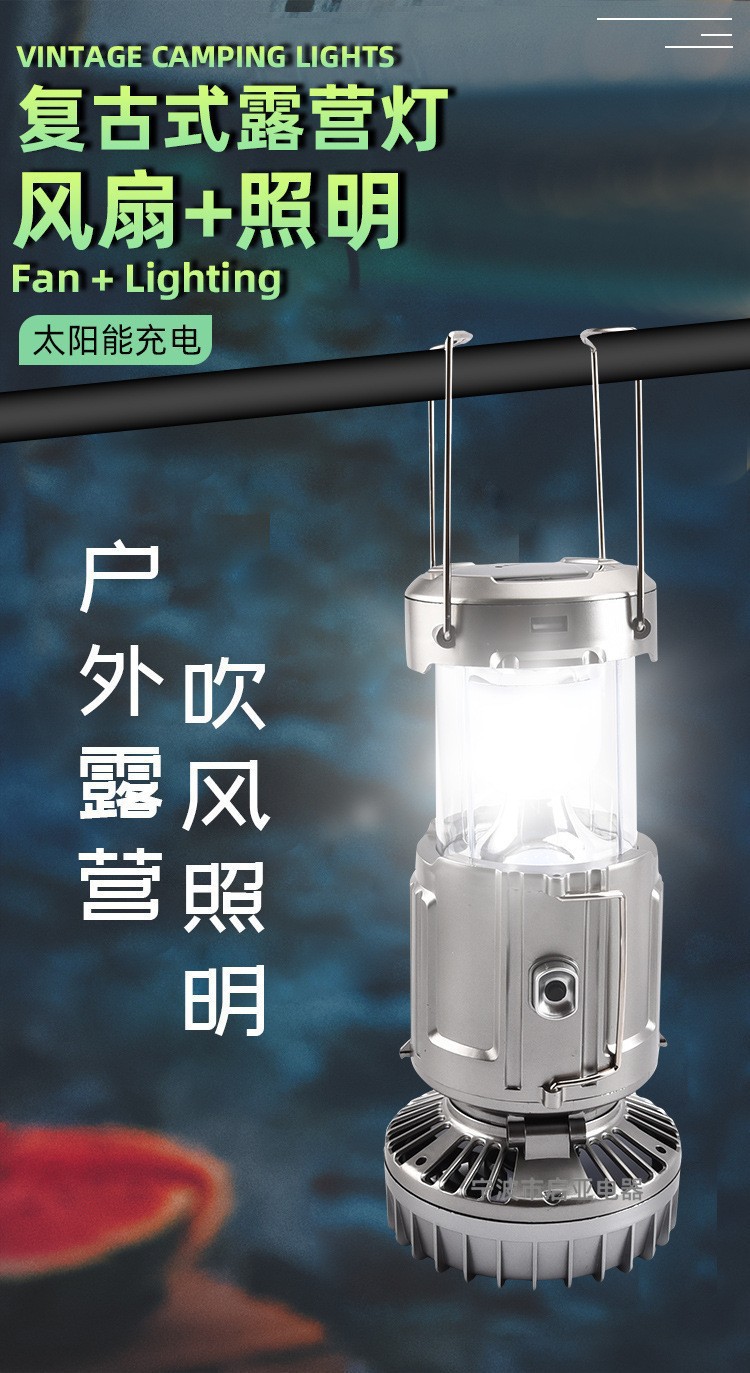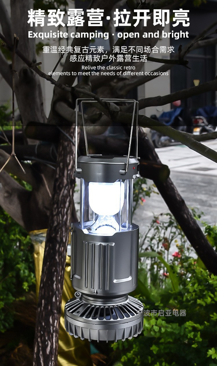야외 태양 전기 팬 말 램프 텐트 휴대용 충전식 가정용 야외 탐조등 다기능 캠핑 조명