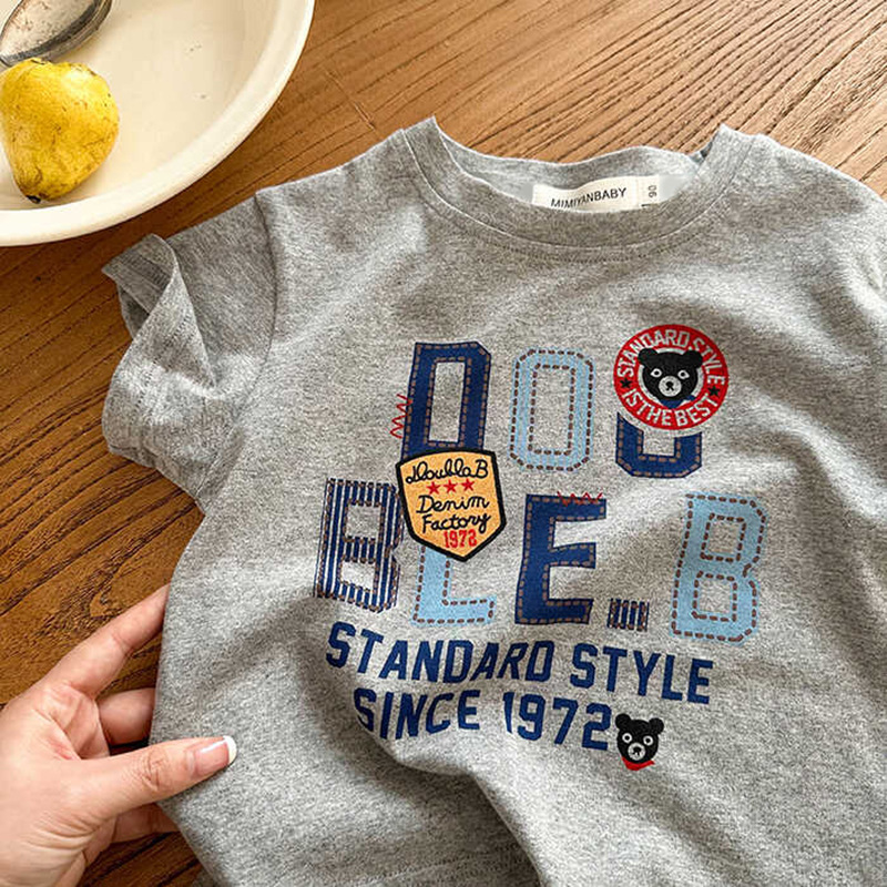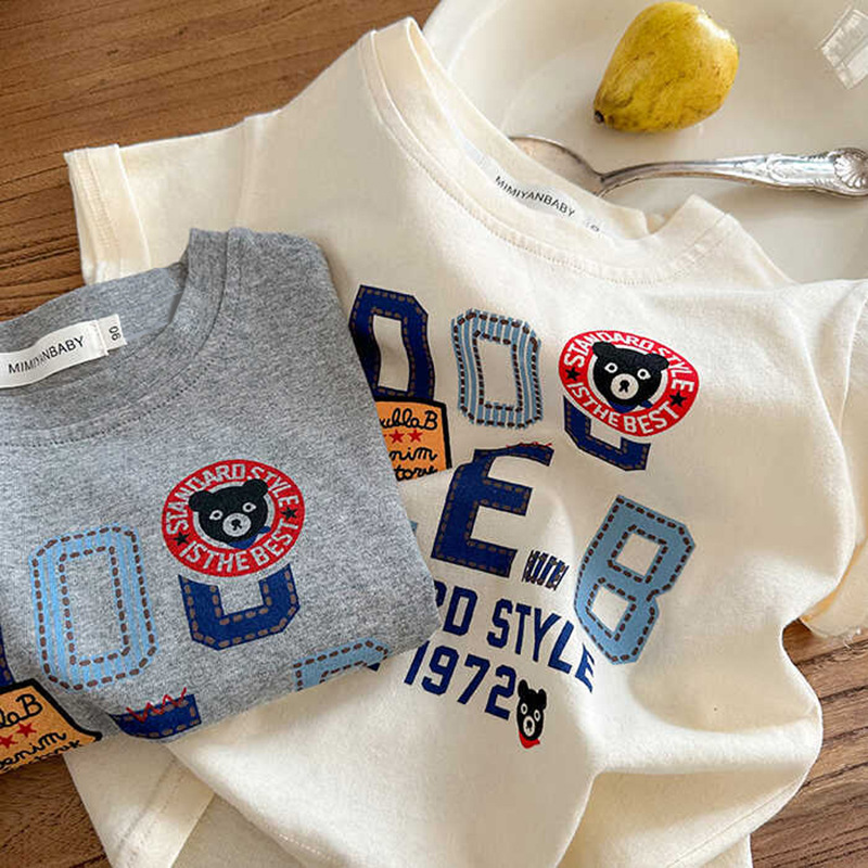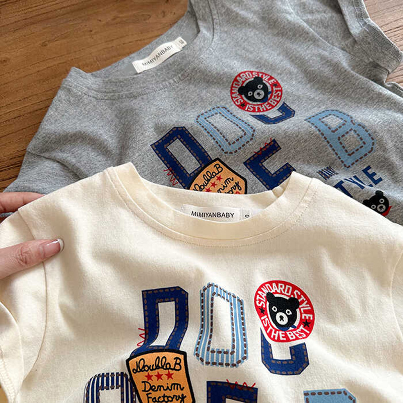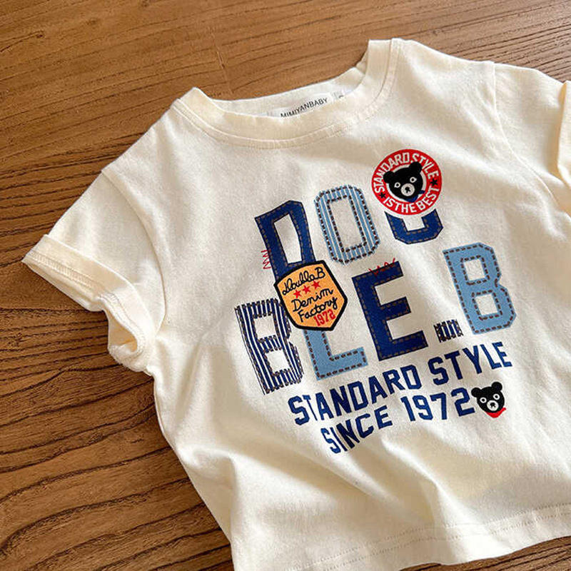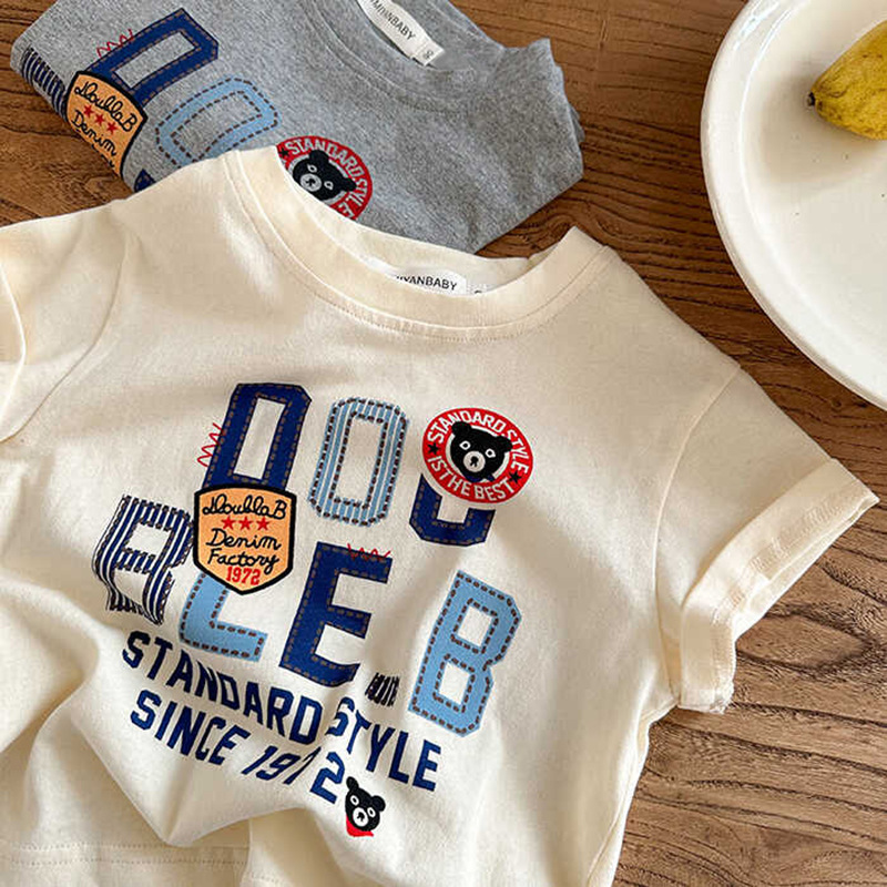 도매면 어린이 편지 인쇄 반팔 티셔츠 소년 여름 둥근 목 상단 아기 반소매 여름 아동복스토어 가기