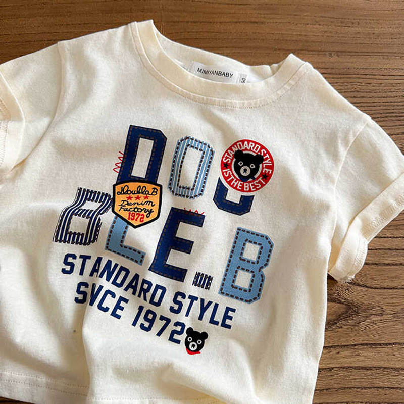 도매면 어린이 편지 인쇄 반팔 티셔츠 소년 여름 둥근 목 상단 아기 반소매 여름 아동복