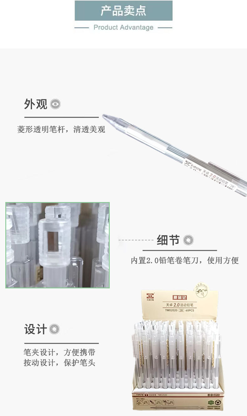 Tianzhuo 02020 원래 액티브 연필 굵은 학생들은 2.0 기계 연필로 2B 연필을 그립니다스토어 가기