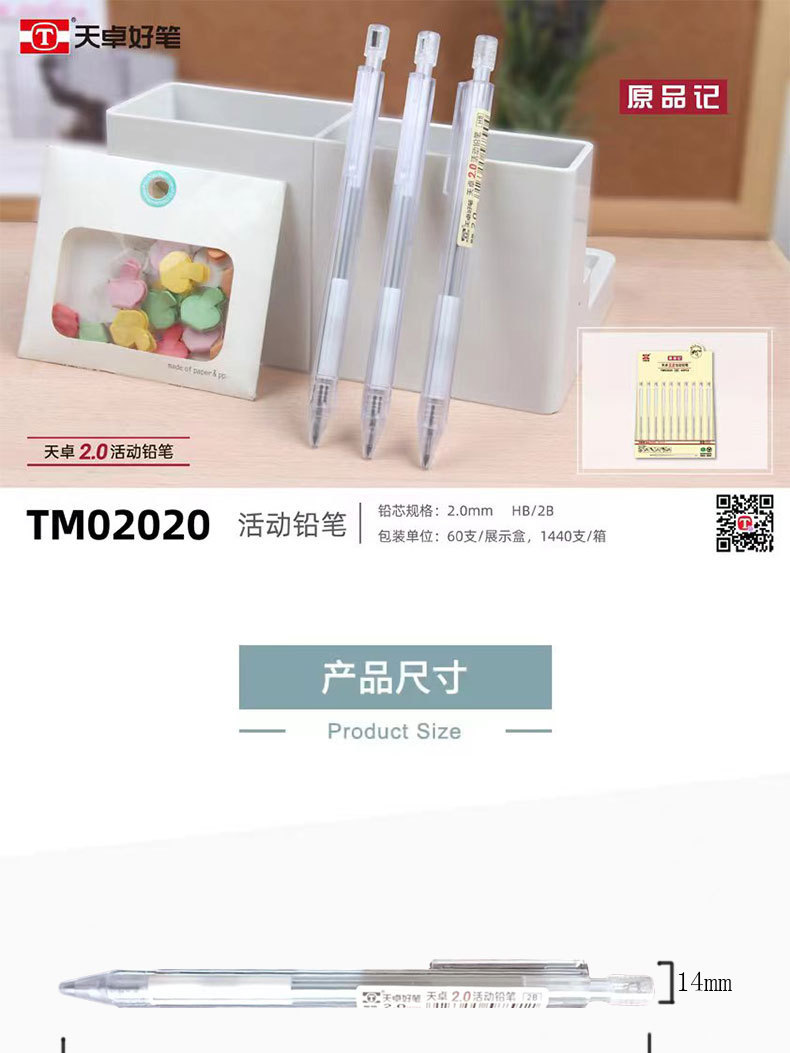 Tianzhuo 02020 원래 액티브 연필 굵은 학생들은 2.0 기계 연필로 2B 연필을 그립니다