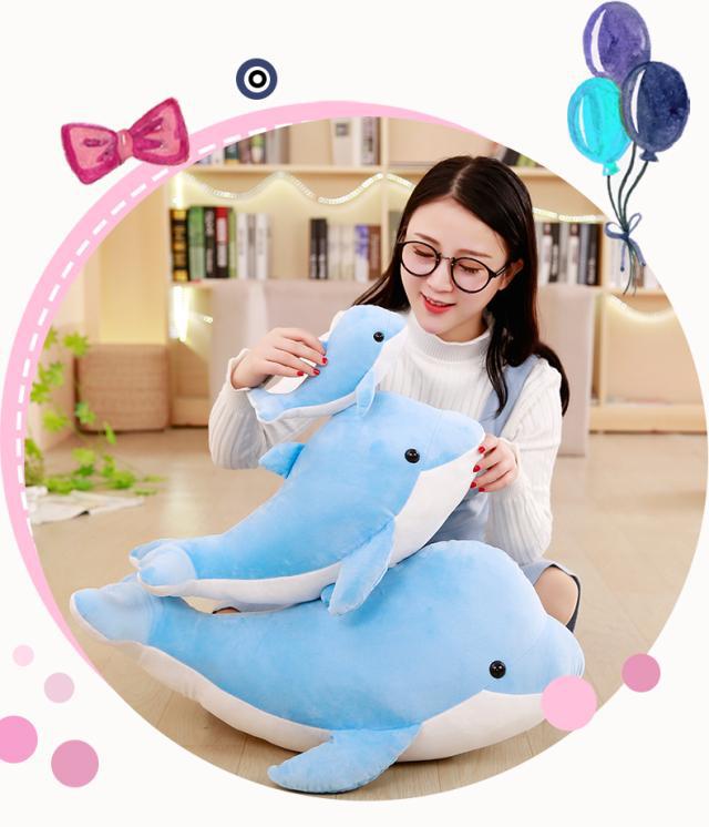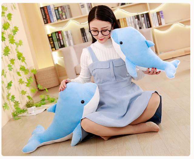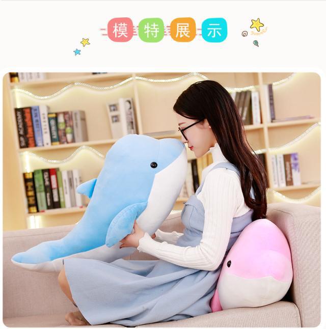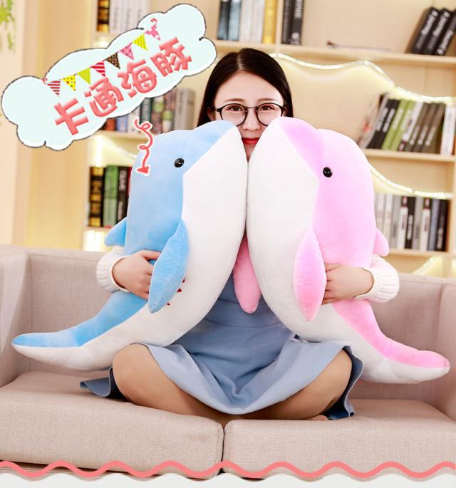 만화 돌고래 봉제 인형 고래 인형 큰 물고기 베개 상어 허리 베개 인형 어린이 장난감 소녀 선물스토어 가기