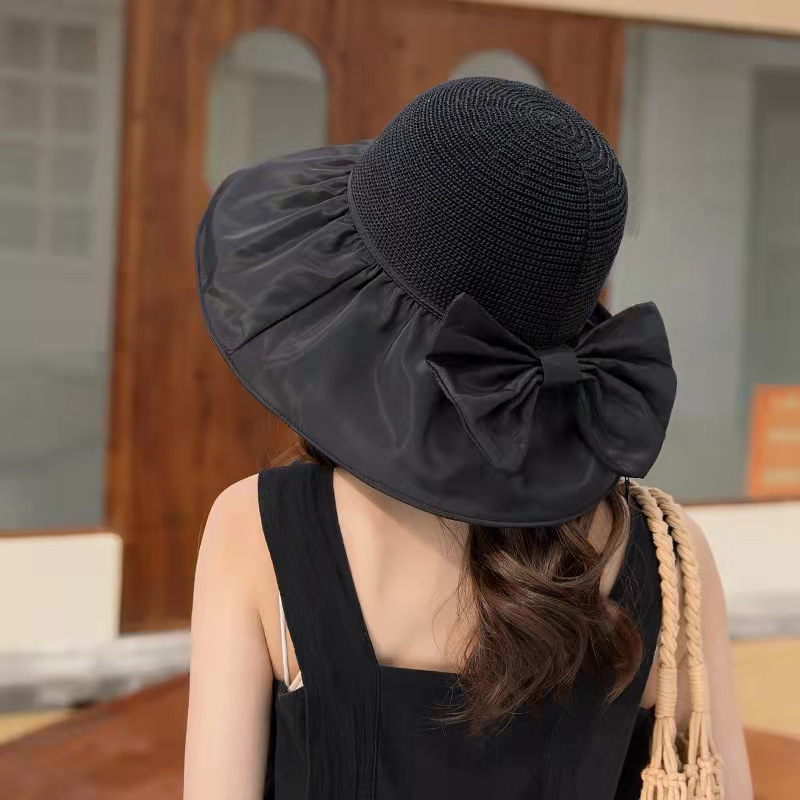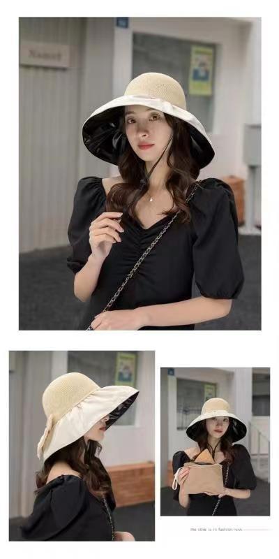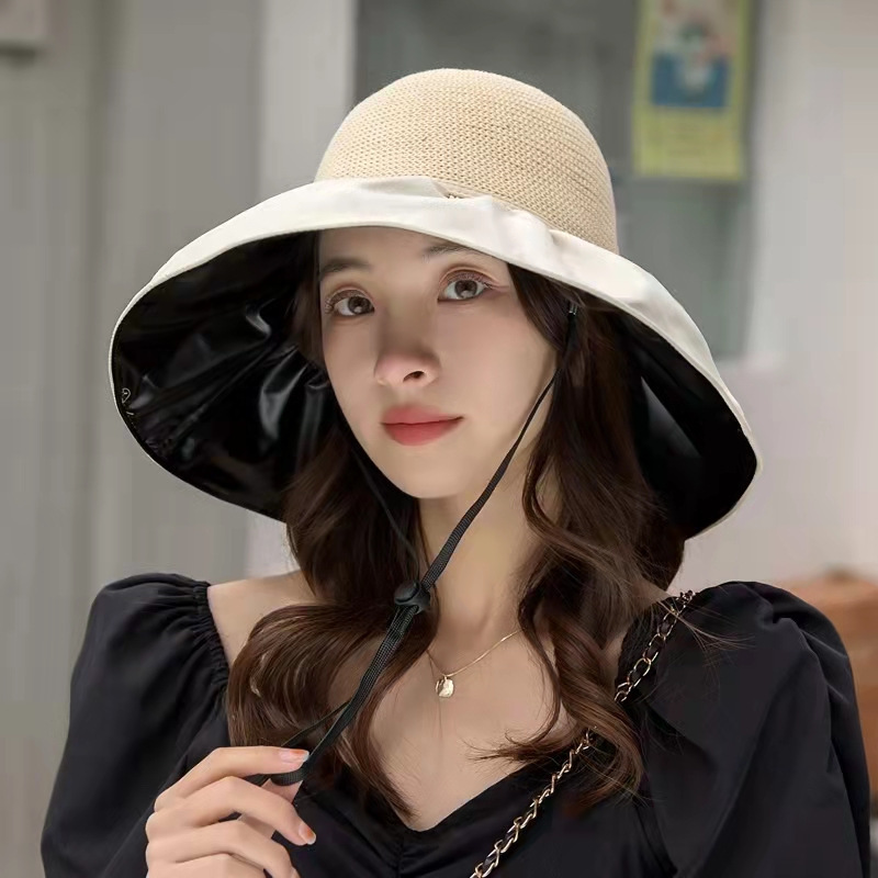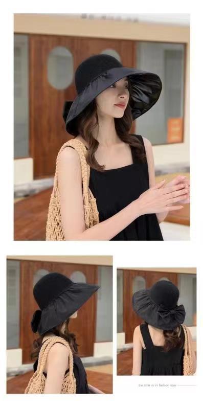 선스크린 모자 여성의 안티-UV 태양 모자 접이식 저장 블랙 고무 어부 모자 얼굴 덮힌 빅 브림 햇살