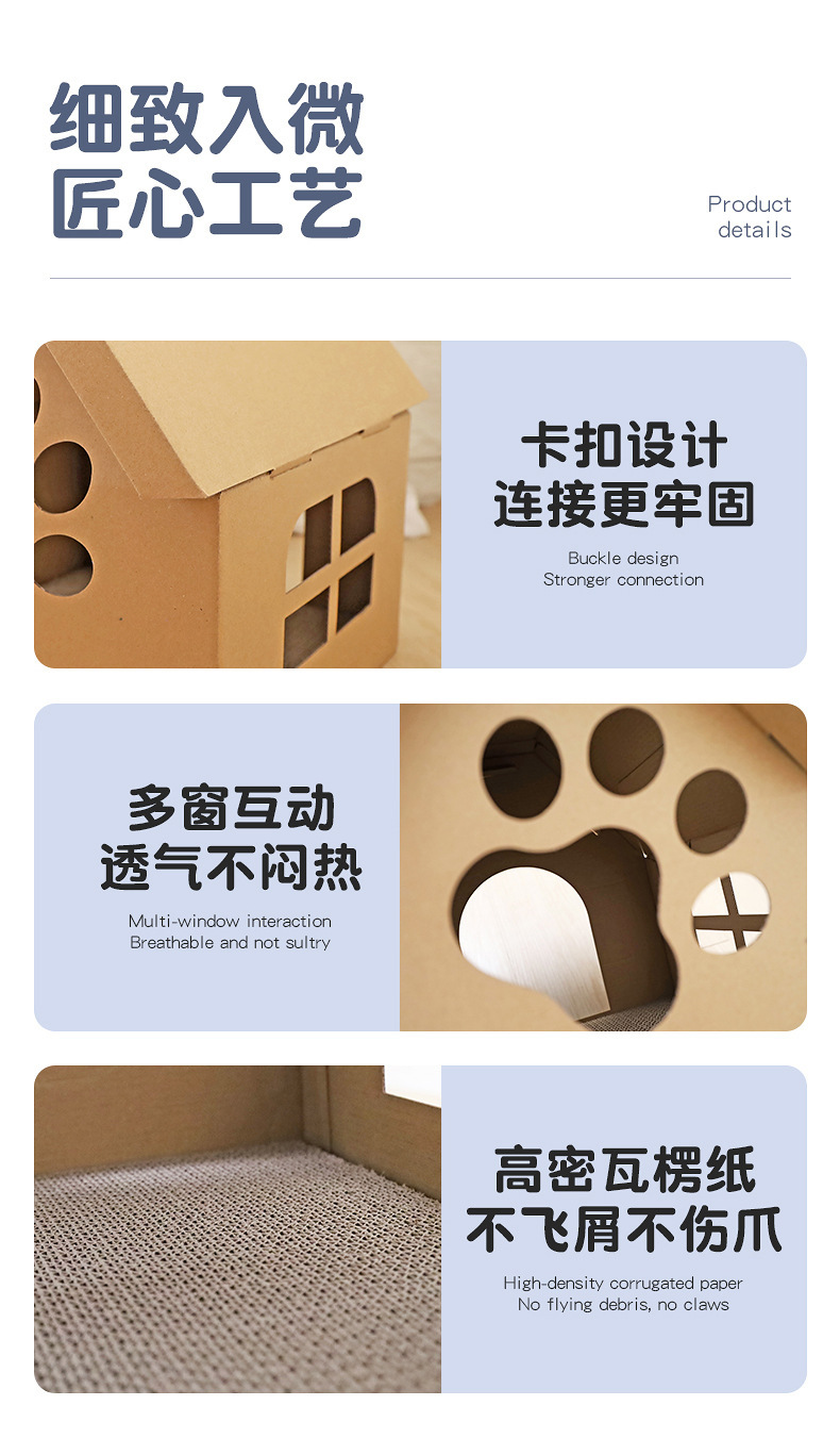 맞춤형 애완 동물 고양이 장난감 골판지 통합 고양이 발톱 연삭 고양이 스크래치 보드 고양이 둥지 내마모성 및 따뜻한 용품 도매스토어 가기