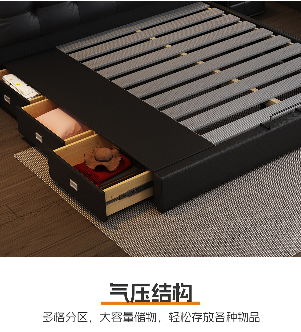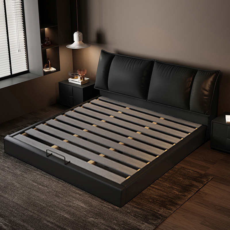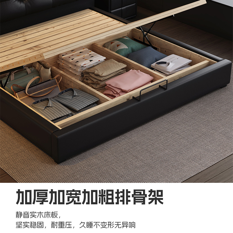 이탈리아 미니멀리스트 가죽 침대 더블 1.8m 다기능 인터넷 인기있는 스토리지 소프트 가방 침대 마스터 침실 가죽 웨딩 침대 조명 럭셔리스토어 가기