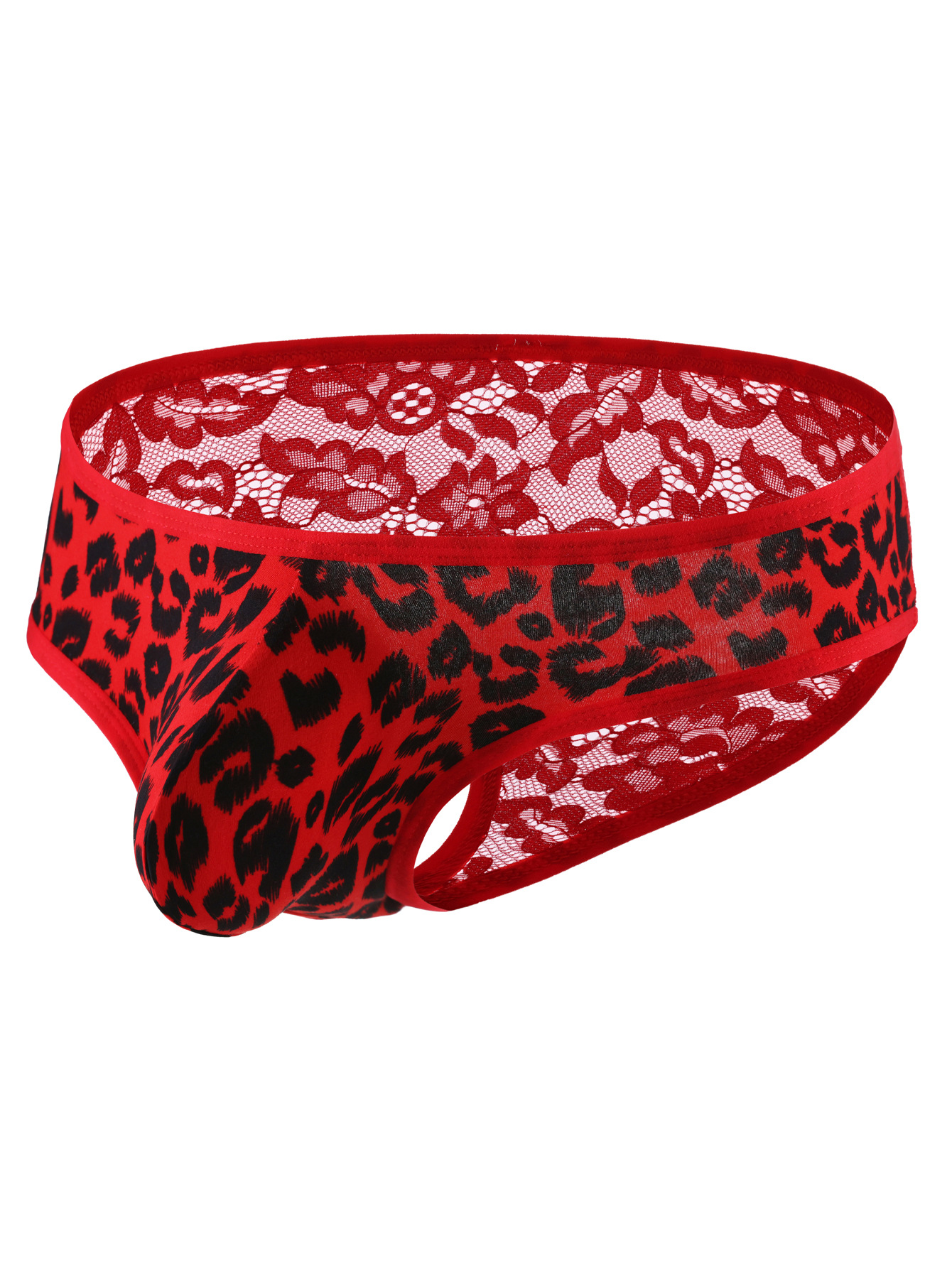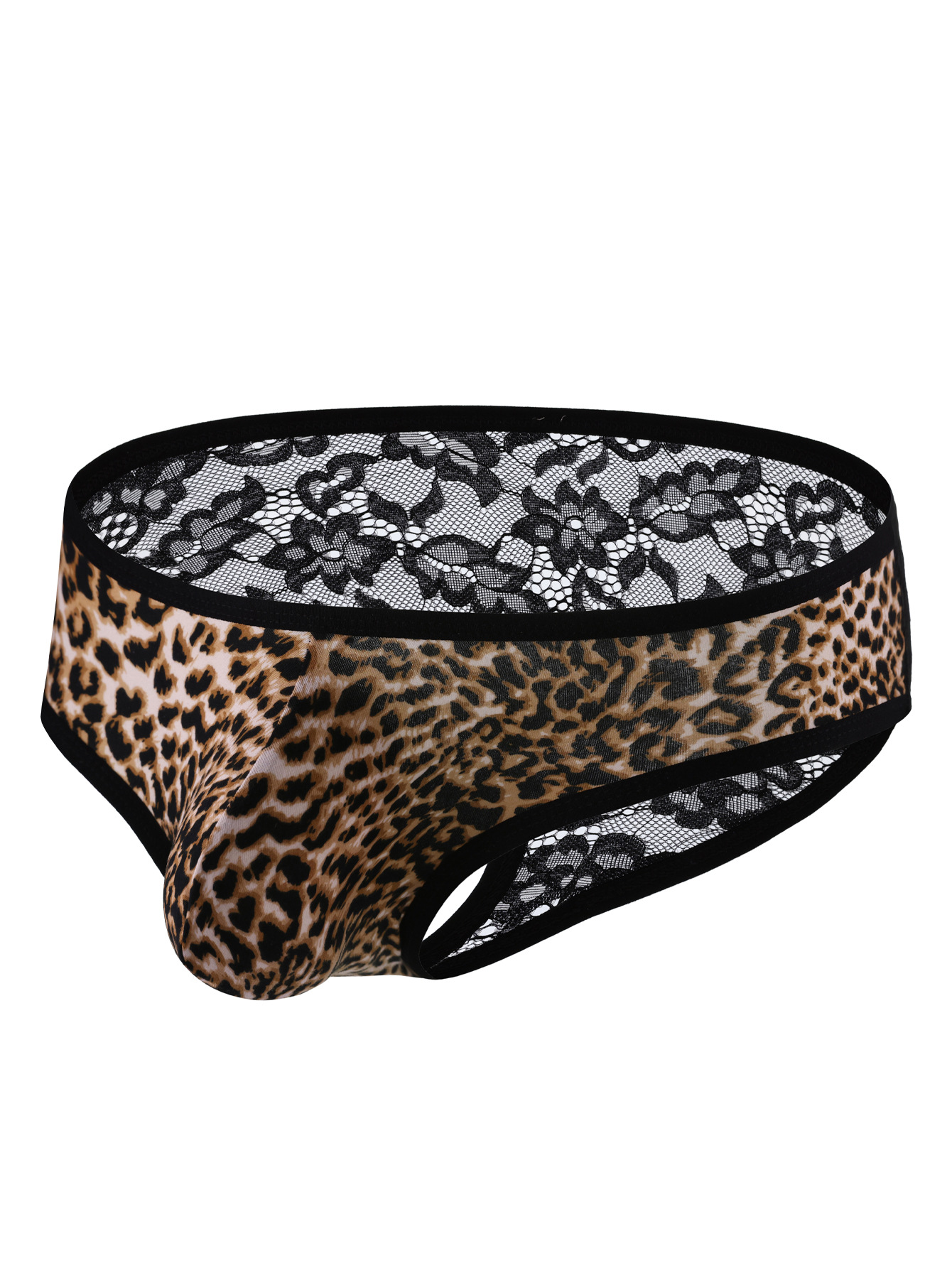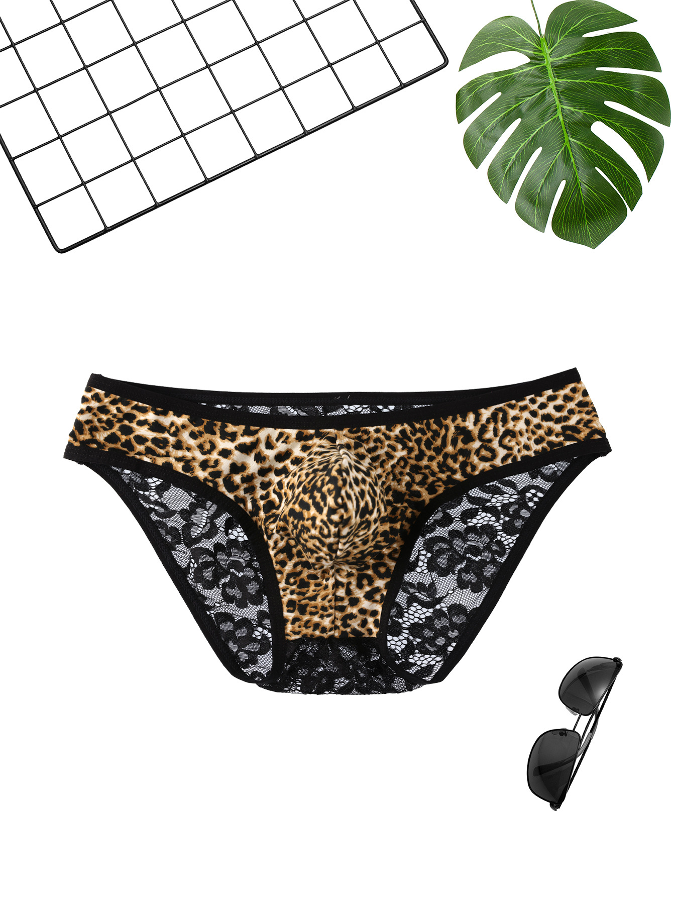 남성 속옷 섹시한 레이스 레오파드 무늬 통기성 슬림 핏 남성용 브리프