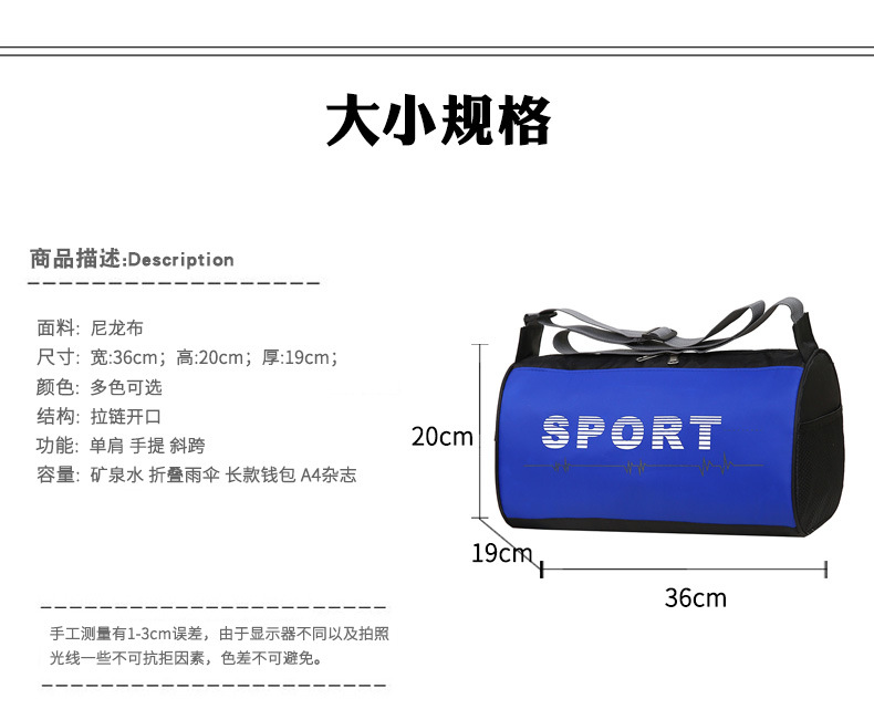 피트니스 가방 패션 스포츠 레저 어깨 크로스 바디 백 솔리드 컬러 대용량 편리한 스포츠 가방 여행 가방