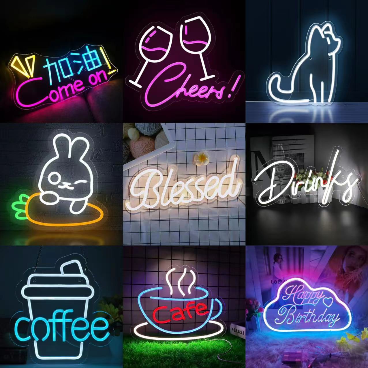 아마존 LED 네온 사인 간판 생일 축하 고양이 포커 장식 조명 커피 바 분위기 조명