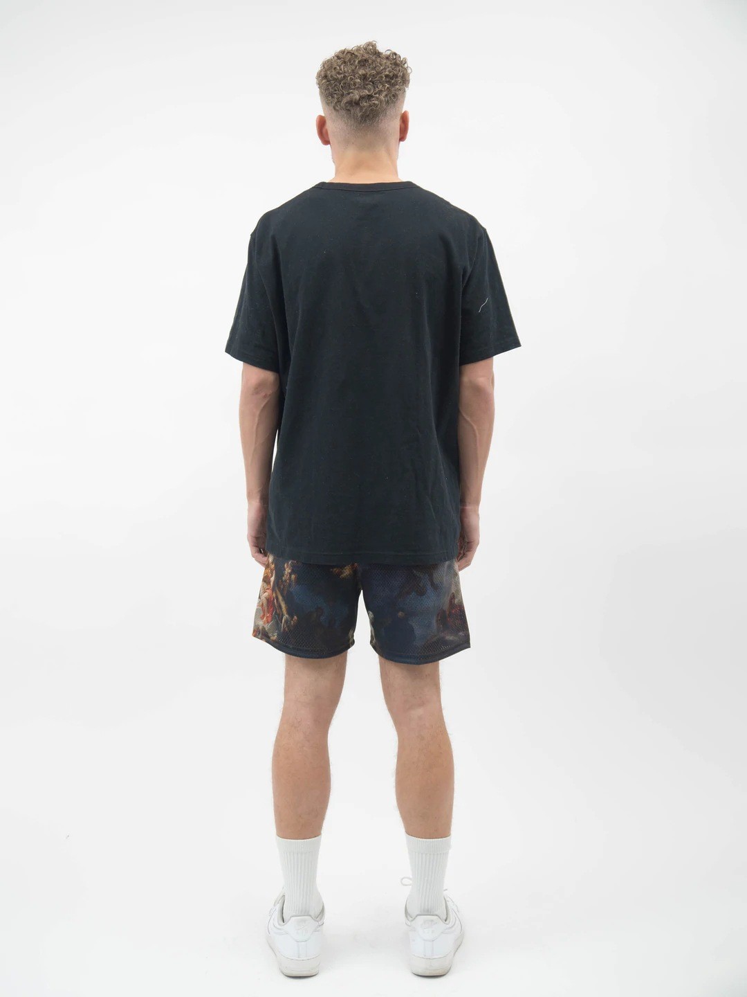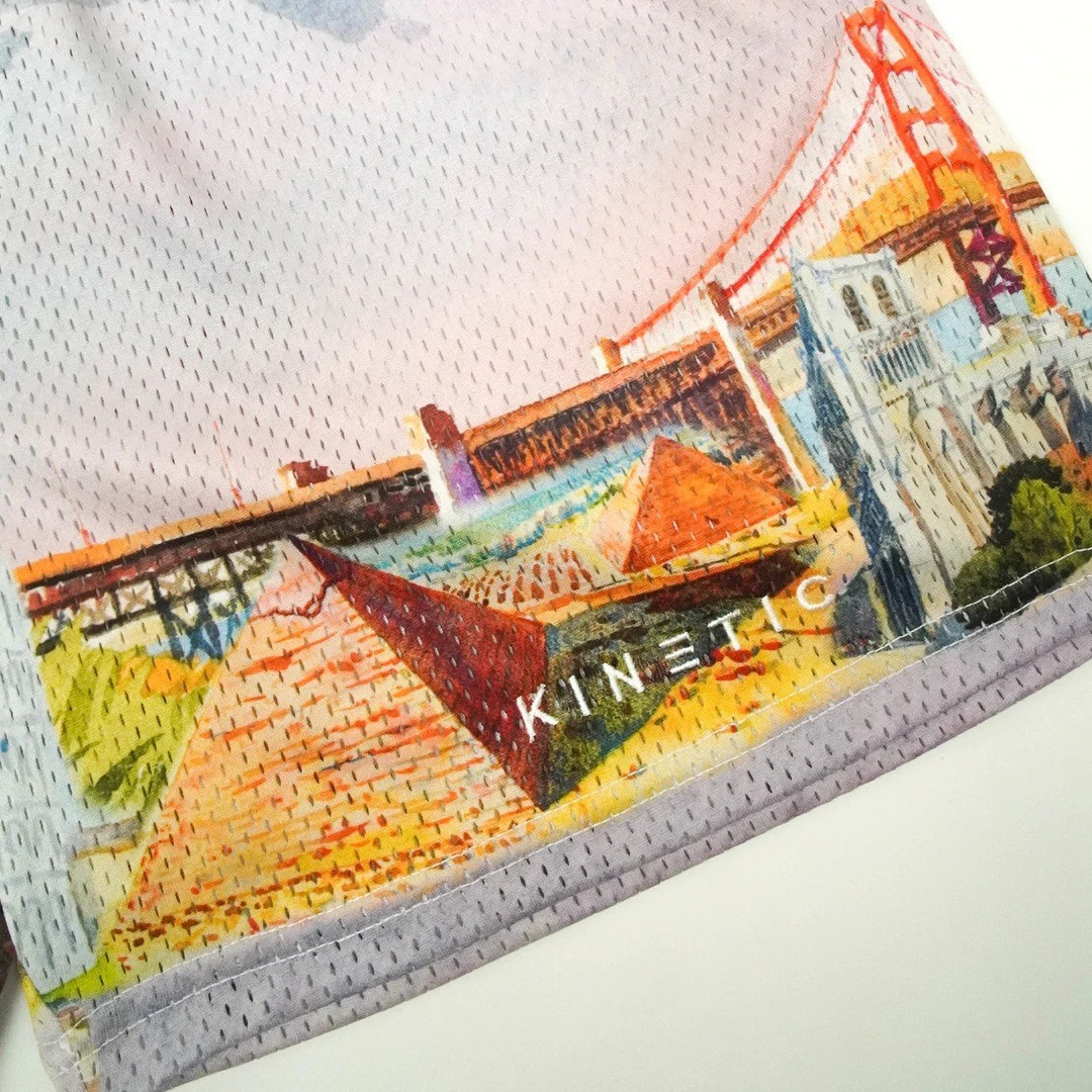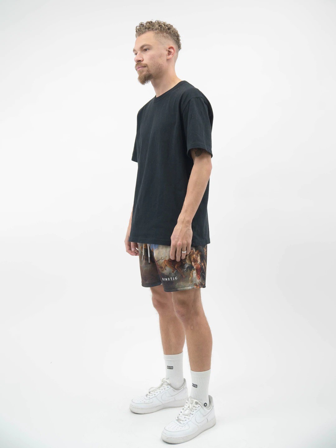 미국 스타일의 트렌디 한 브랜드 영화 캐주얼 스포츠 반바지 피트니스 메쉬 분기 바지 디지털 방식으로 인쇄 통기성 느슨한 반바지