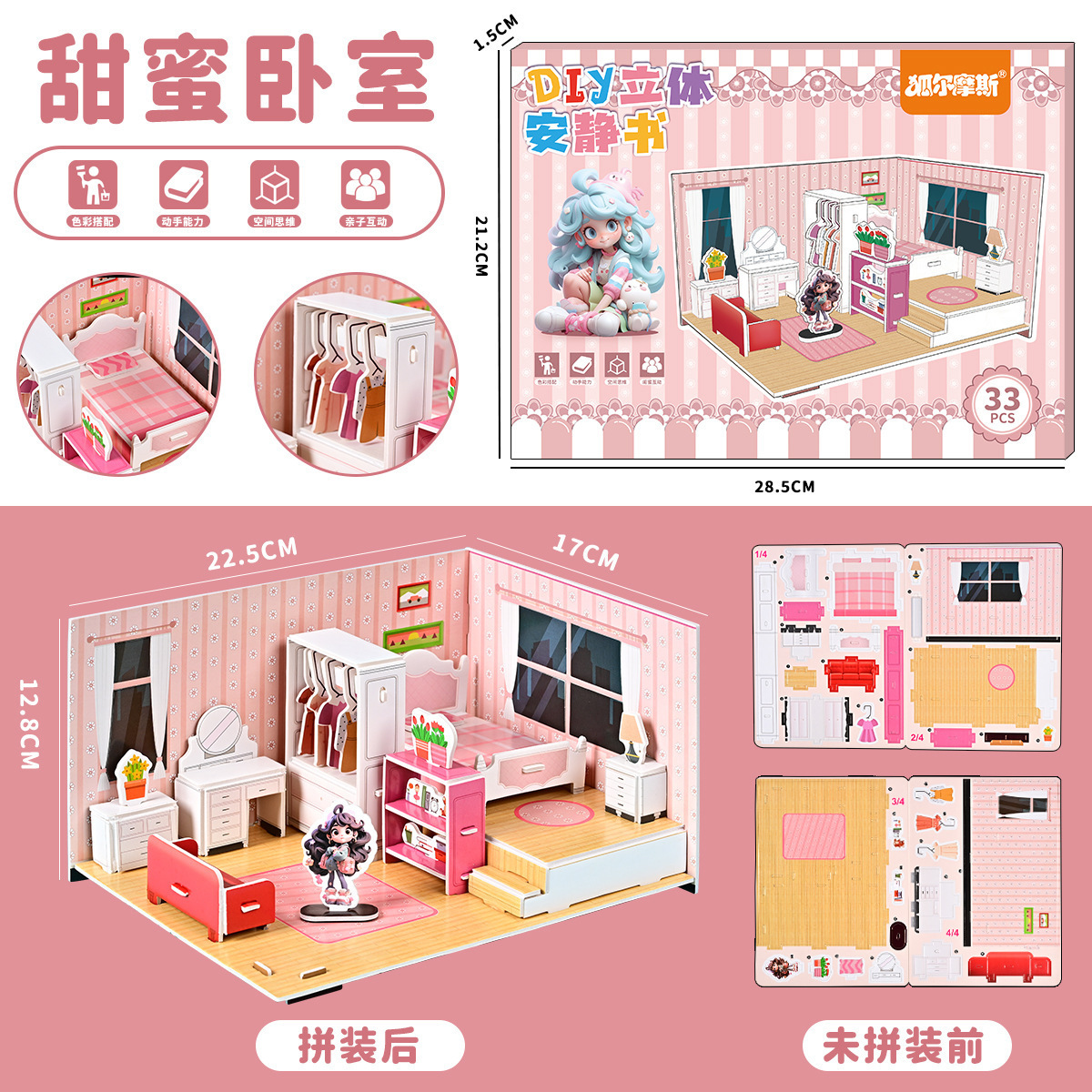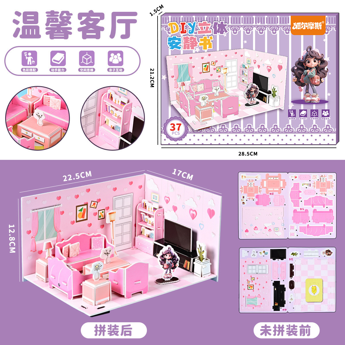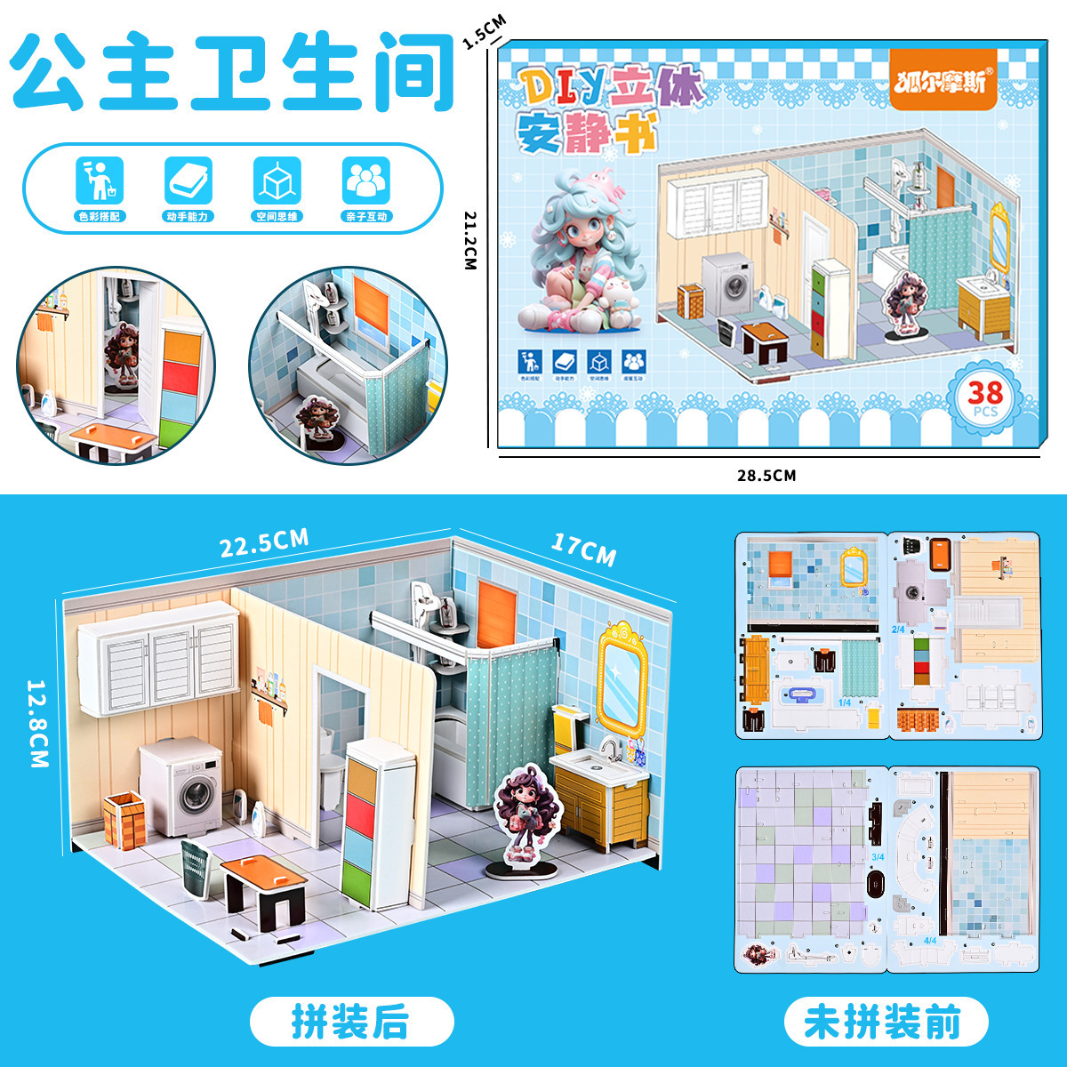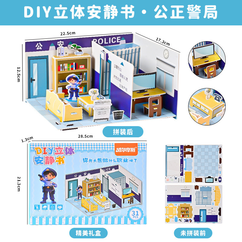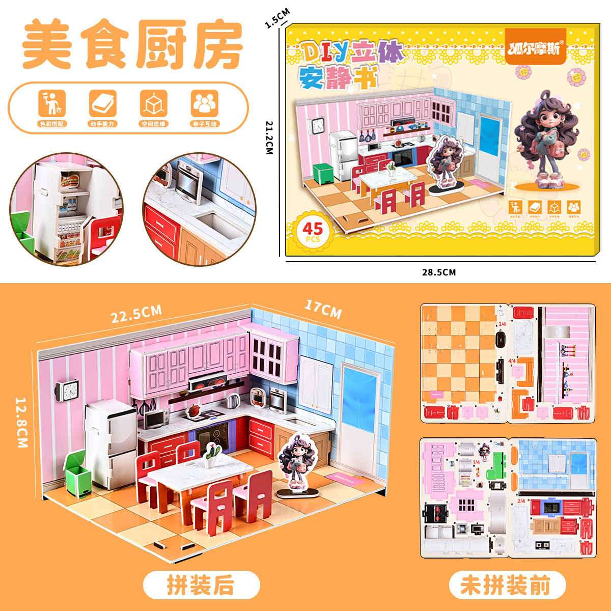 DIY 3 차원 조용한 책 어린이 창조적 인 조립 된 직소 퍼즐 장난감 컷 프리 두꺼운 장면 퍼즐 아기 장난감스토어 가기
