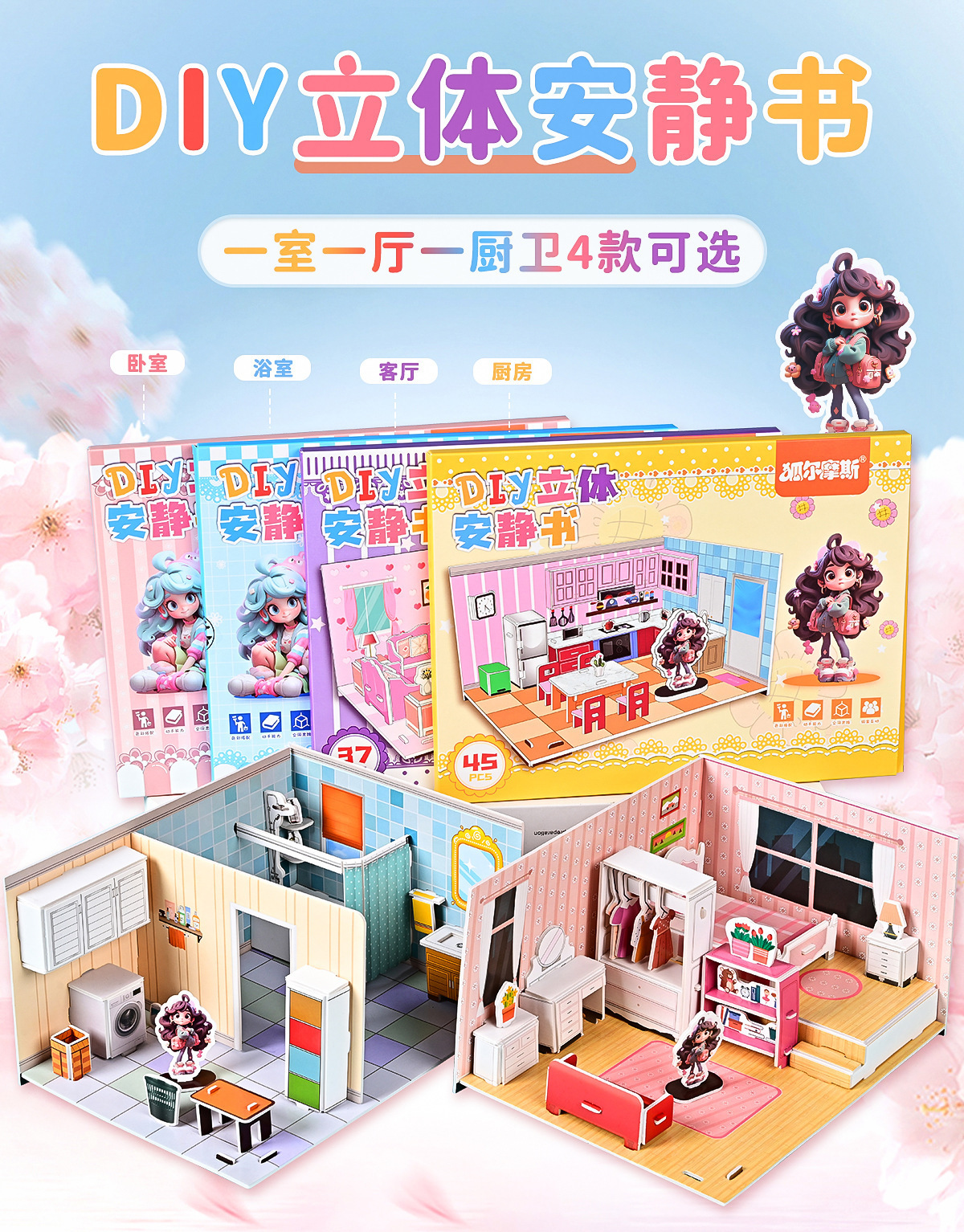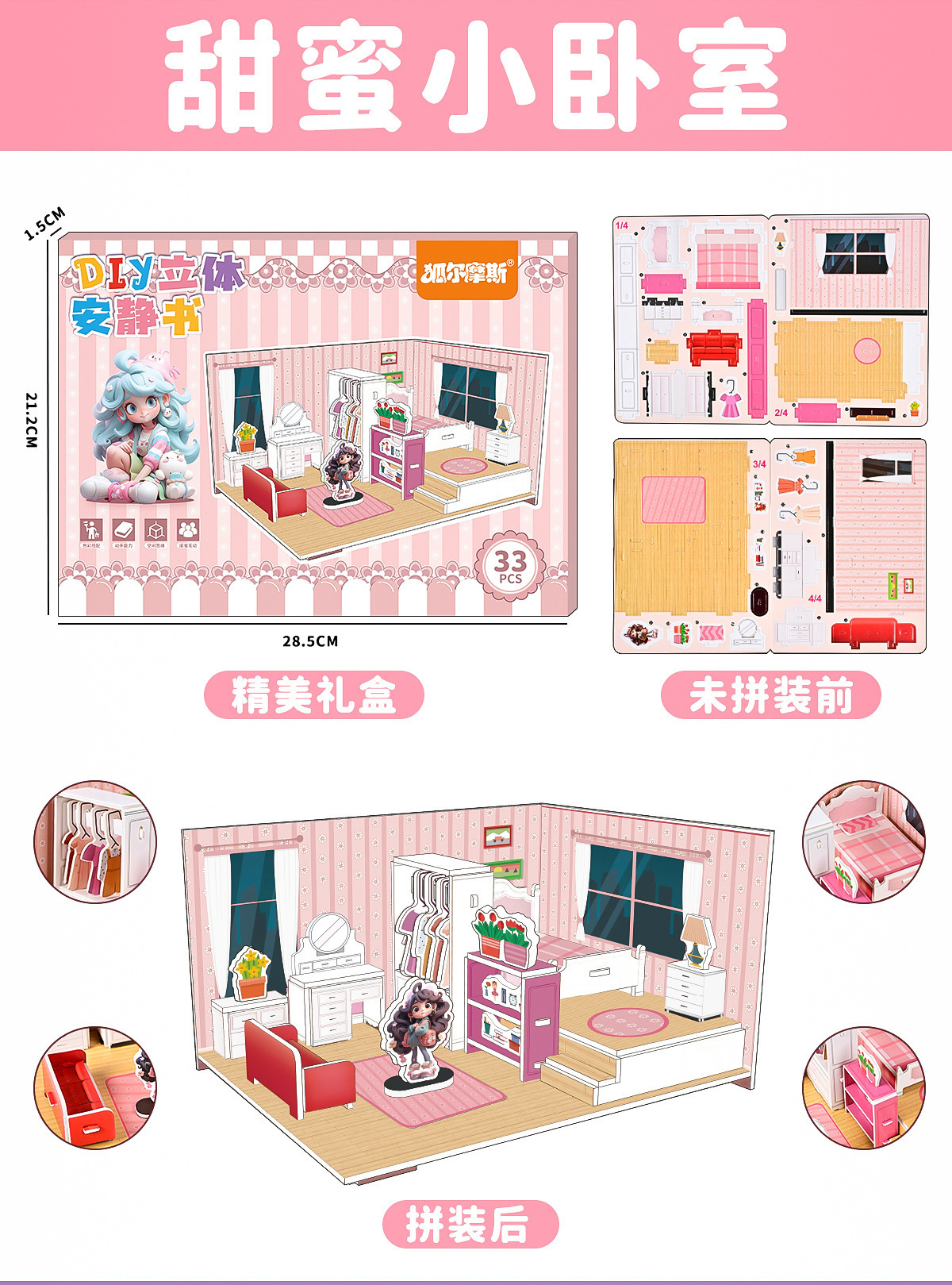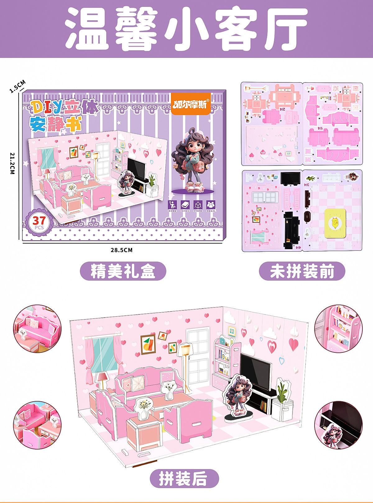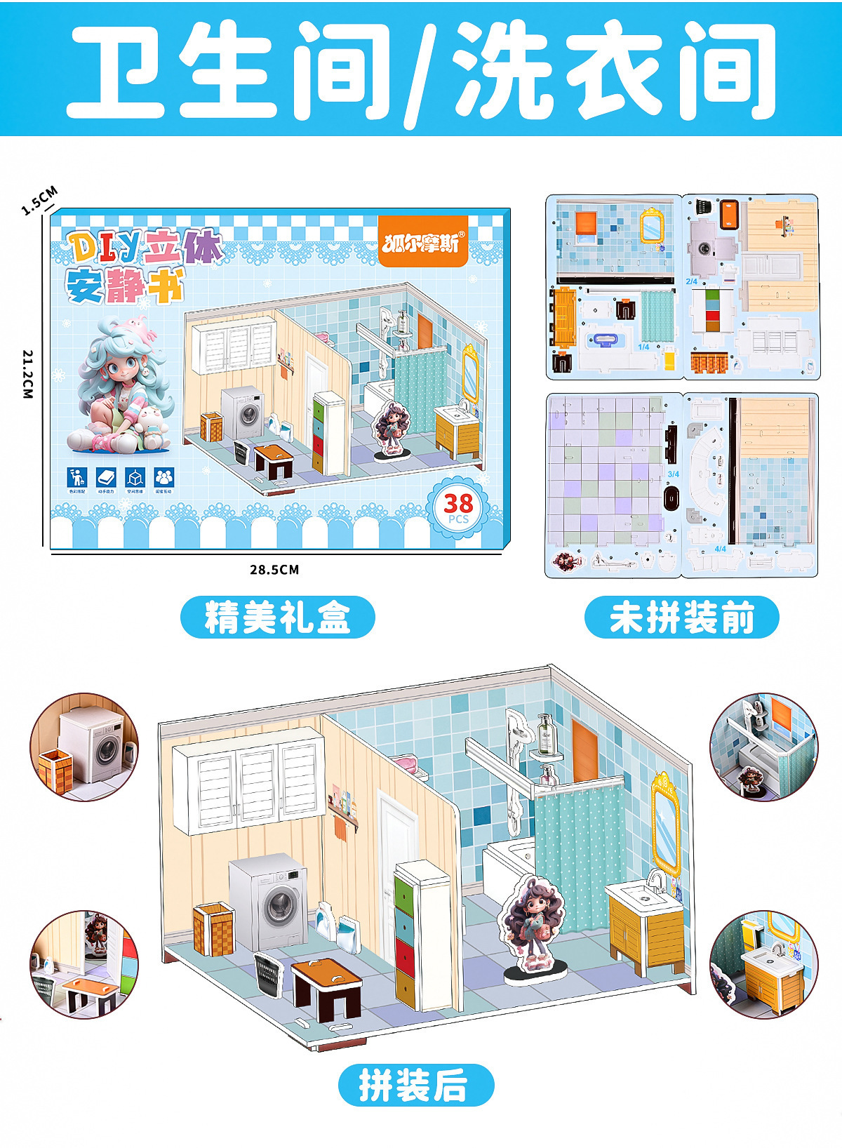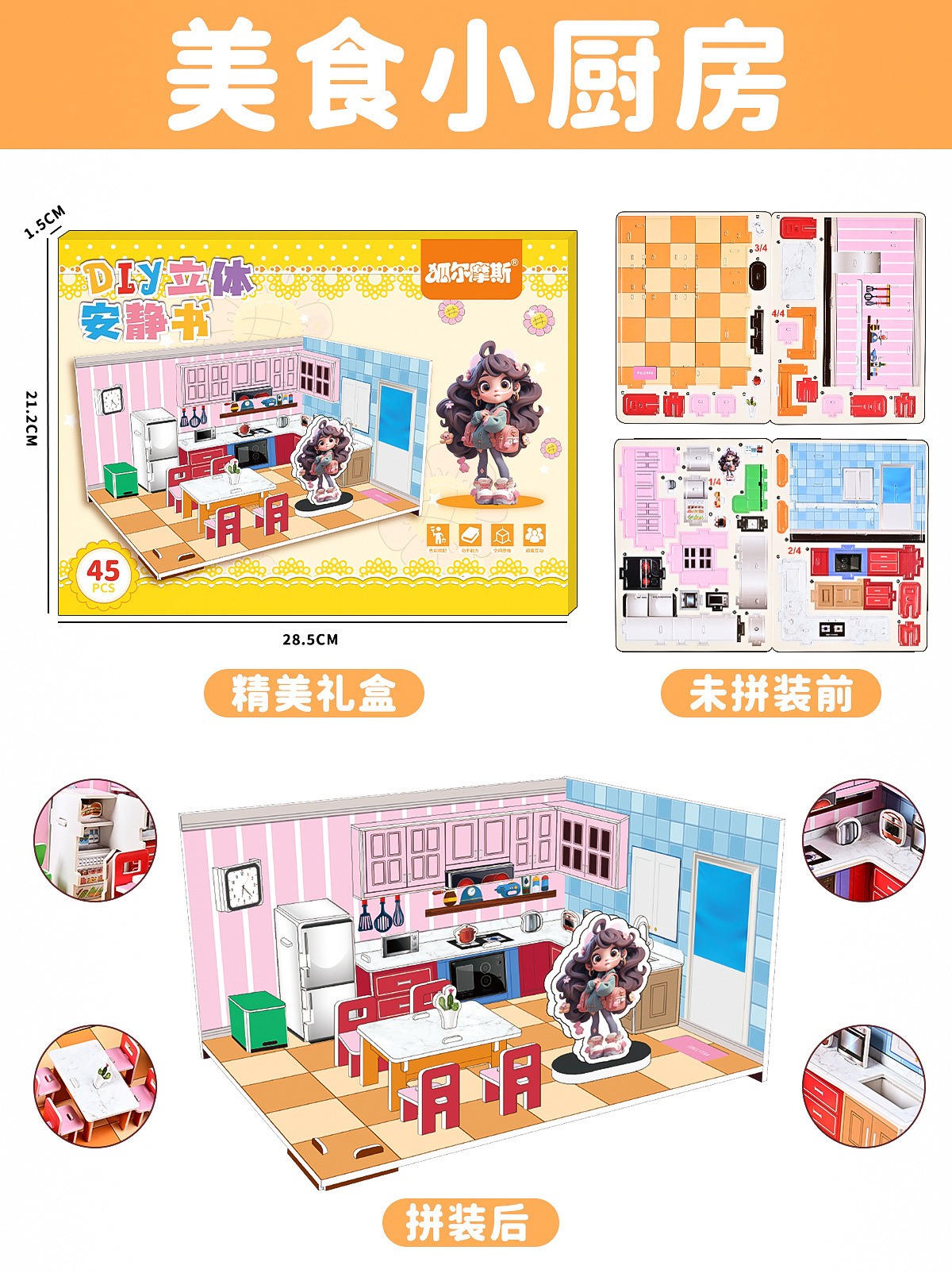 DIY 3 차원 조용한 책 어린이 창조적 인 조립 된 직소 퍼즐 장난감 컷 프리 두꺼운 장면 퍼즐 아기 장난감스토어 가기