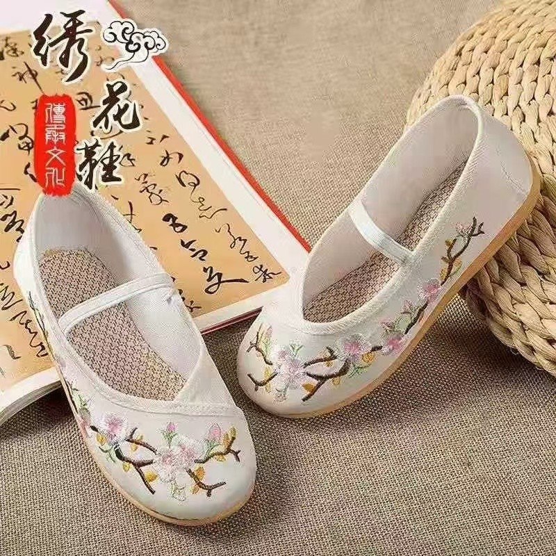 어린이 한푸 신발 고대 스타일 소녀 자수 신발 중국 스타일 소년의 고대 원피스 공연 신발 오래 된 베이징 천 신발 소프트 솔스토어 가기