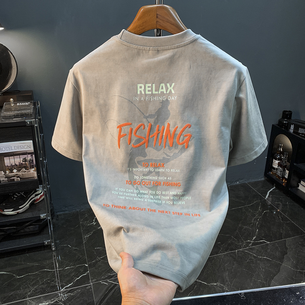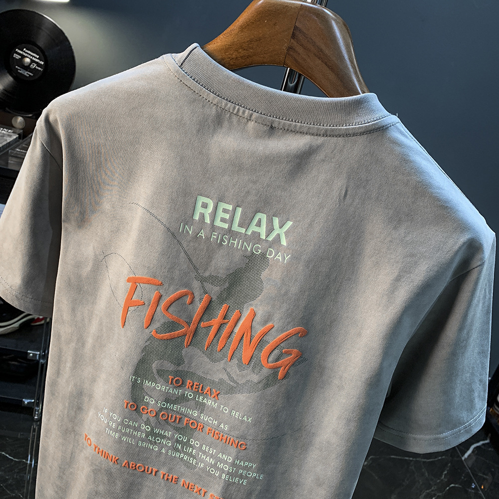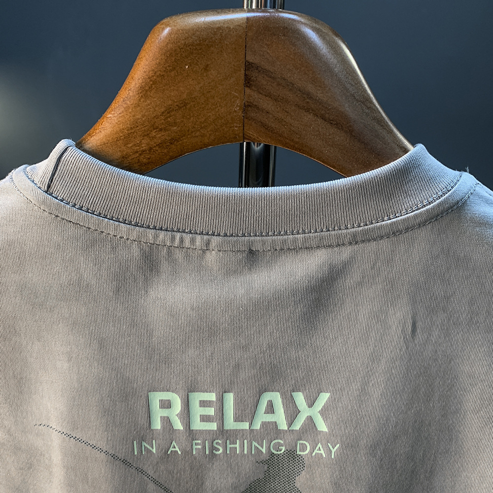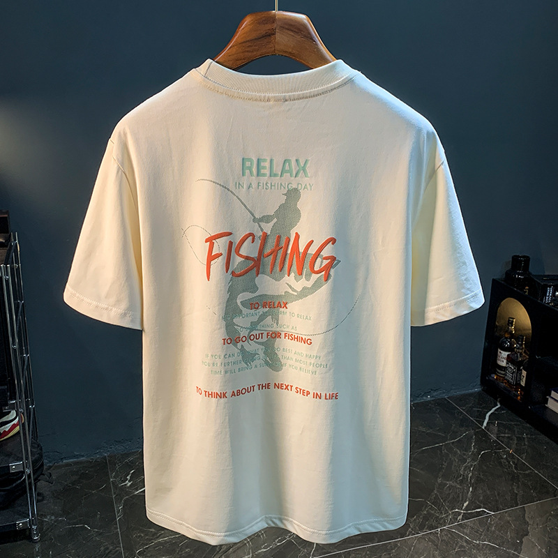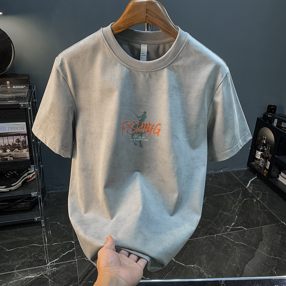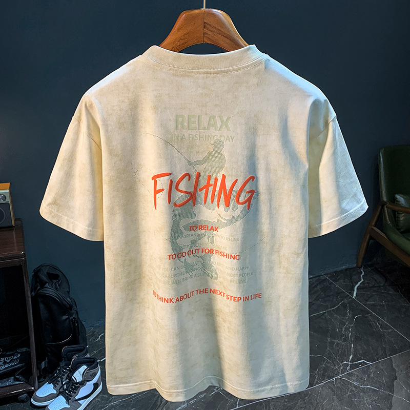 아메리칸 스타일 느슨한 반팔 티셔츠 남성 헤비 트렌디 프린트 여름 탑 티셔츠 캐주얼 어깨 어깨 반소매 남성복스토어 가기