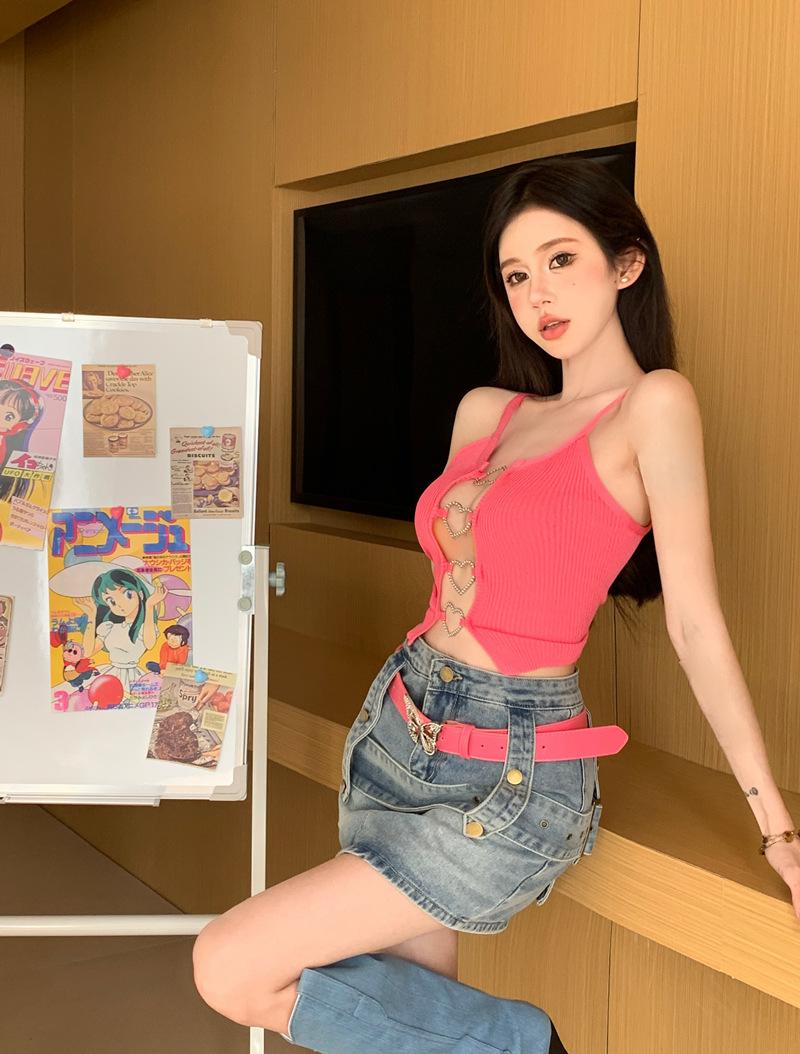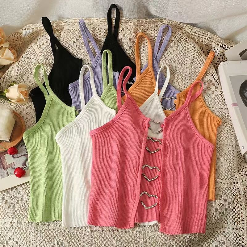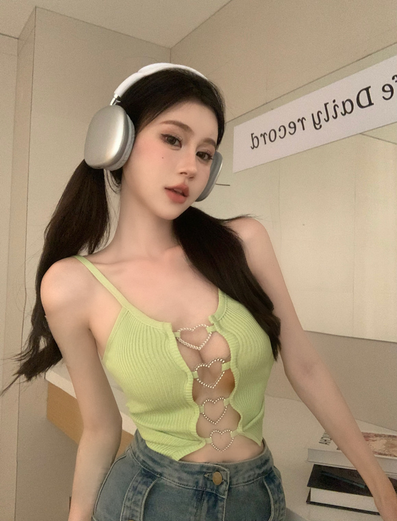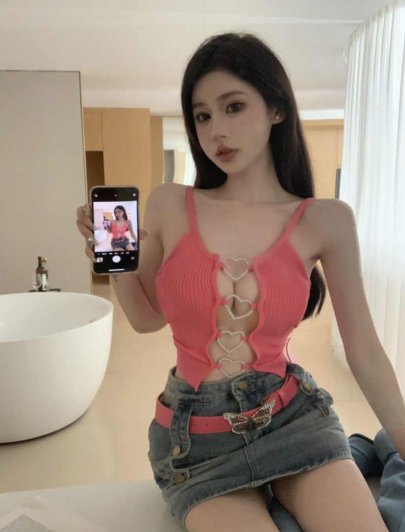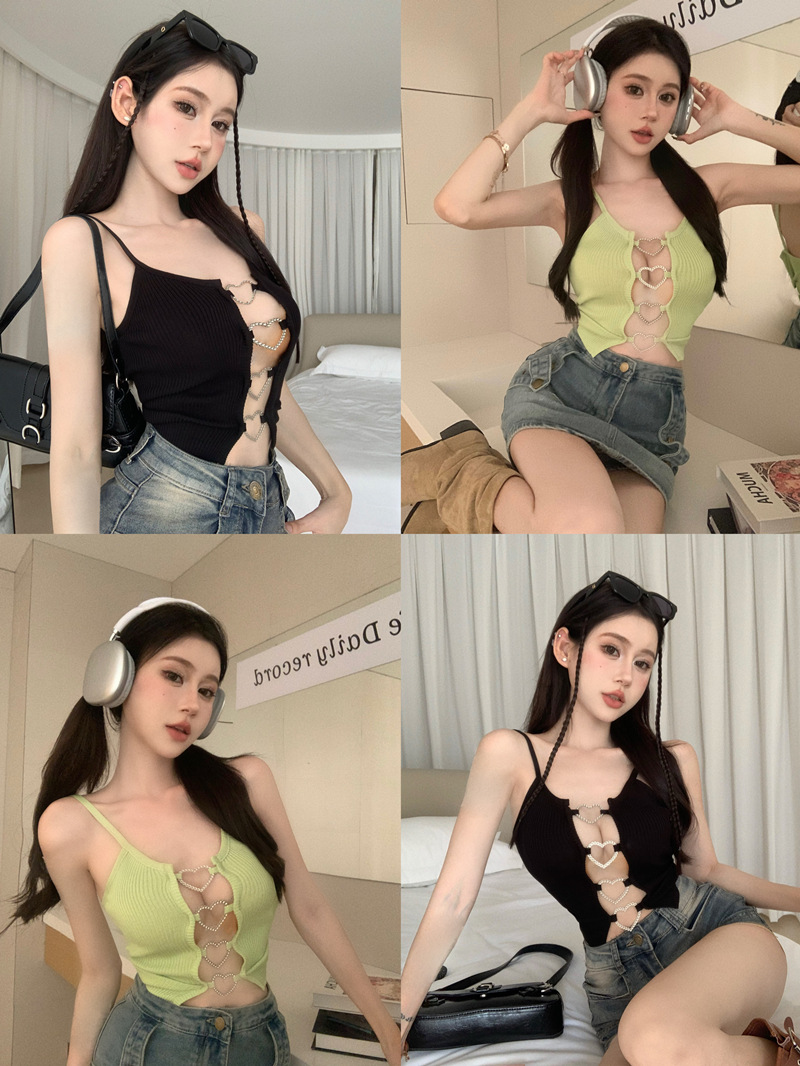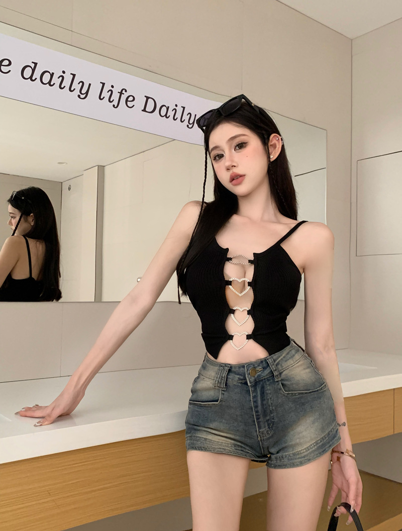 블랙 핫 걸스 할로우 카미솔 조끼 여름 민소매 새 스타일 우아한 순수한 욕망 섹시한 배꼽 슬림 핏 러브 탑